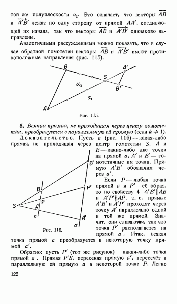 Доказательство. Пусть а (рис. 116) — какая-либо прямая, не проходящая через центр гомотетии
