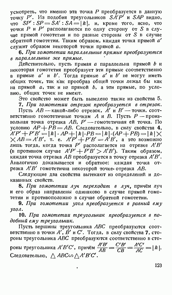 5. Всякая прямая, не проходящая через центр гомотетии, преобразуется в параллельную ей прямую (если