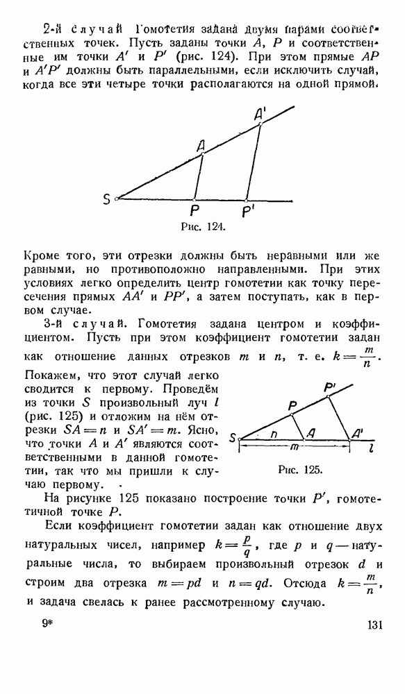располагаются по одну сторону от 5 в случае прямой гомотетии и по разные стороны от 5 в случае обратной гомотетии. Таким образом, каждая точка прямой а служит образом некоторой точки прямой а.