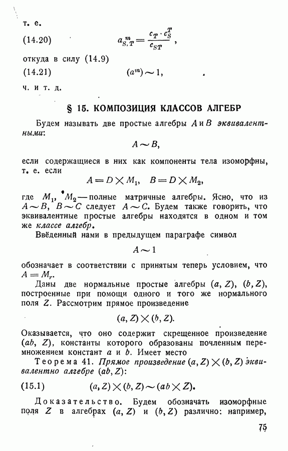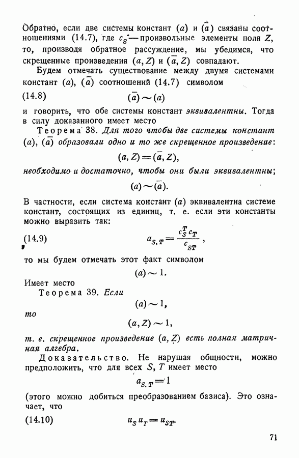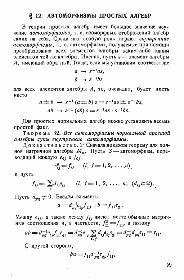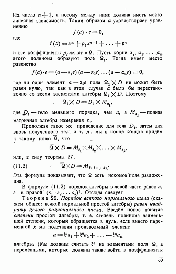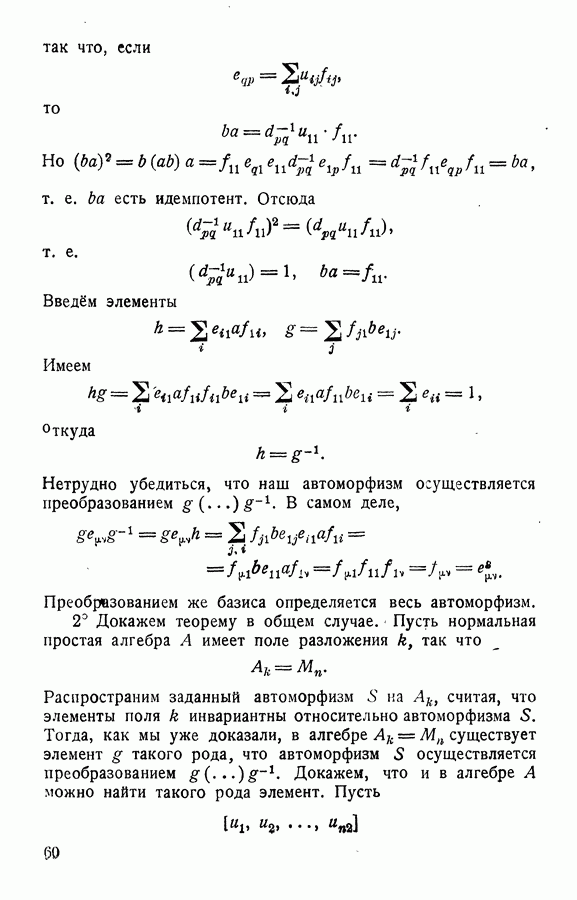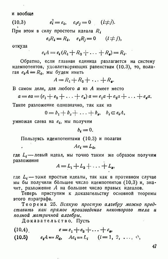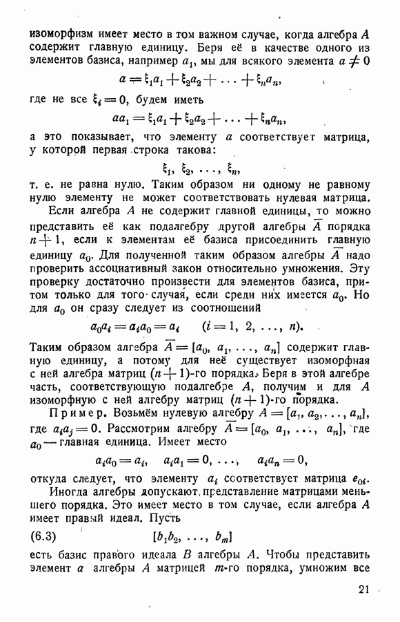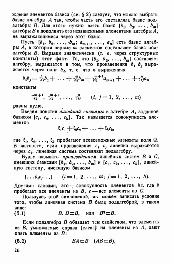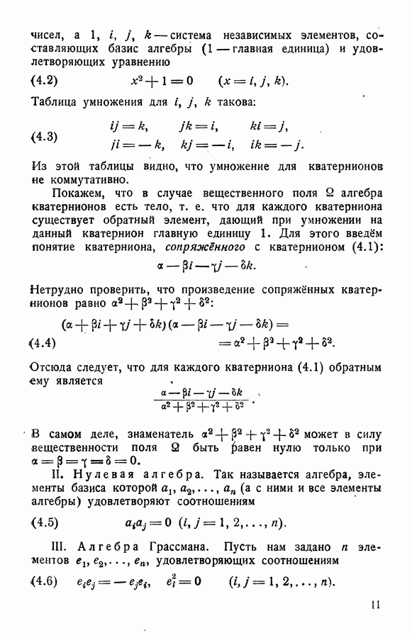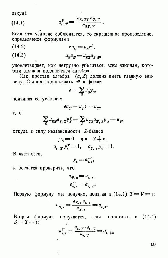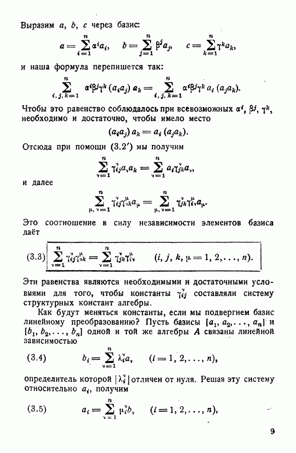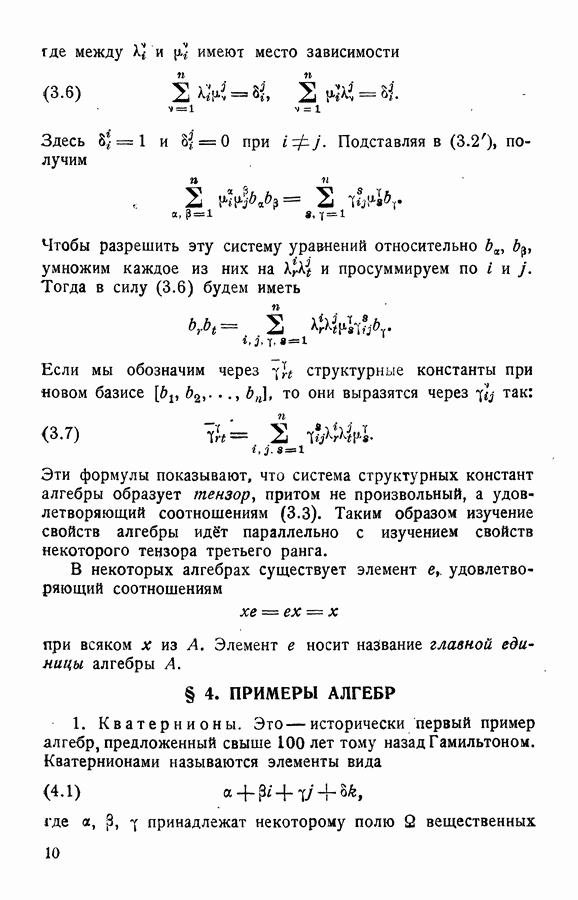 Таким образом Если алгебра не содержит отличного от нуля радикала, то она называется полупростой алгеброй. Приведённые рассзждения позволяют сформулировать следующую теорему: Теорема 9. Чтобы алгебра была полупростой, необходимо и достаточно, чтобы её дискриминант был отличен от нуля. Форма уравнений (8.3) показывает справедливость следующей теоремы: Теорема 10. В полупростой алгебре можно всегда найти элемент а, для которого величины