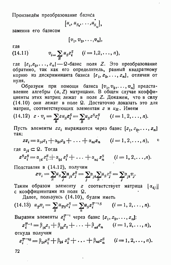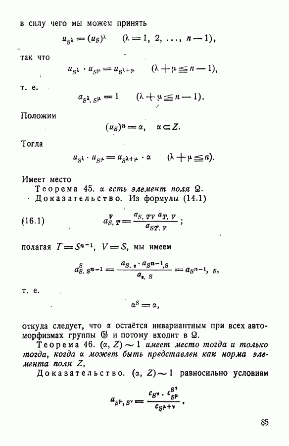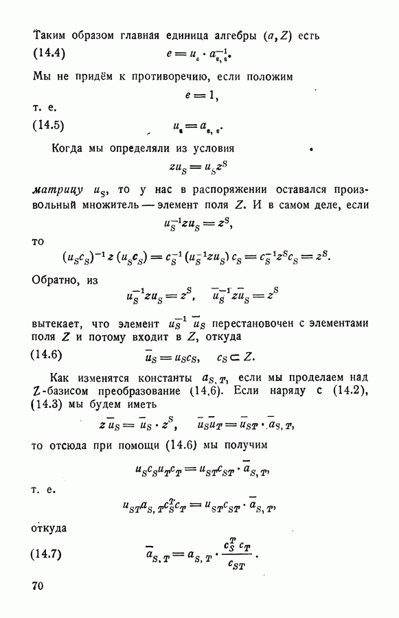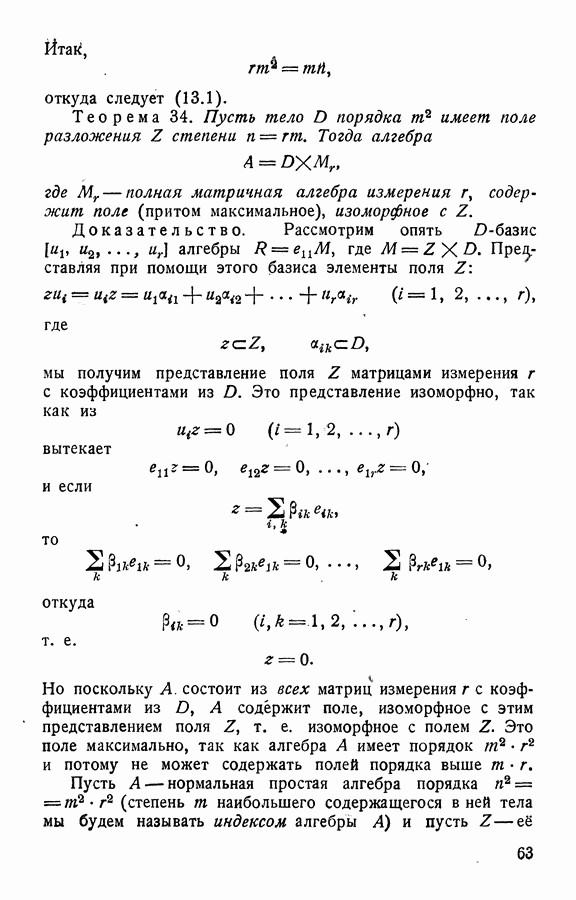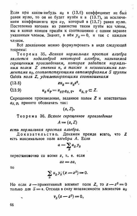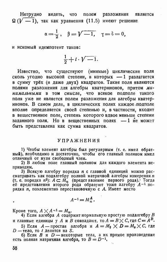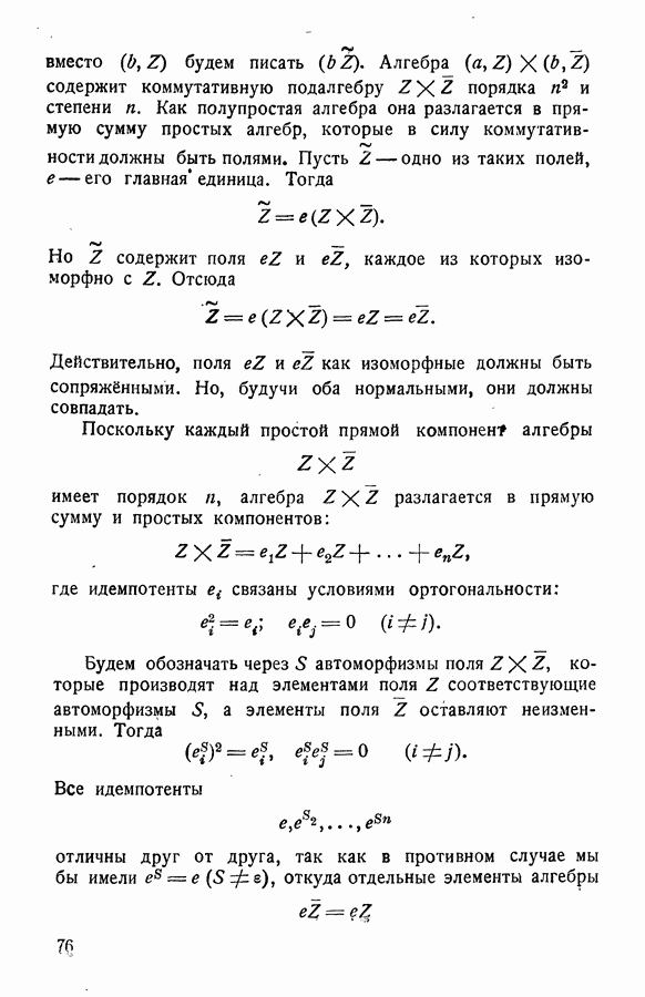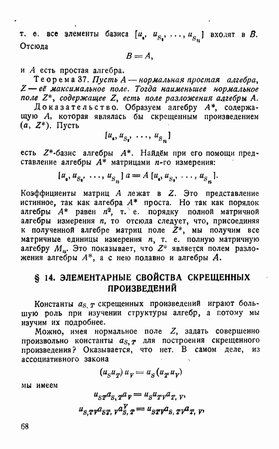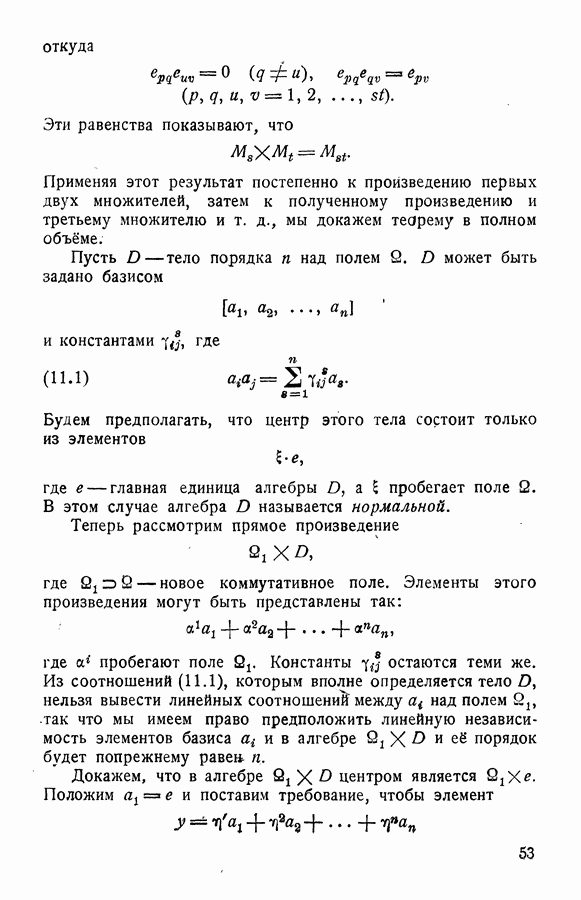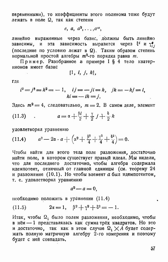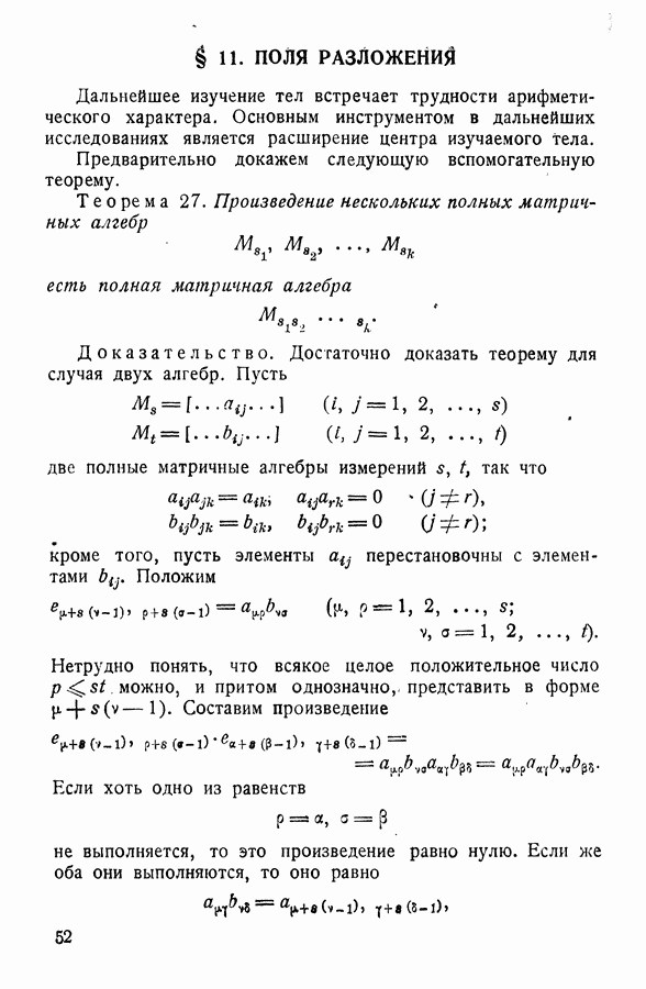 Таким образом Если алгебра не содержит отличного от нуля радикала, то она называется полупростой алгеброй. Приведённые рассзждения позволяют сформулировать следующую теорему: Теорема 9. Чтобы алгебра была полупростой, необходимо и достаточно, чтобы её дискриминант был отличен от нуля. Форма уравнений (8.3) показывает справедливость следующей теоремы: Теорема 10. В полупростой алгебре можно всегда найти элемент а, для которого величины