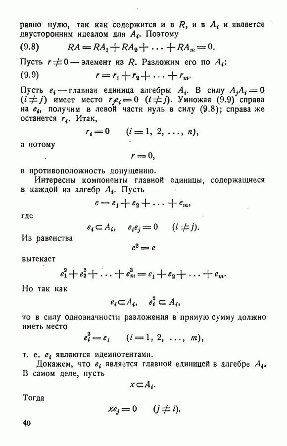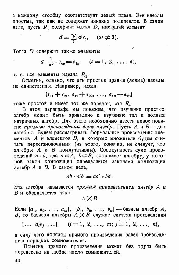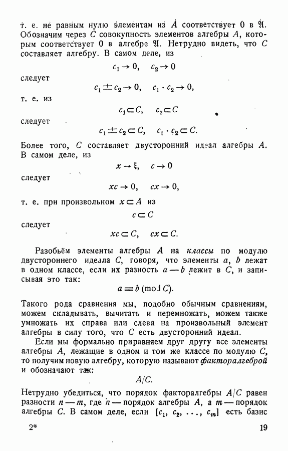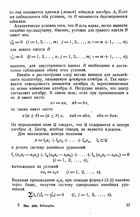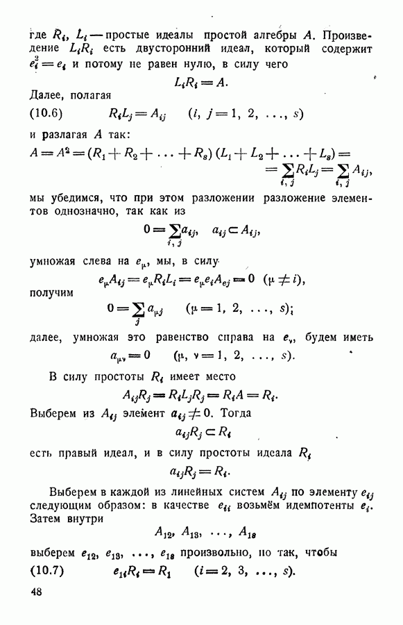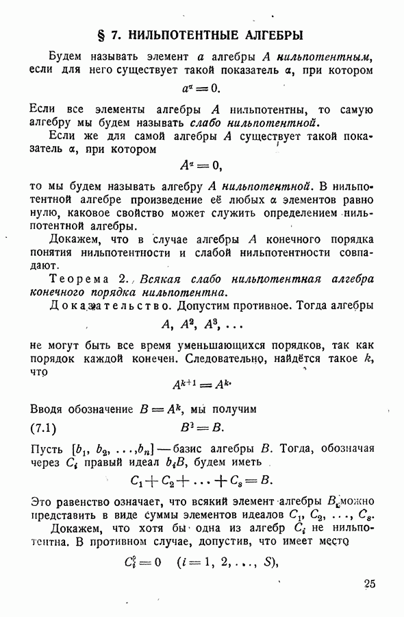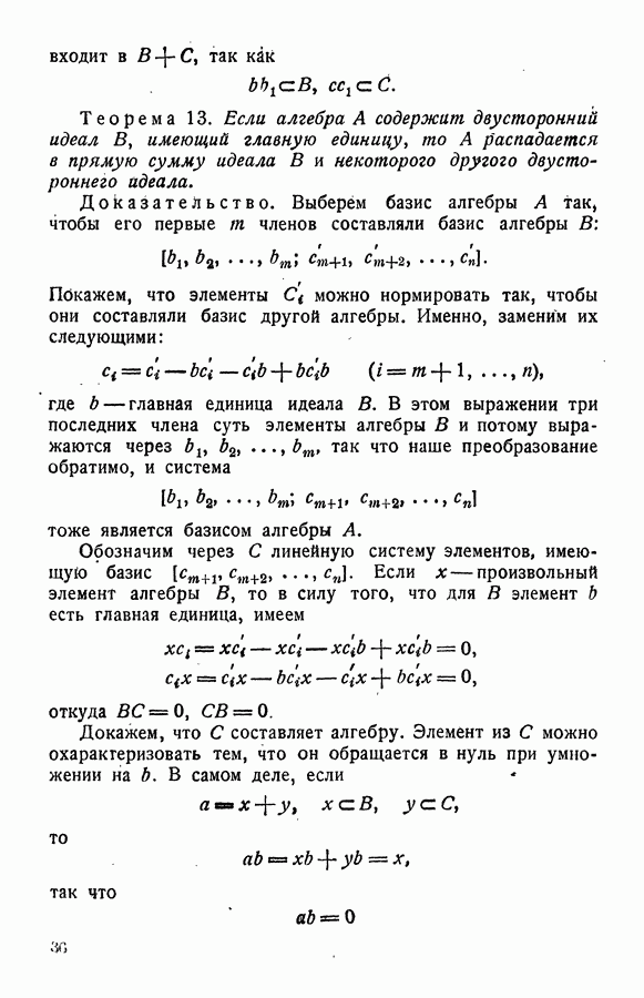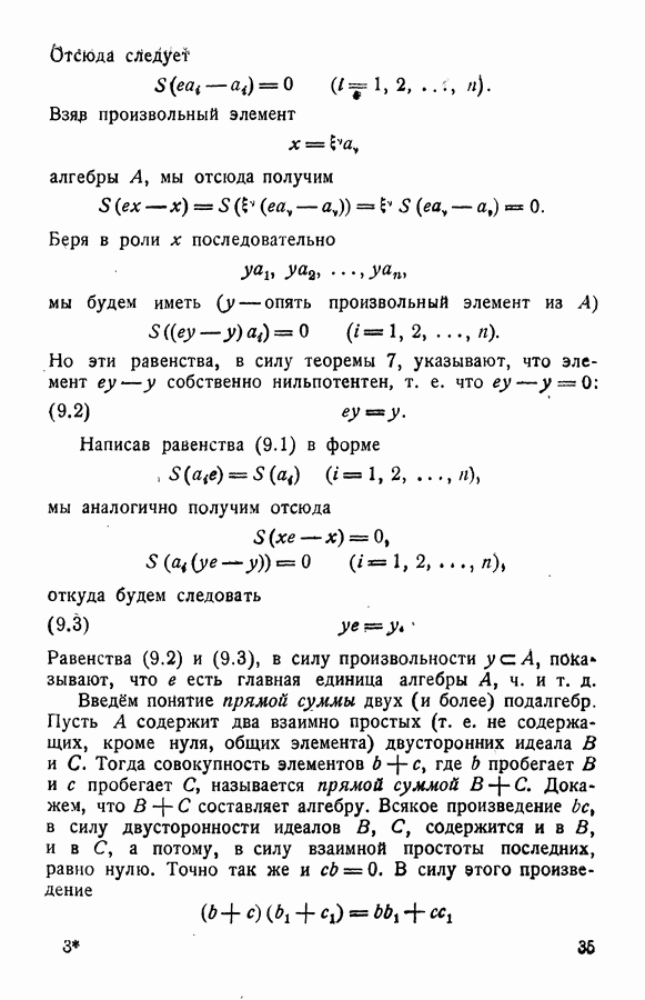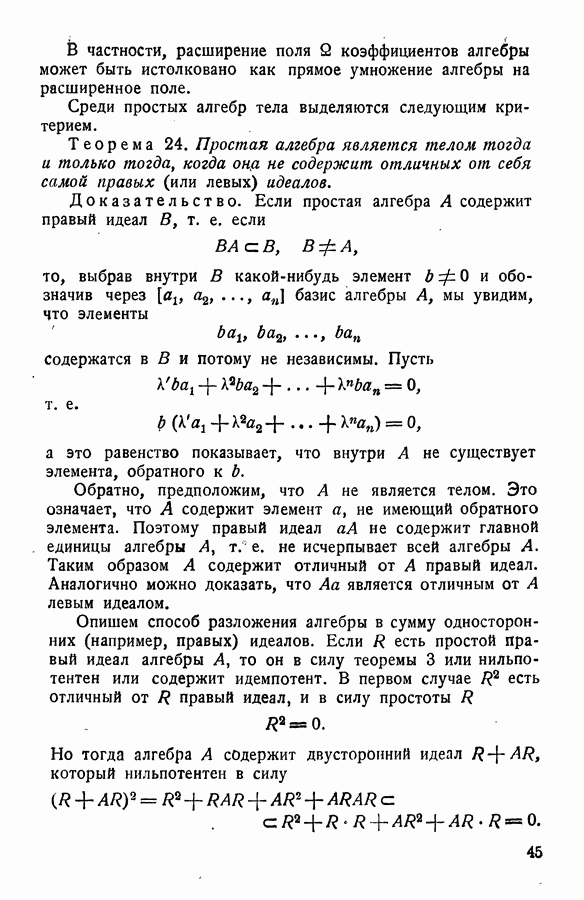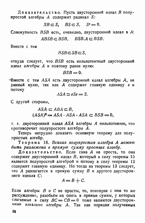 Отсюда следует, что совокупность собственно нильпотентных элементов алгебры А составляет её двусторонний идеал, Этот идеал носит название радикала алгебры А. Будем обозначать его буквой Чтобы найти для данной алгебры А радикал, подчиним её элемент