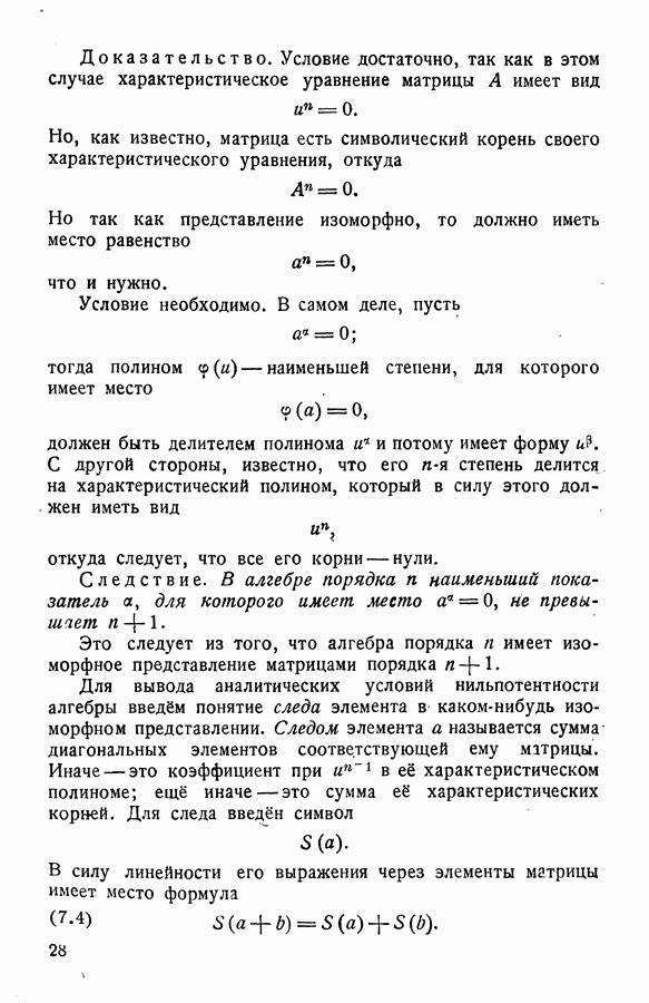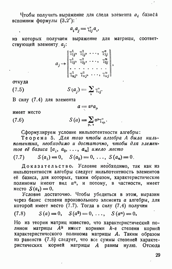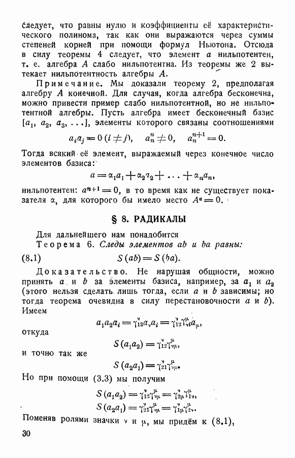 § 8. РАДИКАЛЫДля дальнейшего нам понадобится Теорема 6. Следы элементов