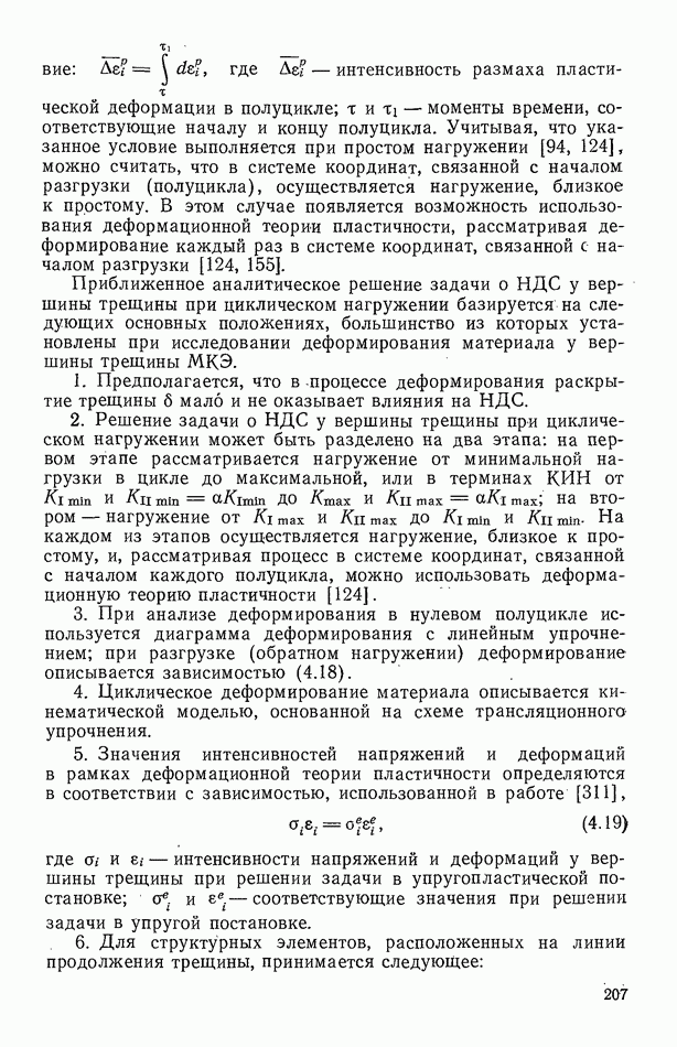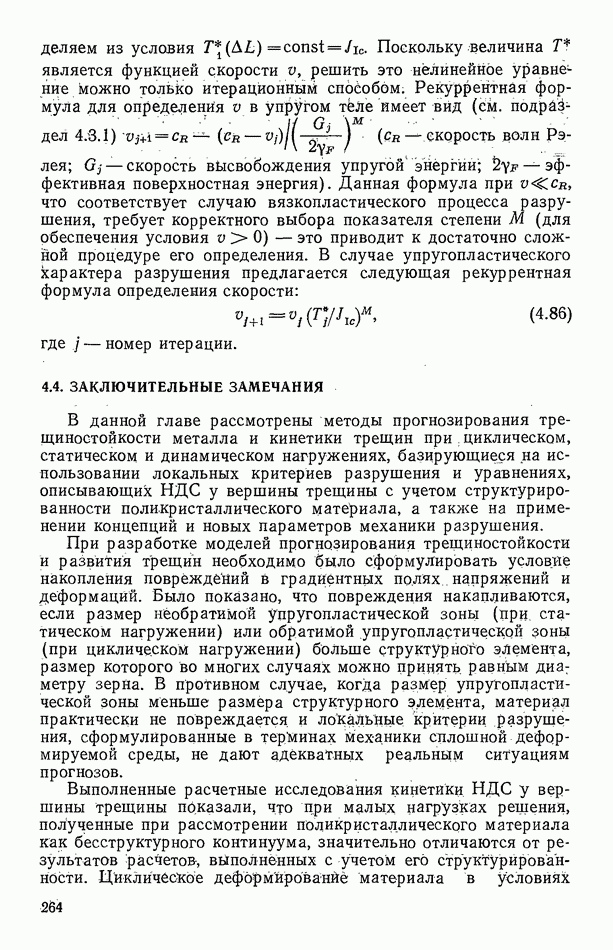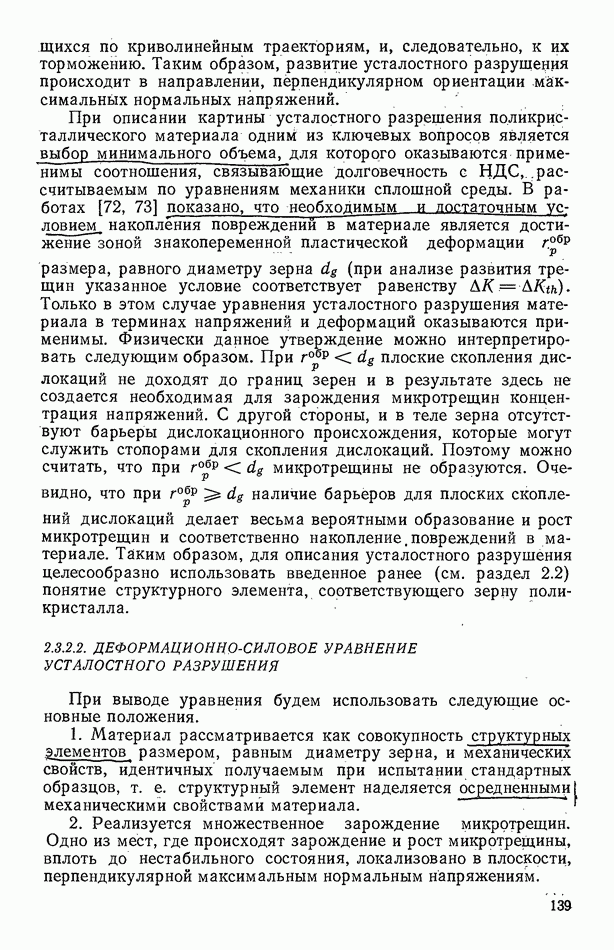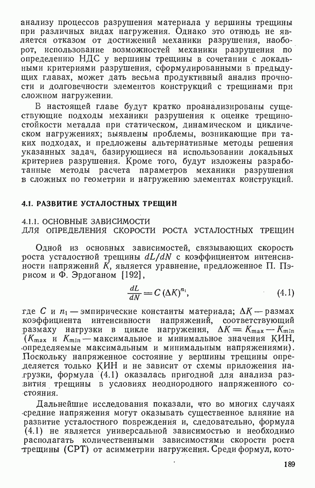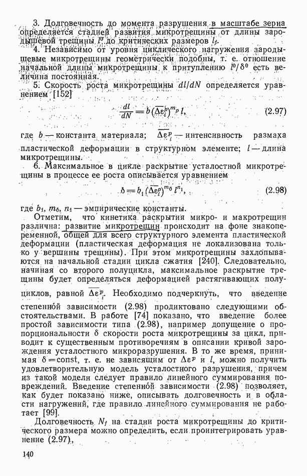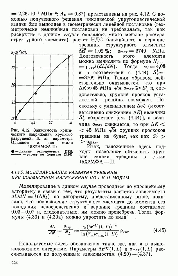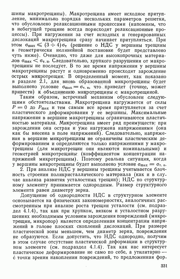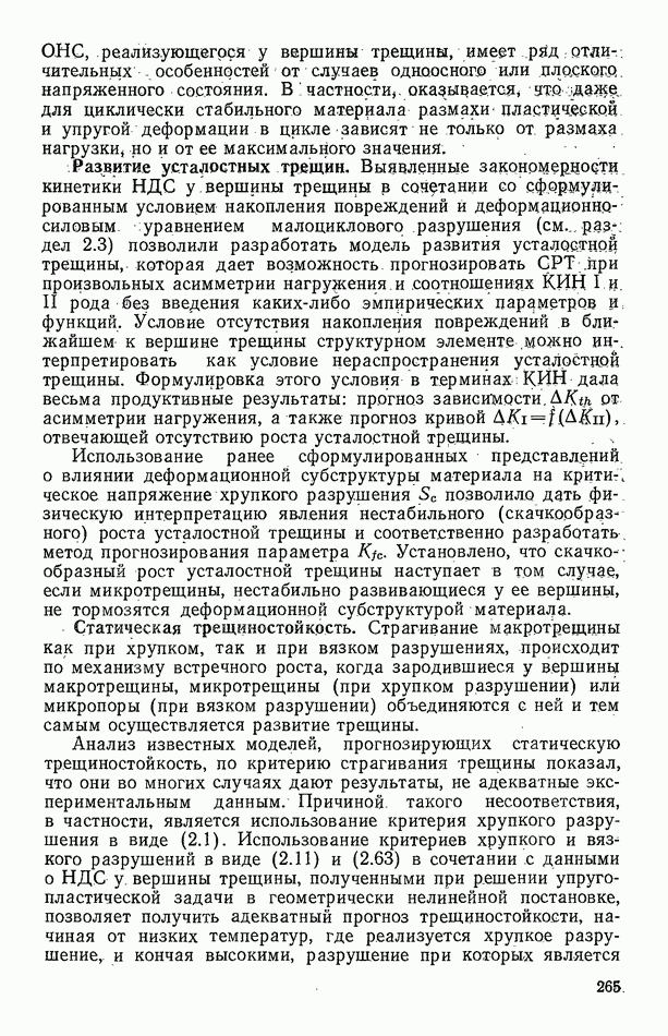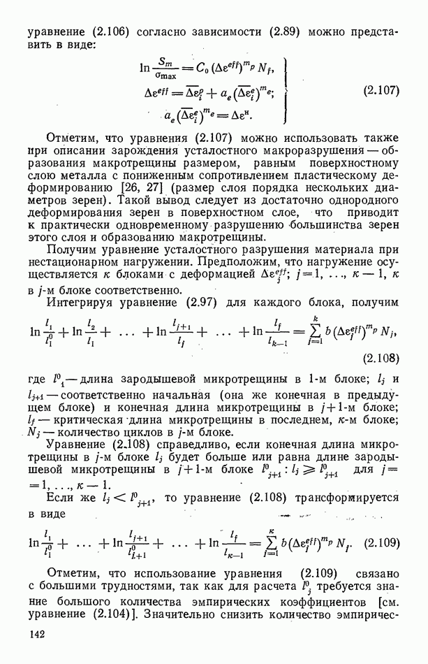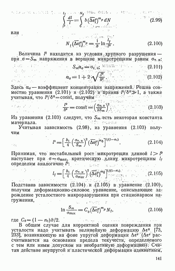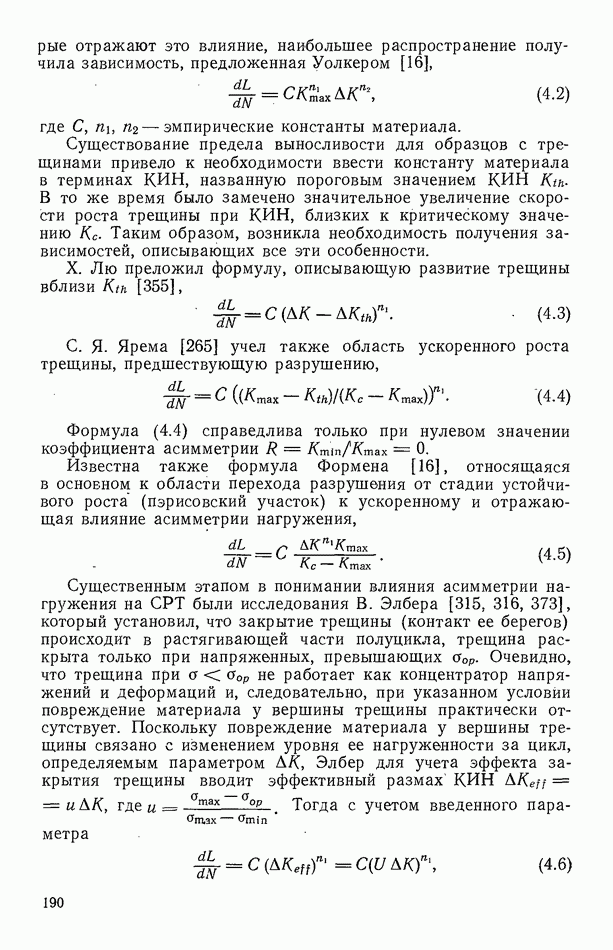 На основании полученного деформационно-силового уравнения усталостного разрушения (2.111) в гл. 4 выполнено моделирование кинетики - усталостных макротрещин в перлитных сталях, в частности, рассмотрено влияние асимметрии нагружения на пороговое значение коэффициента интенсивности, напряжений