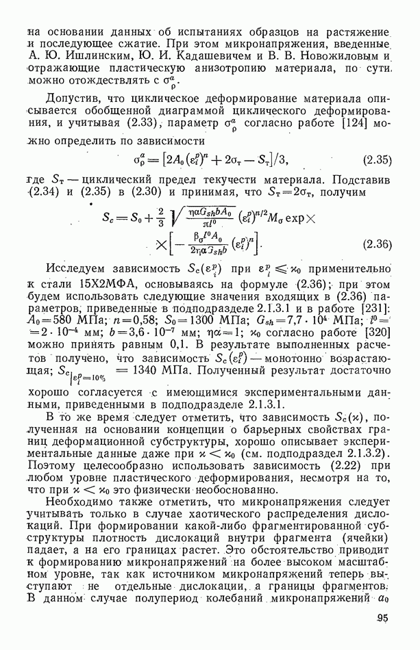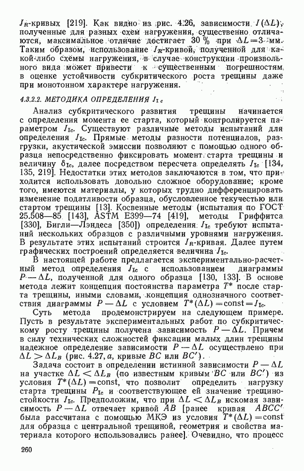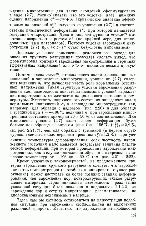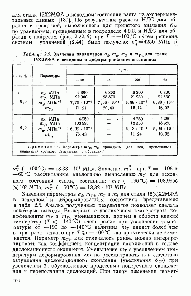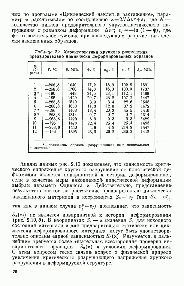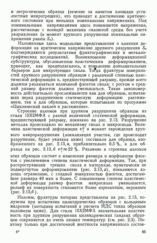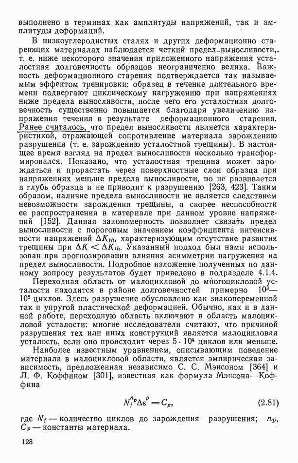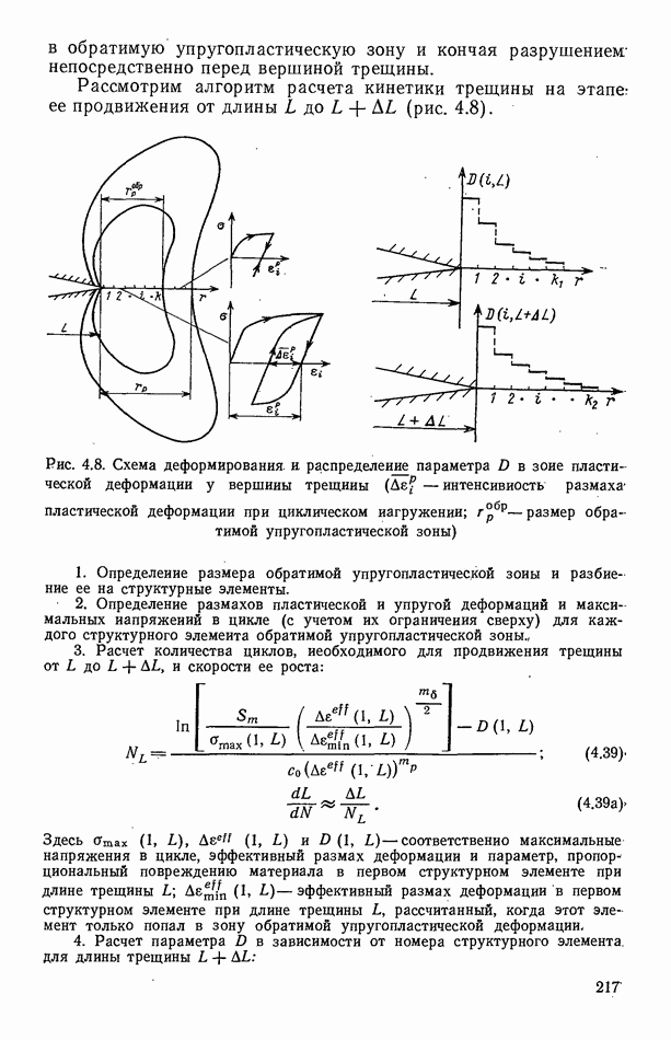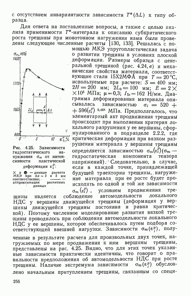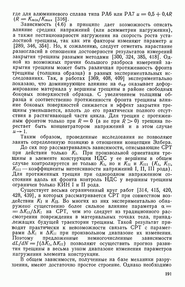 На основании полученного деформационно-силового уравнения усталостного разрушения (2.111) в гл. 4 выполнено моделирование кинетики - усталостных макротрещин в перлитных сталях, в частности, рассмотрено влияние асимметрии нагружения на пороговое значение коэффициента интенсивности, напряжений