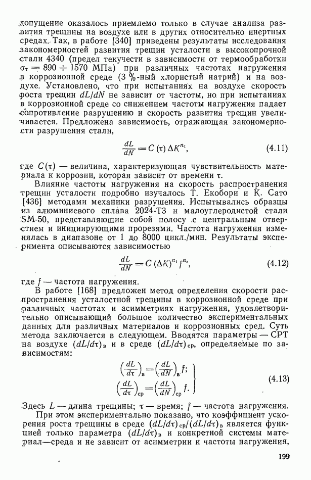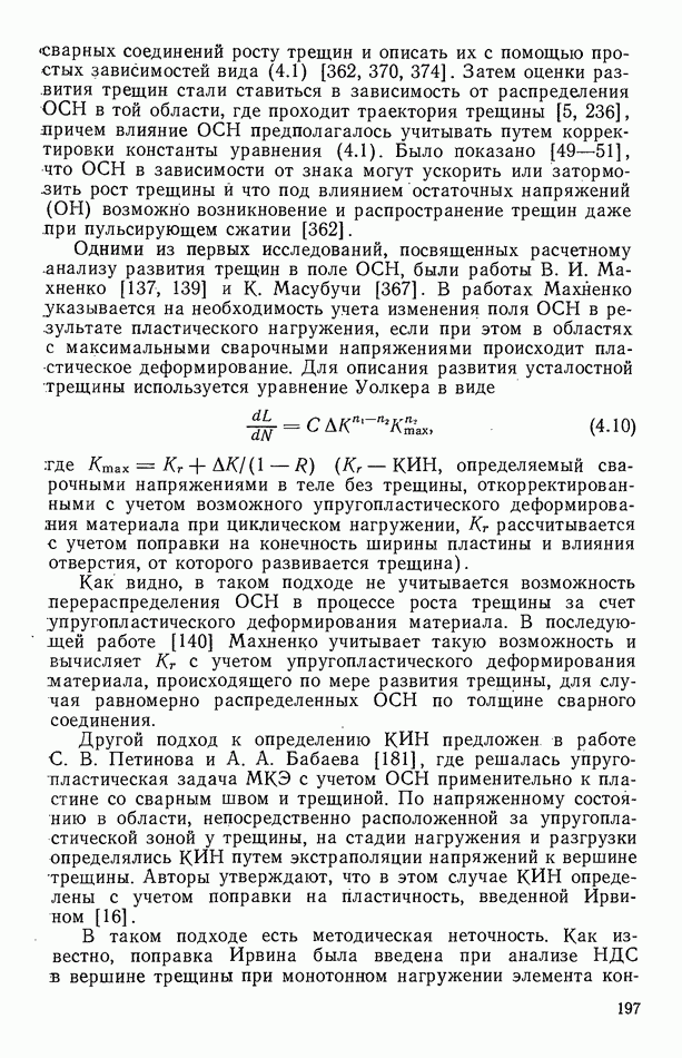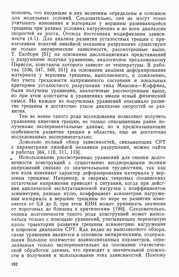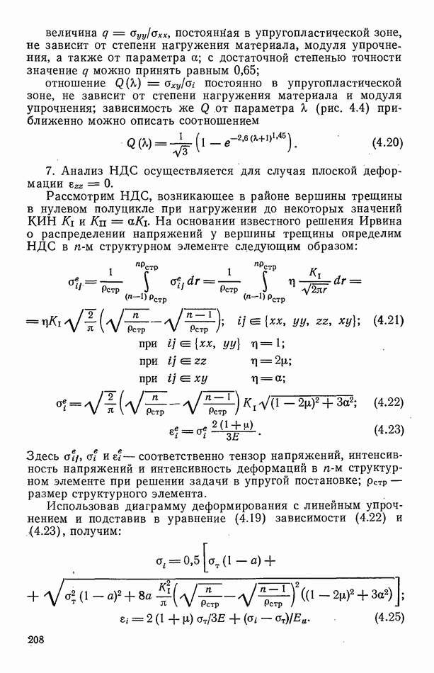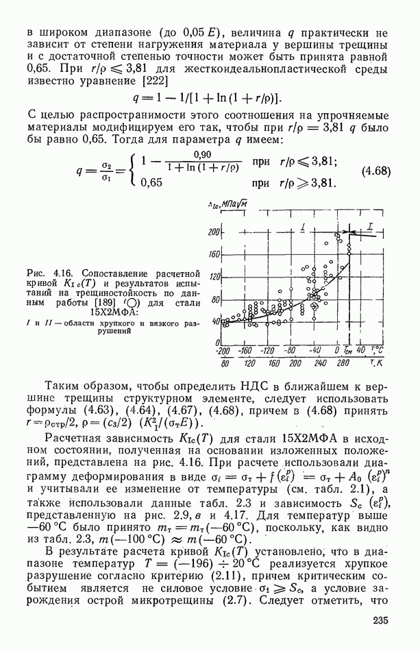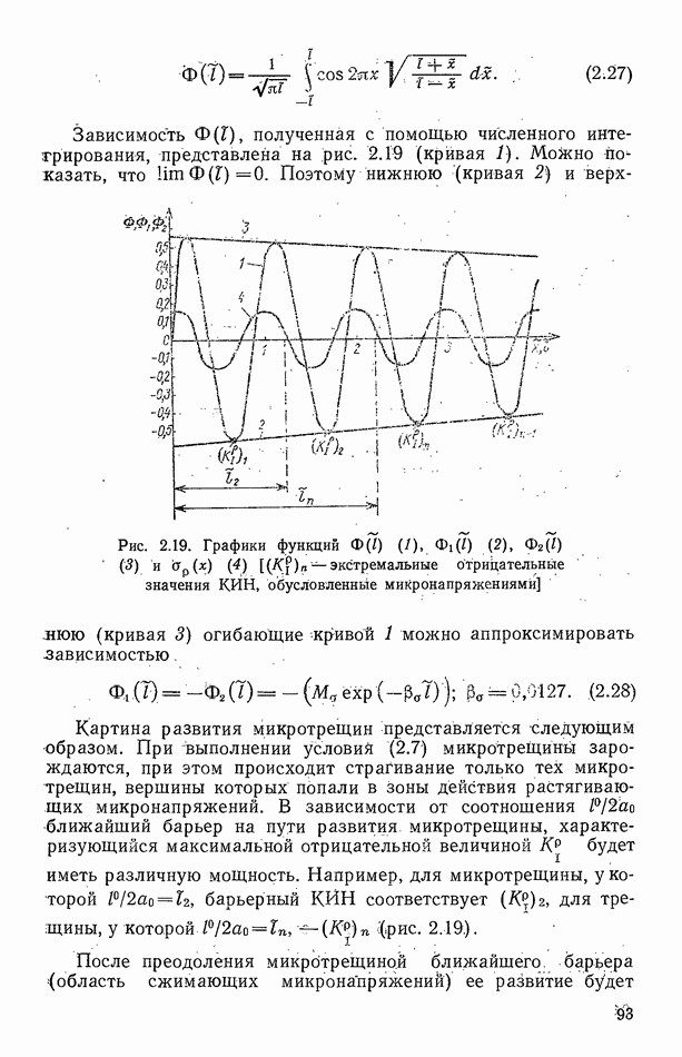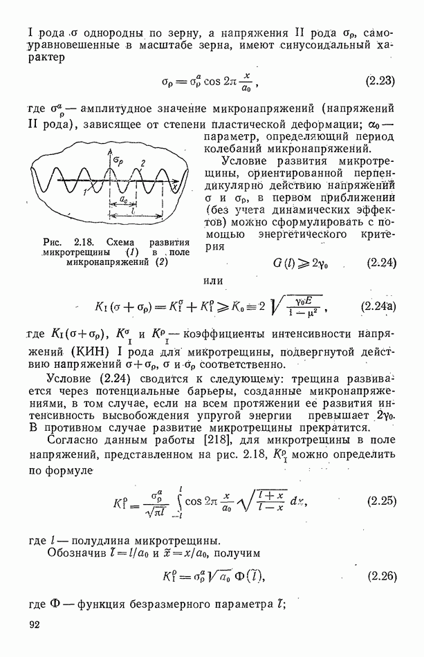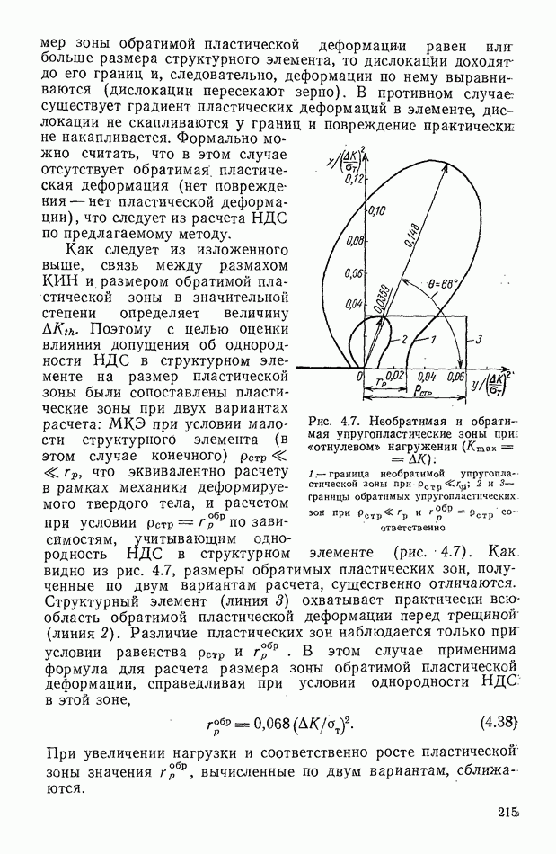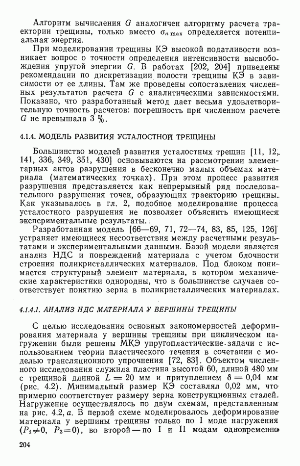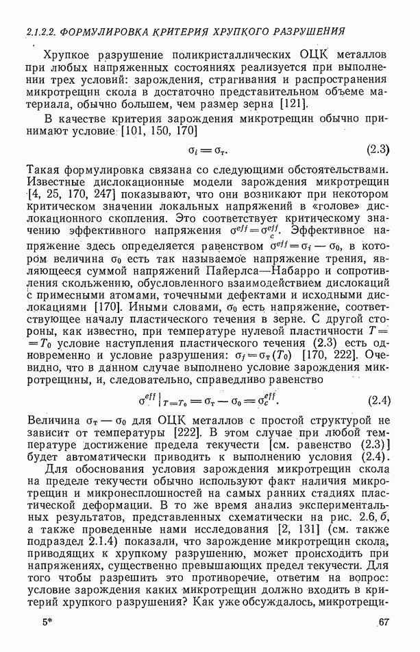 На основании полученного деформационно-силового уравнения усталостного разрушения (2.111) в гл. 4 выполнено моделирование кинетики - усталостных макротрещин в перлитных сталях, в частности, рассмотрено влияние асимметрии нагружения на пороговое значение коэффициента интенсивности, напряжений