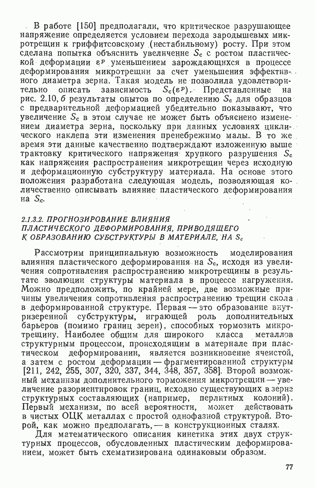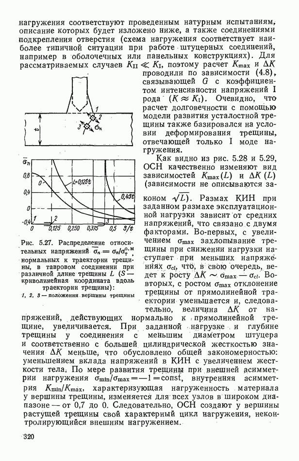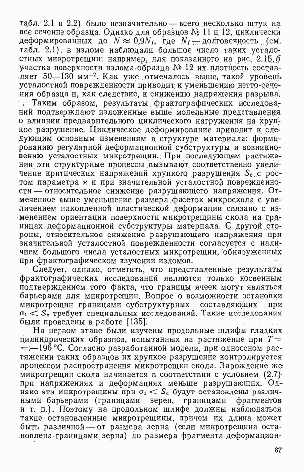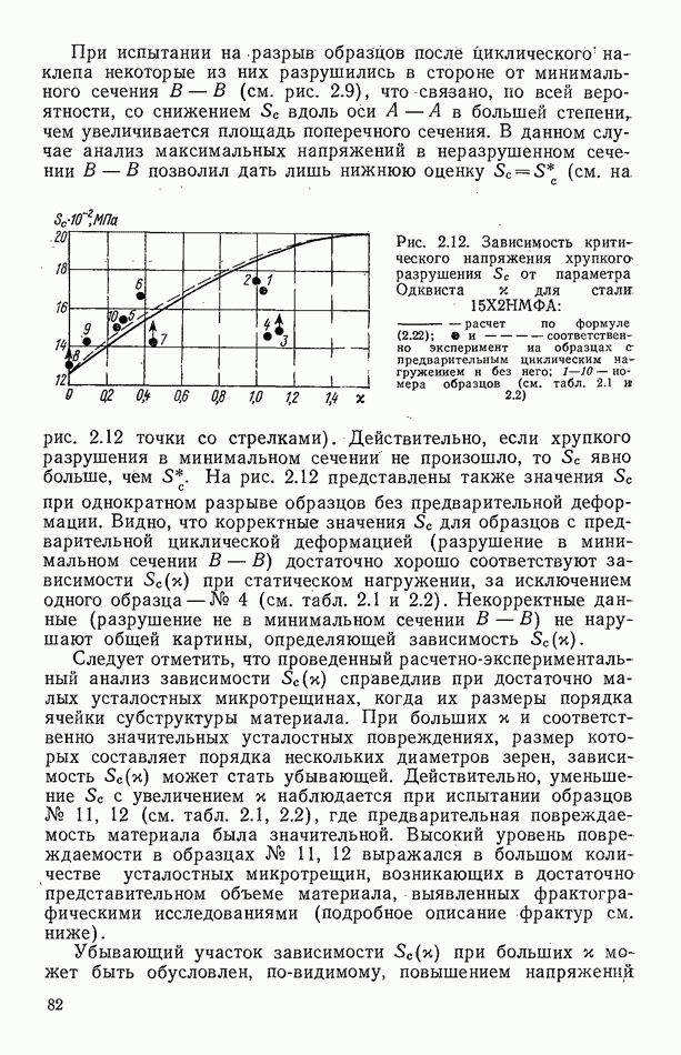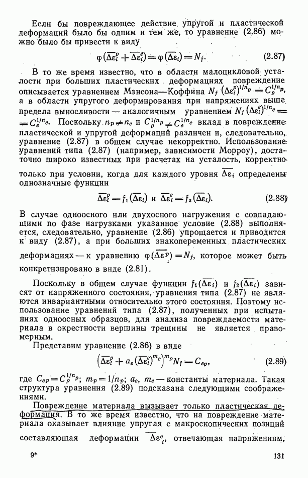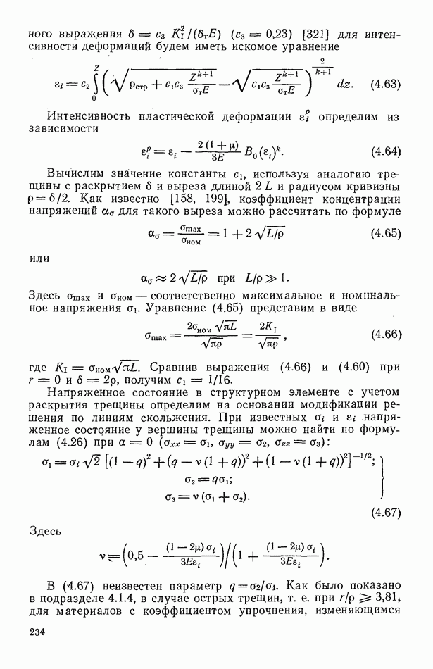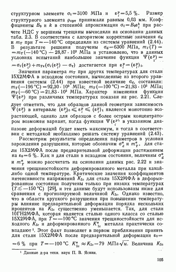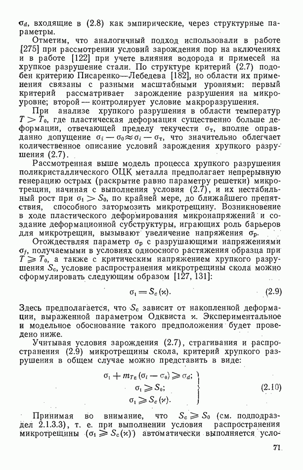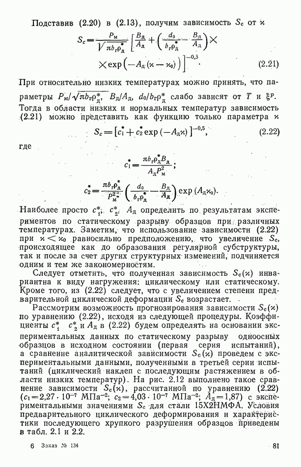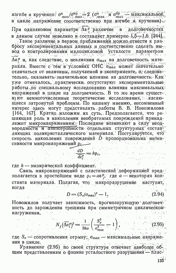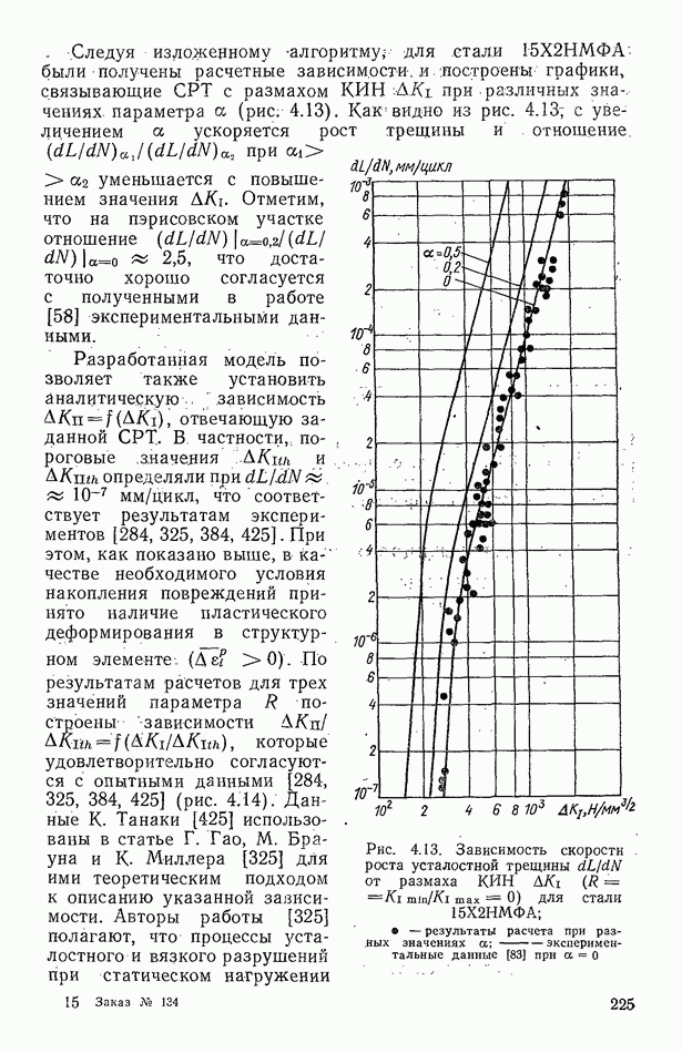 На основании полученного деформационно-силового уравнения усталостного разрушения (2.111) в гл. 4 выполнено моделирование кинетики - усталостных макротрещин в перлитных сталях, в частности, рассмотрено влияние асимметрии нагружения на пороговое значение коэффициента интенсивности, напряжений