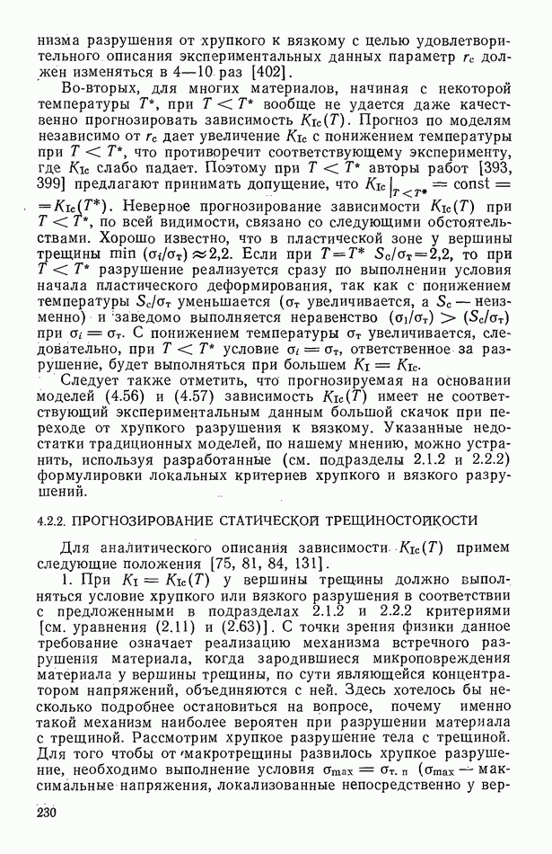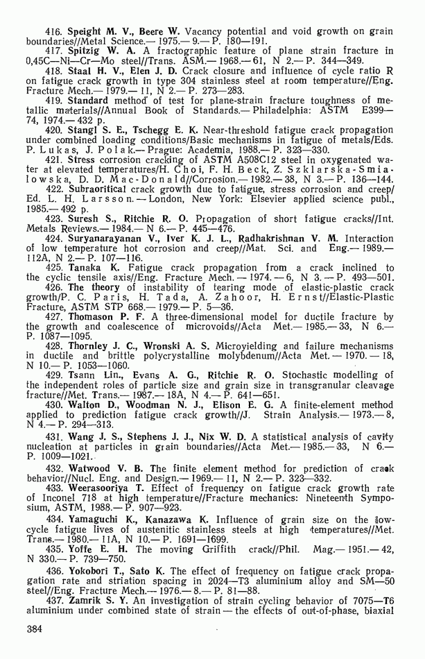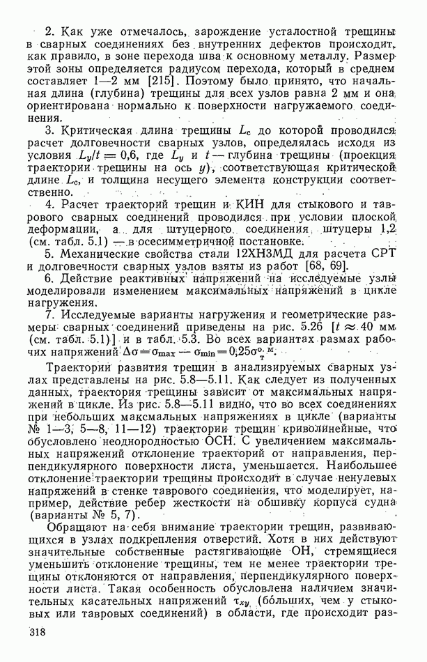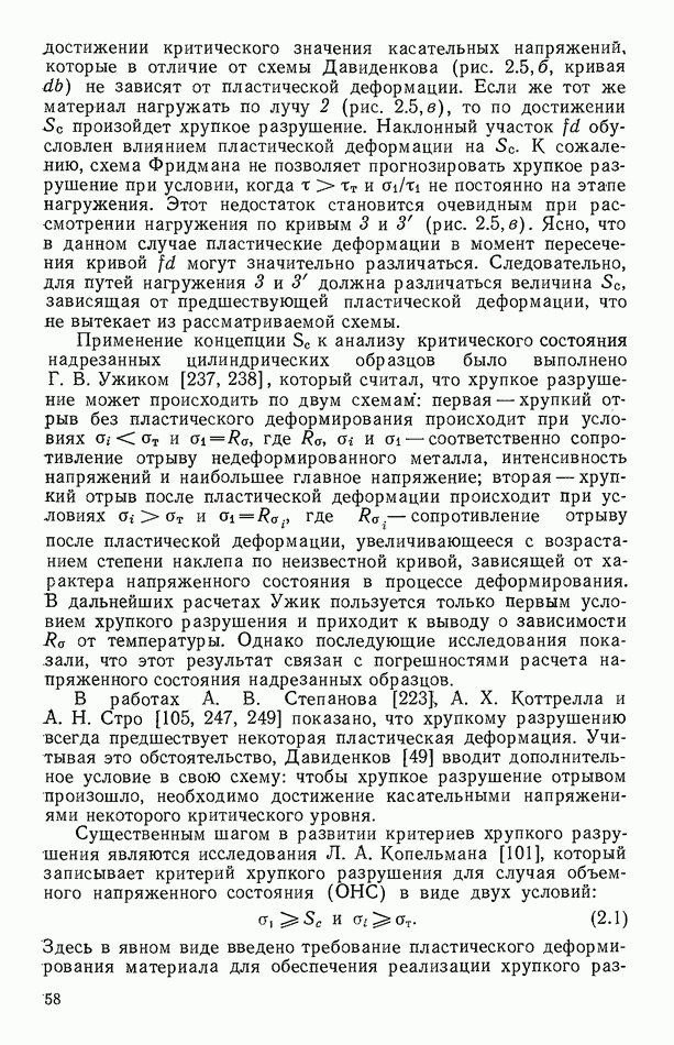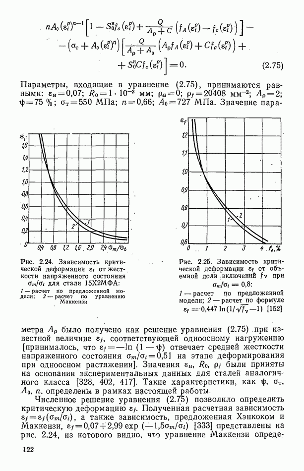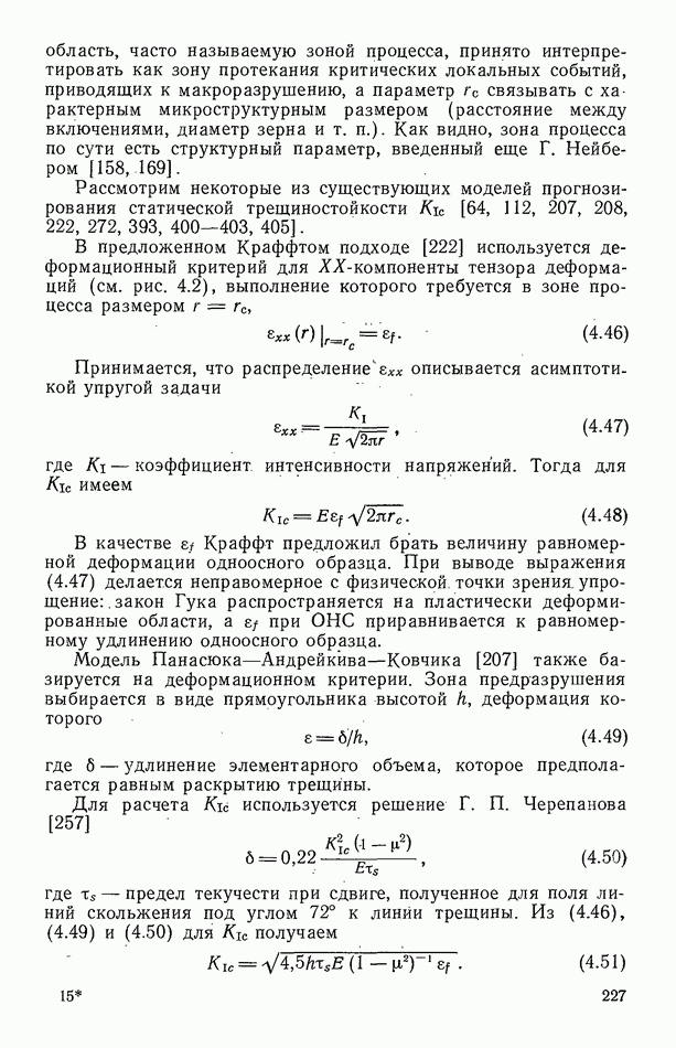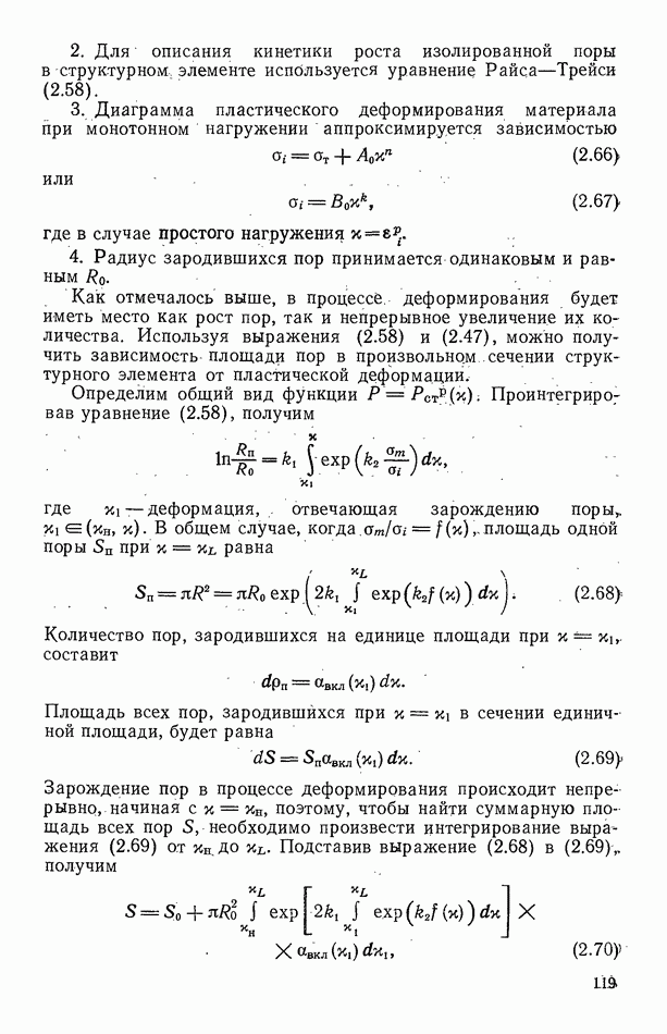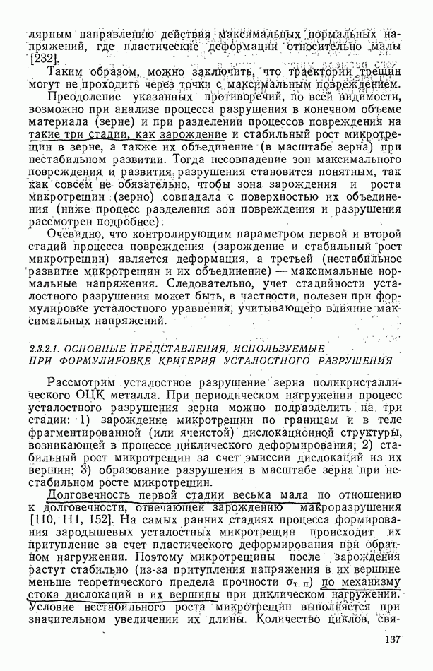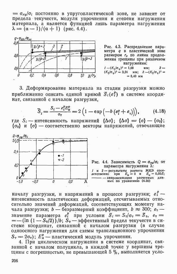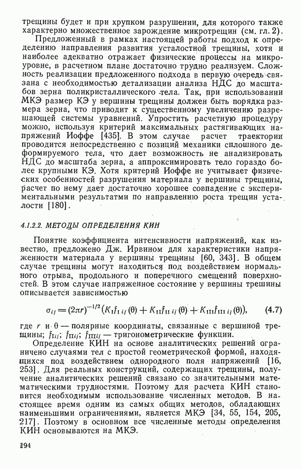 На основании полученного деформационно-силового уравнения усталостного разрушения (2.111) в гл. 4 выполнено моделирование кинетики - усталостных макротрещин в перлитных сталях, в частности, рассмотрено влияние асимметрии нагружения на пороговое значение коэффициента интенсивности, напряжений