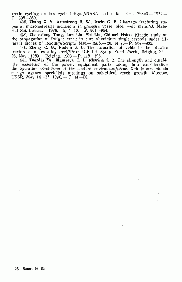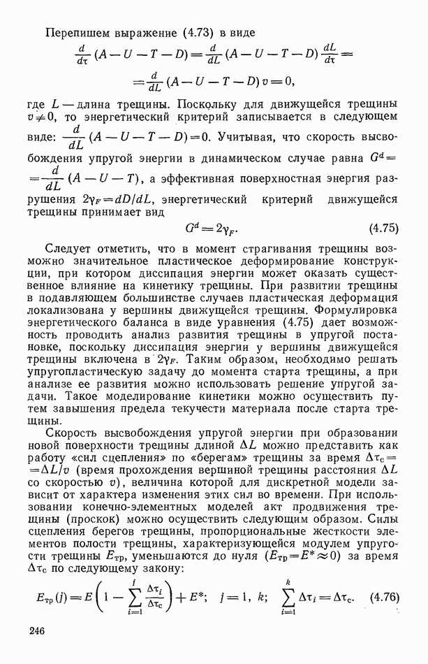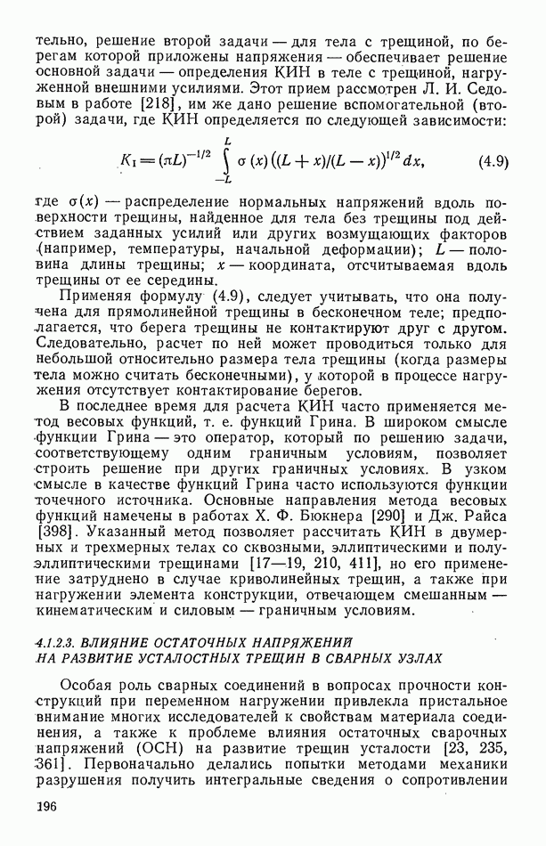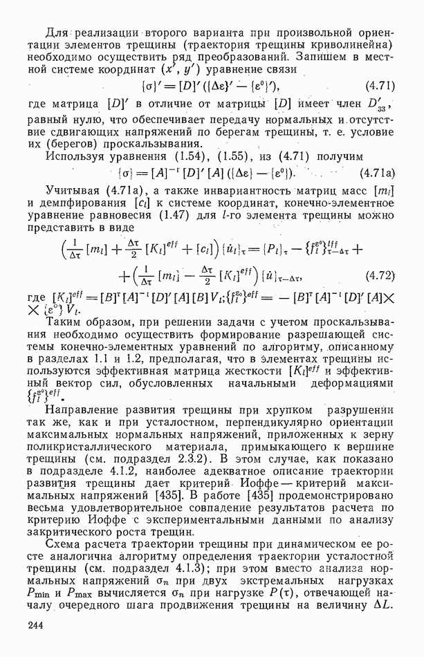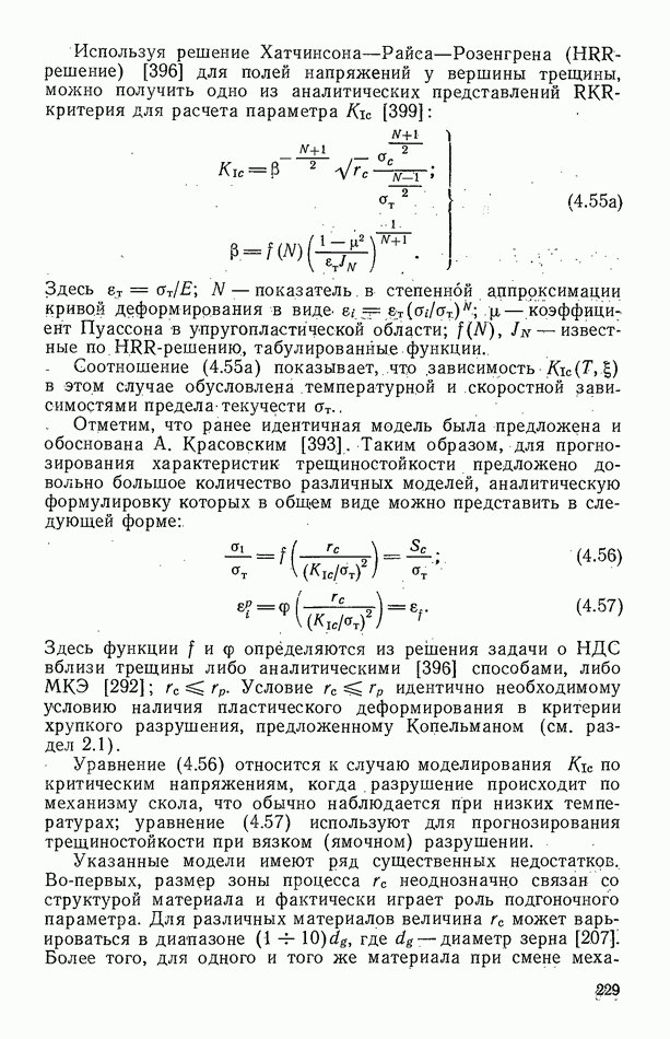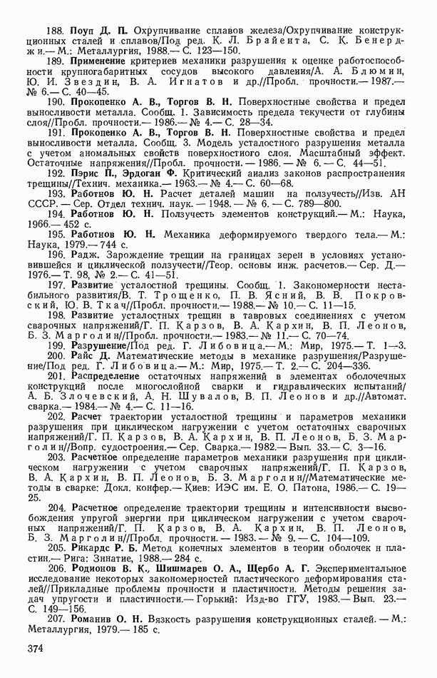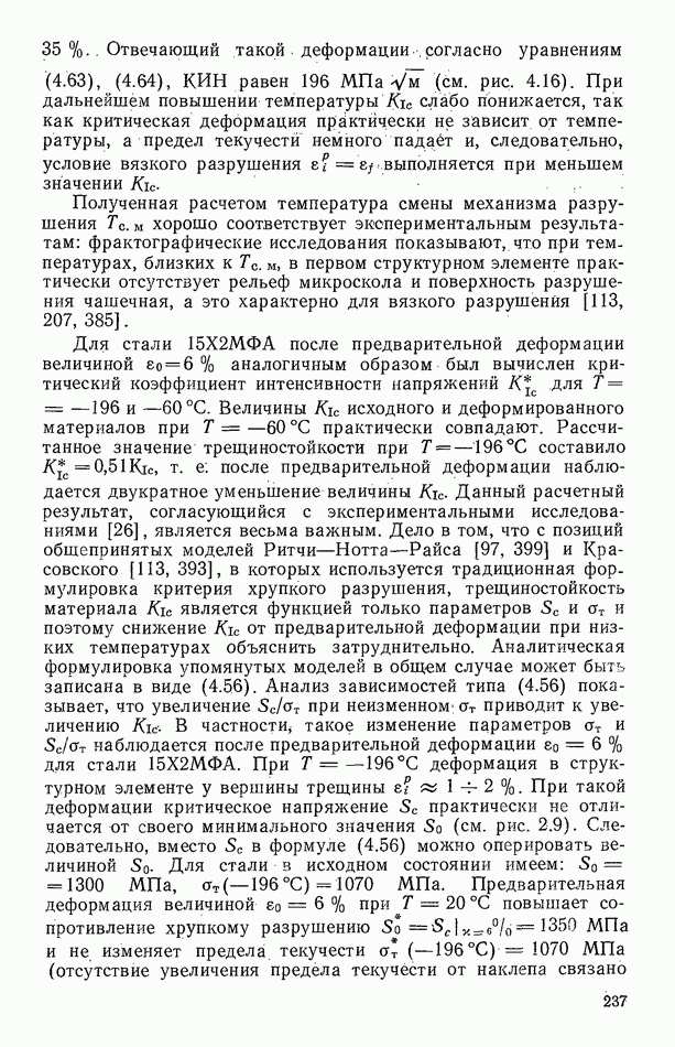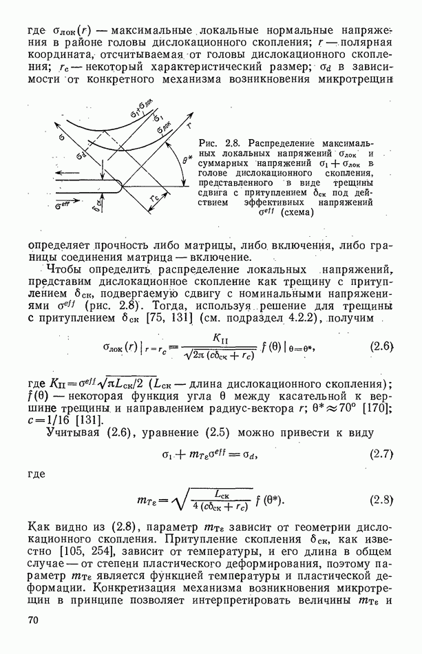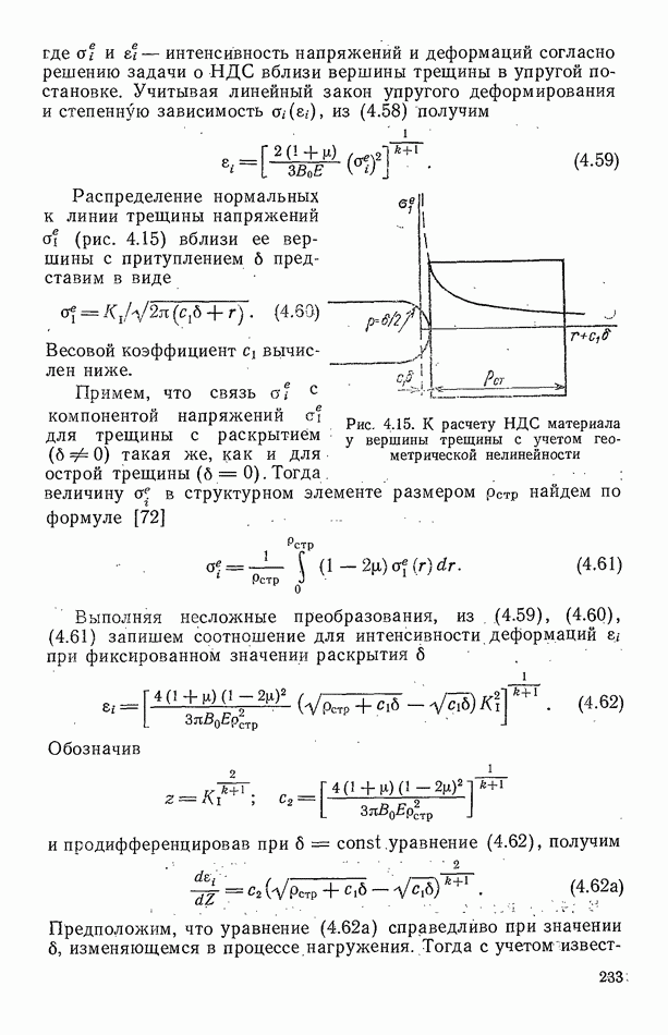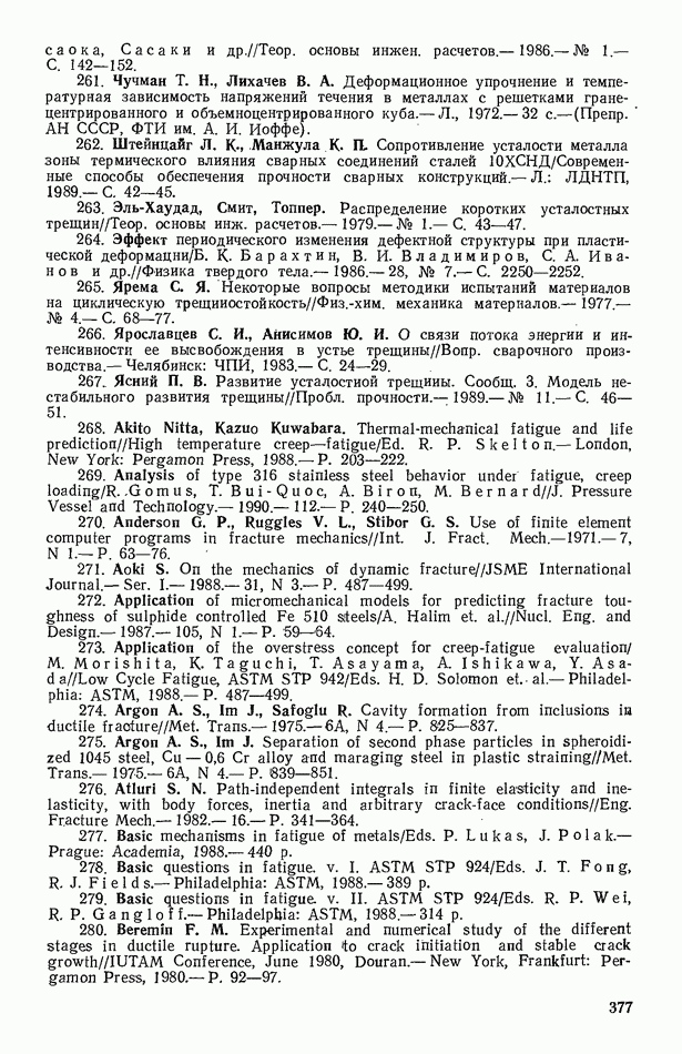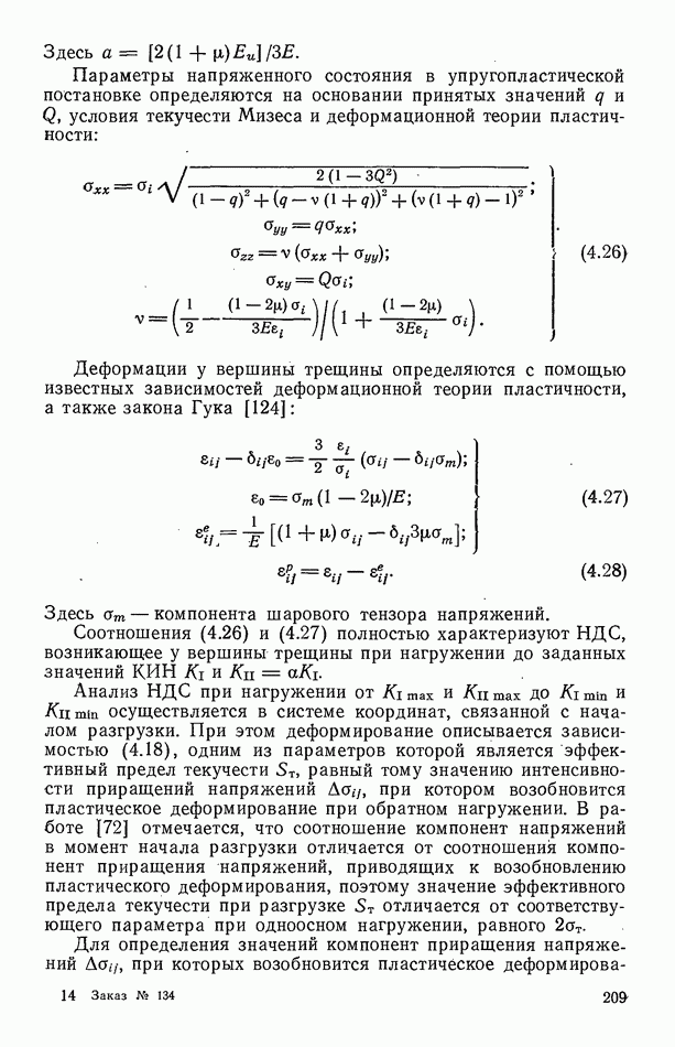 На основании полученного деформационно-силового уравнения усталостного разрушения (2.111) в гл. 4 выполнено моделирование кинетики - усталостных макротрещин в перлитных сталях, в частности, рассмотрено влияние асимметрии нагружения на пороговое значение коэффициента интенсивности, напряжений