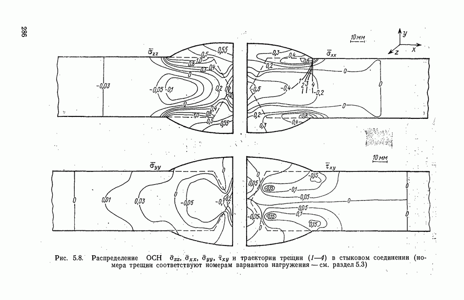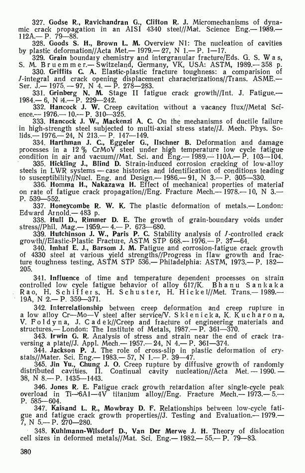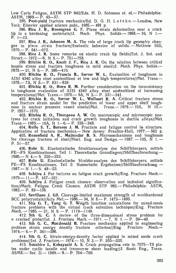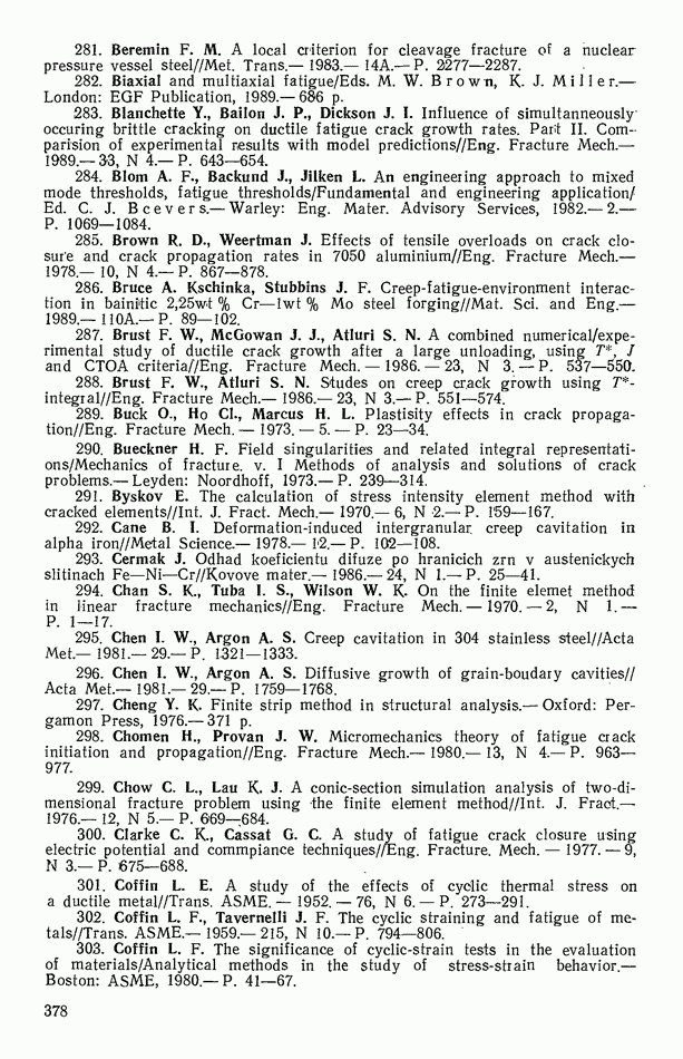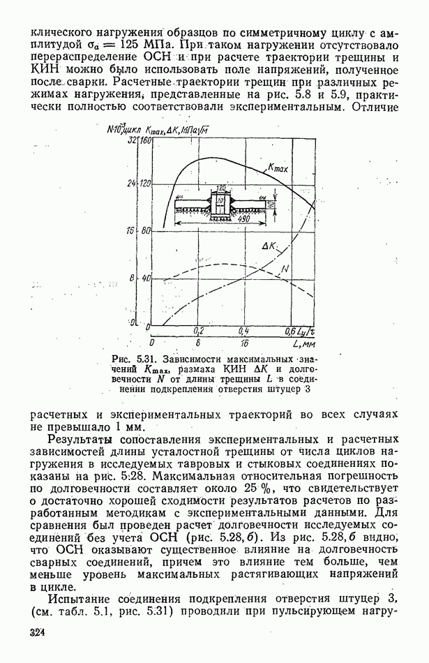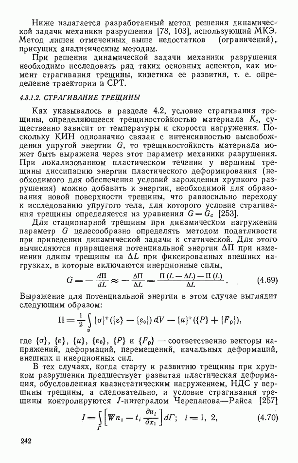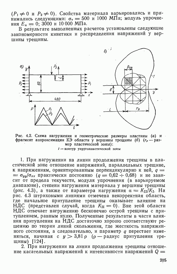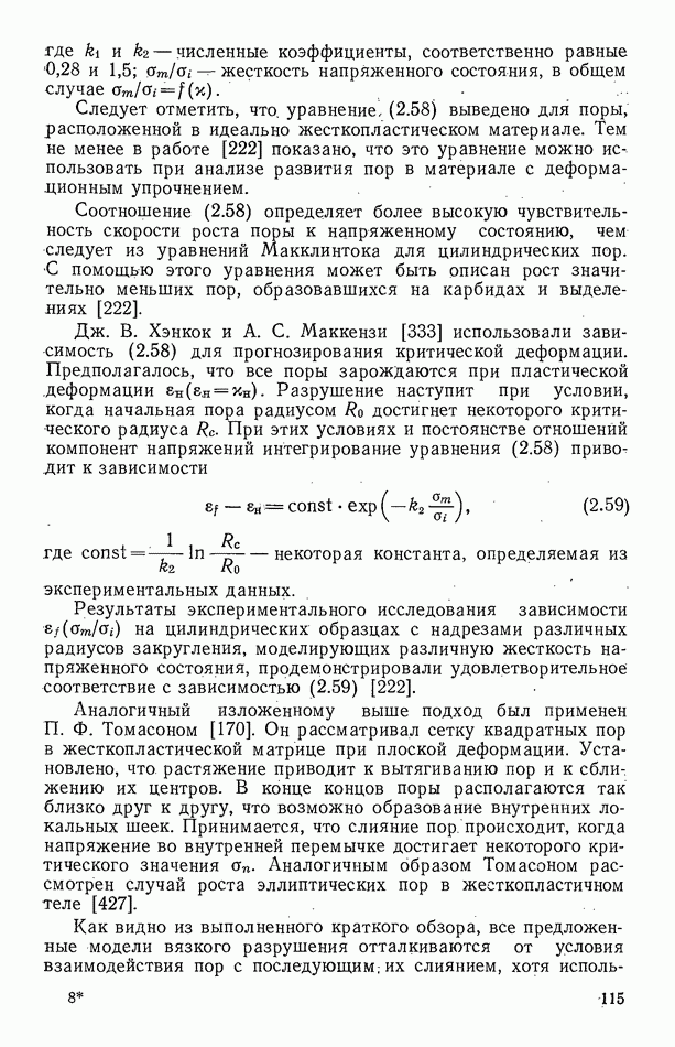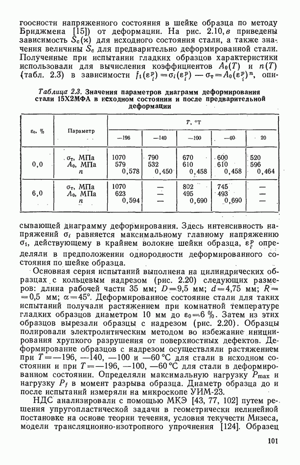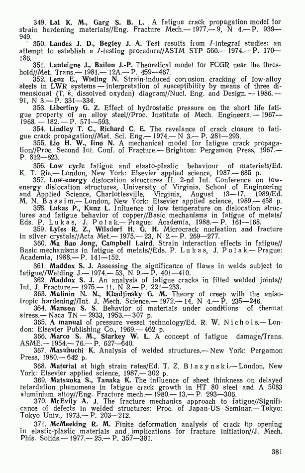 На основании полученного деформационно-силового уравнения усталостного разрушения (2.111) в гл. 4 выполнено моделирование кинетики - усталостных макротрещин в перлитных сталях, в частности, рассмотрено влияние асимметрии нагружения на пороговое значение коэффициента интенсивности, напряжений
