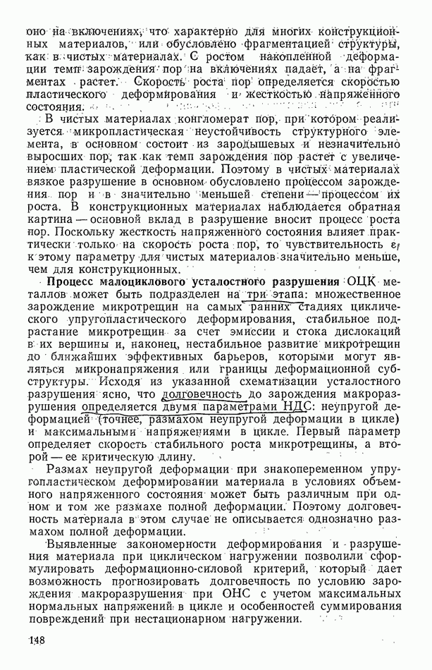 и нечувствительно, к истории деформирования. Поэтому даже один цикл с большим размахом деформации приводит к резкому увеличению