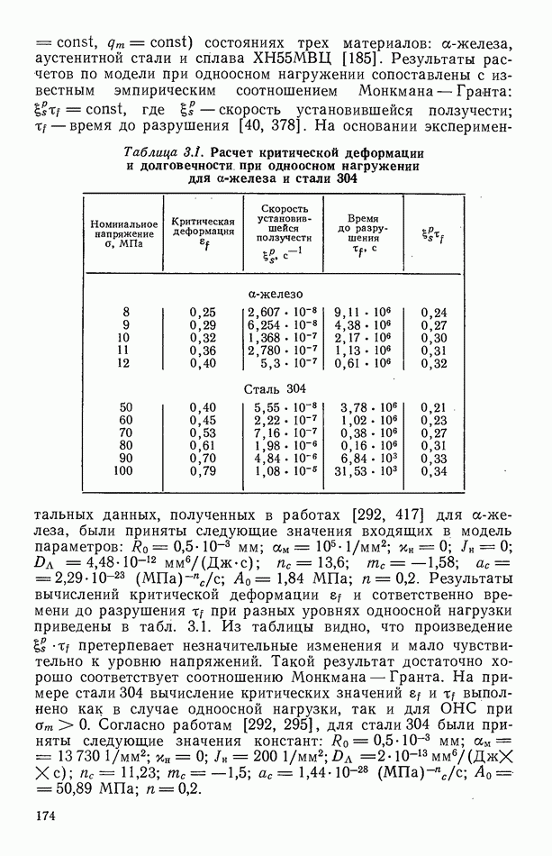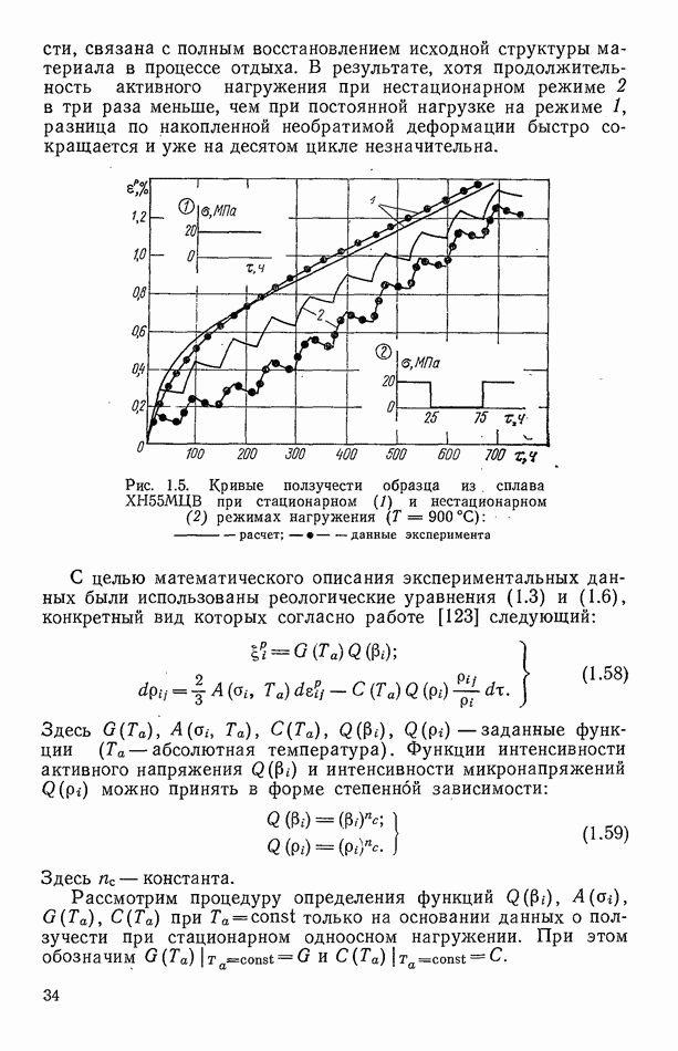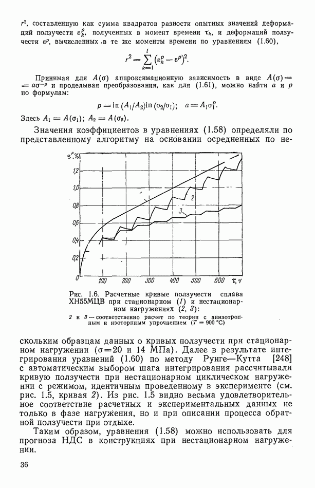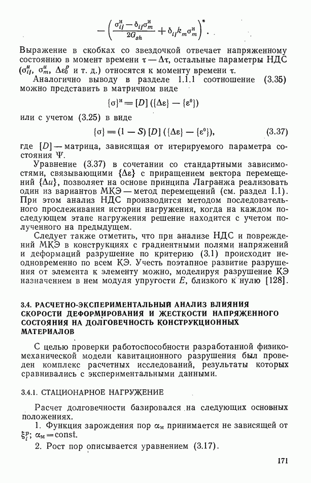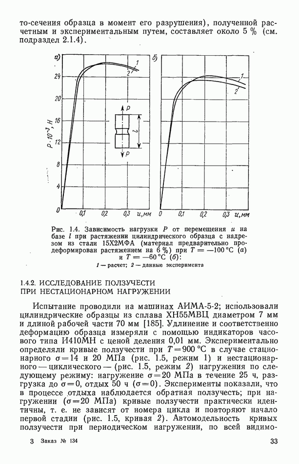 Увеличение количества циклов нагружения после переходного процесса, позволяет достаточно надежно использовать зависимость (2.98), что подтверждается, весьма хорошим совпадением расчетных и экспериментальных данных на участке