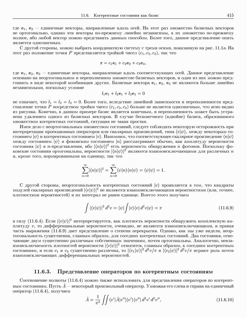 Соотношение полноты (11.6.4) можно также использовать для представления операторов по когерентным состояниям. Пусть А — некоторый произвольный оператор. Умножая его слева и справа на единичный оператор (11.6.4), получаем
