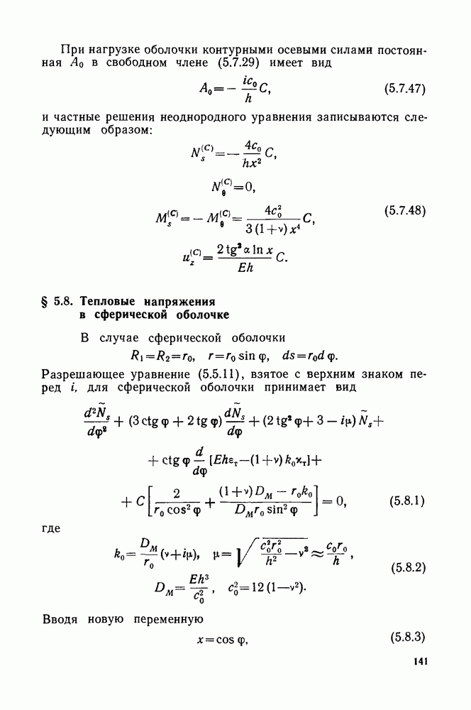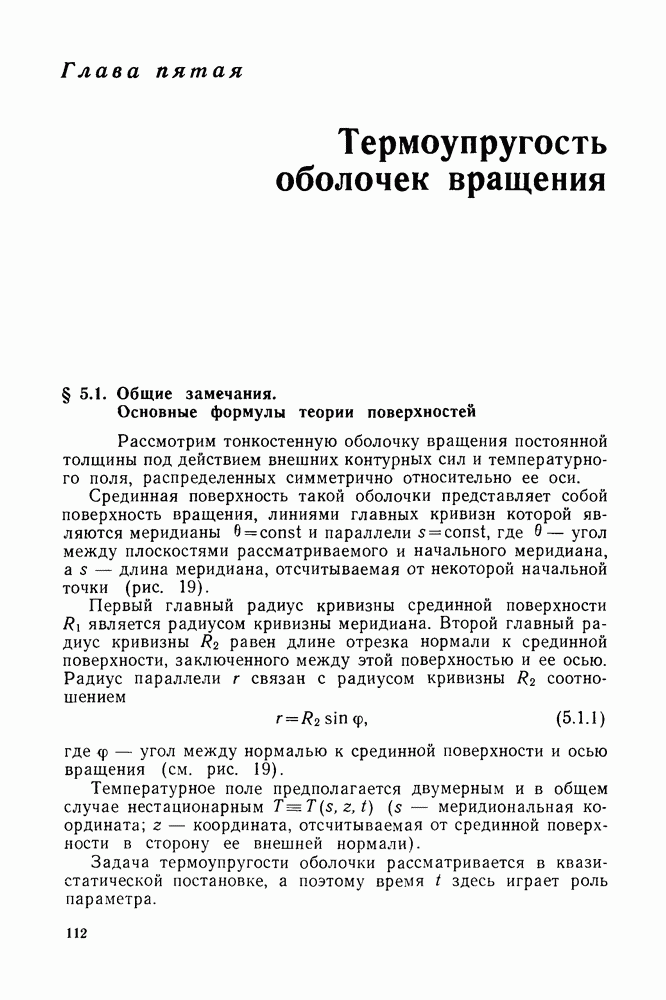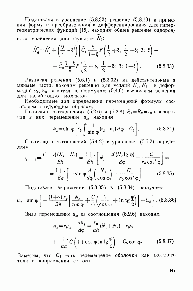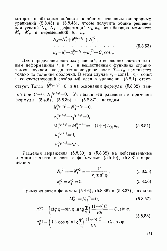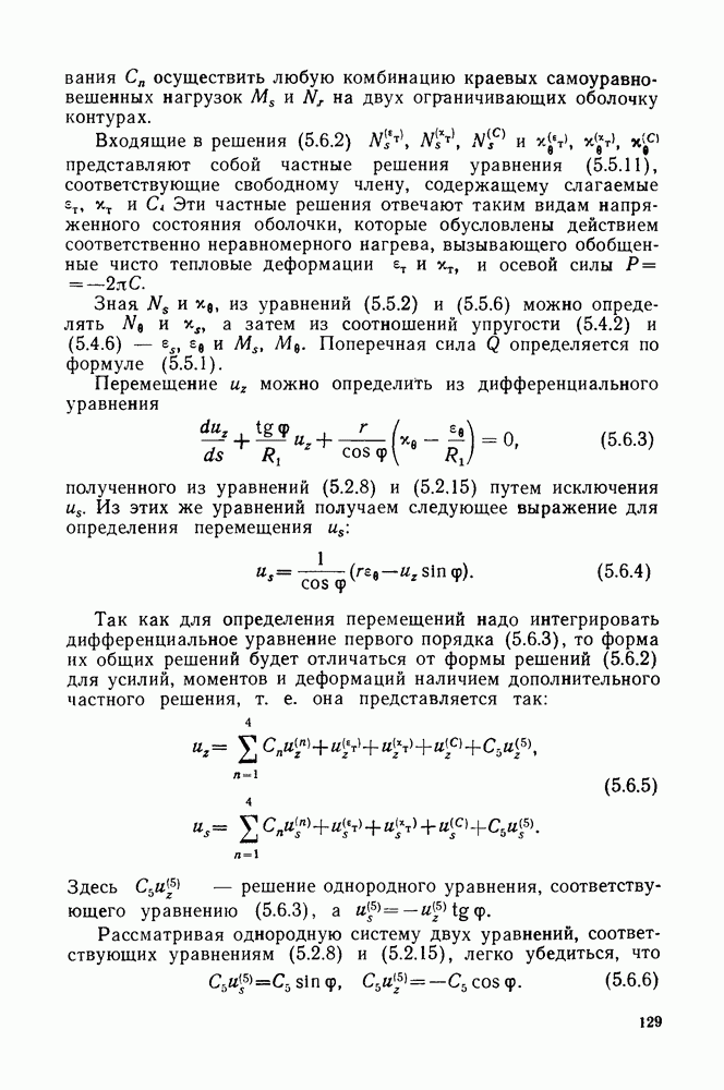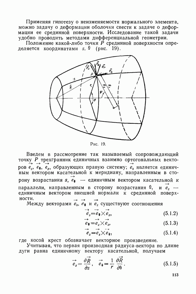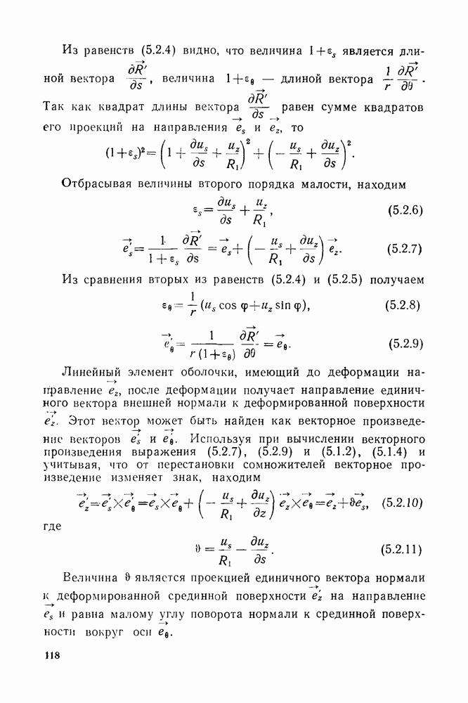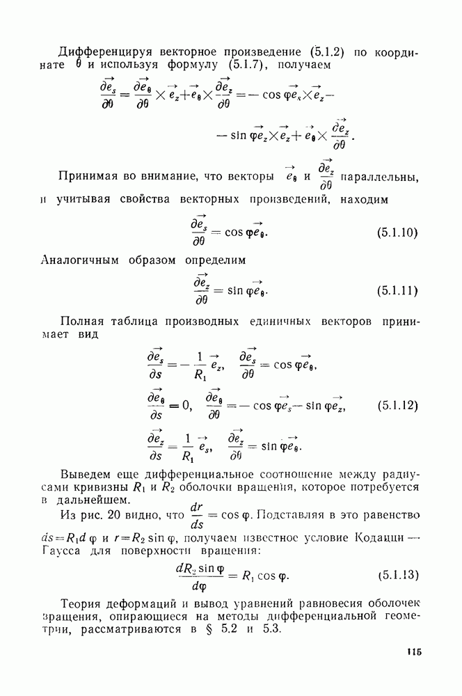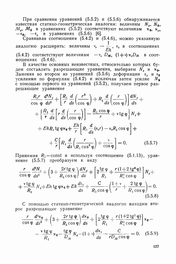 приравнивая затем нулю коэффициенты при  находим из двух векторных уравнений (5.3.7) три скалярных уравнения равновесия элемента оболочки: