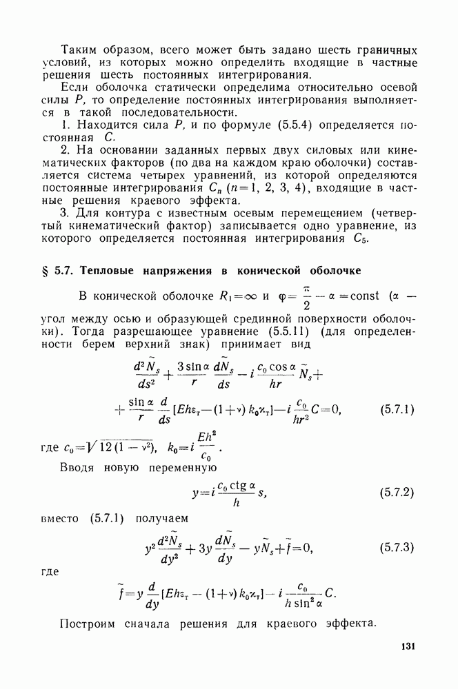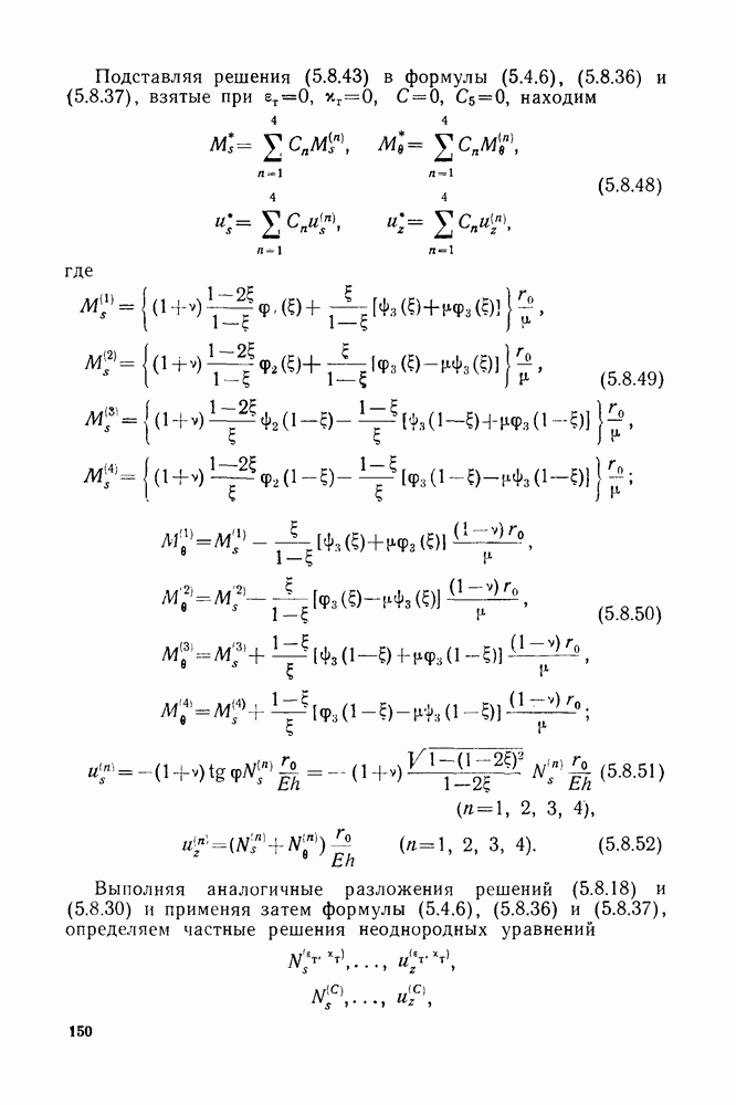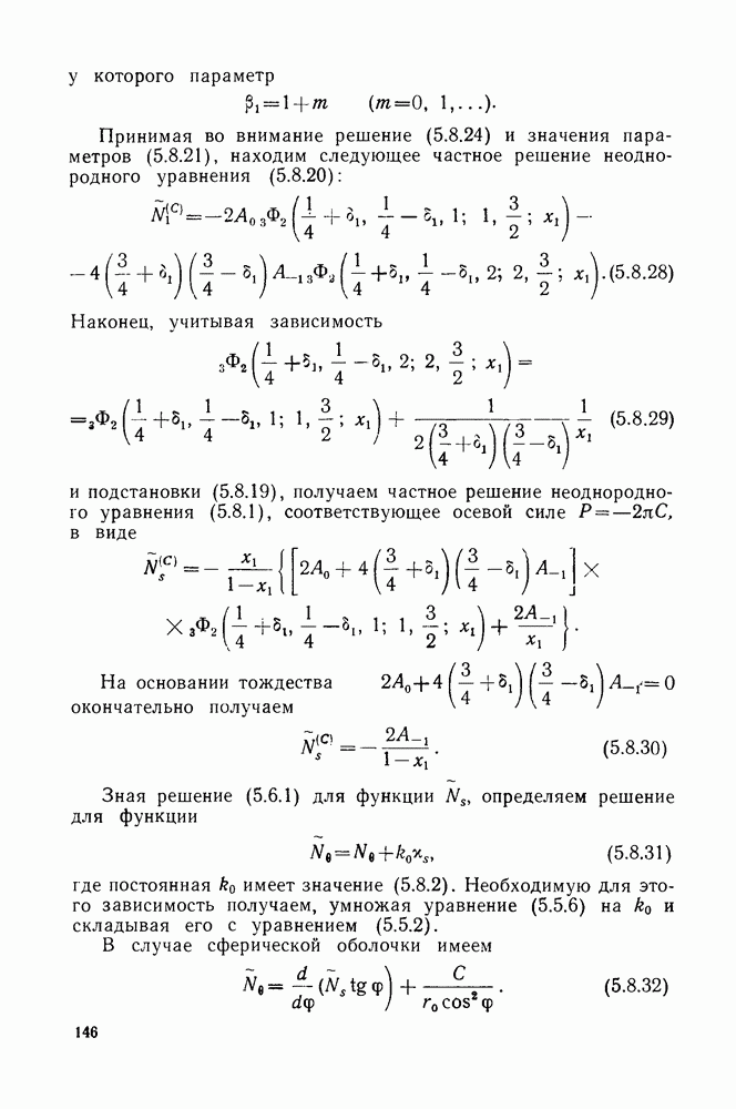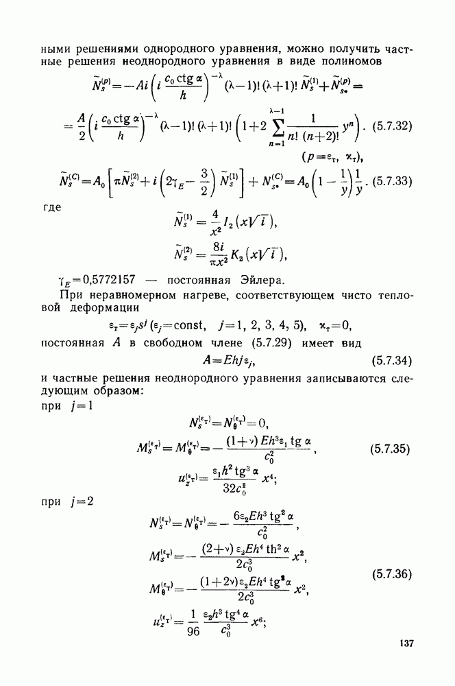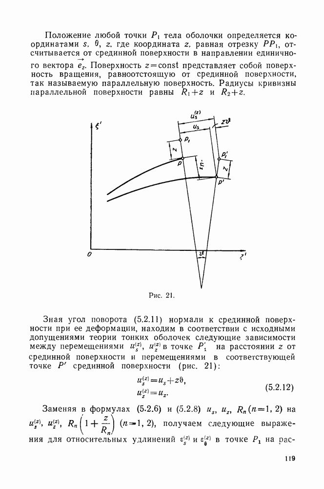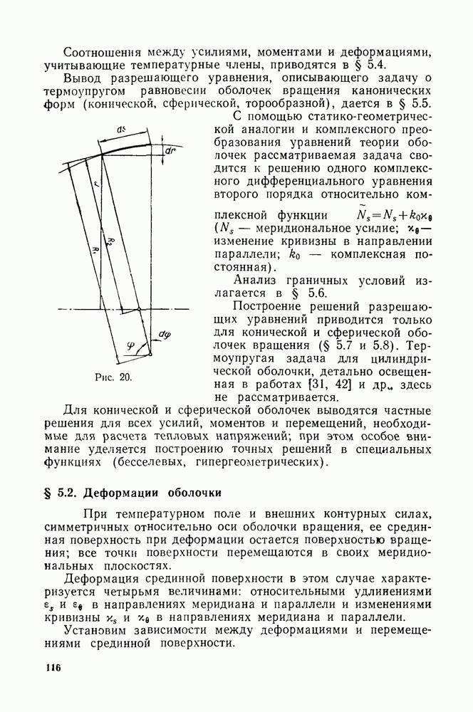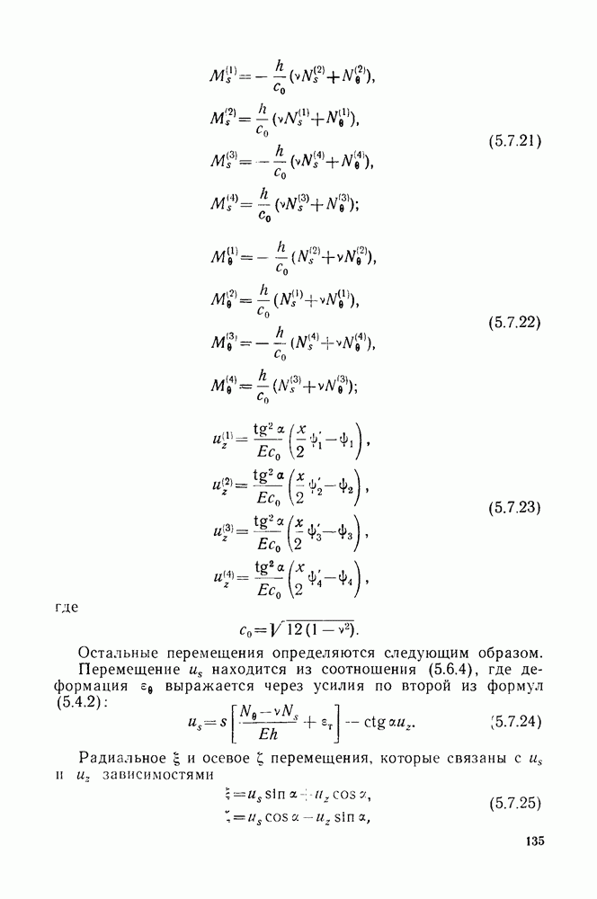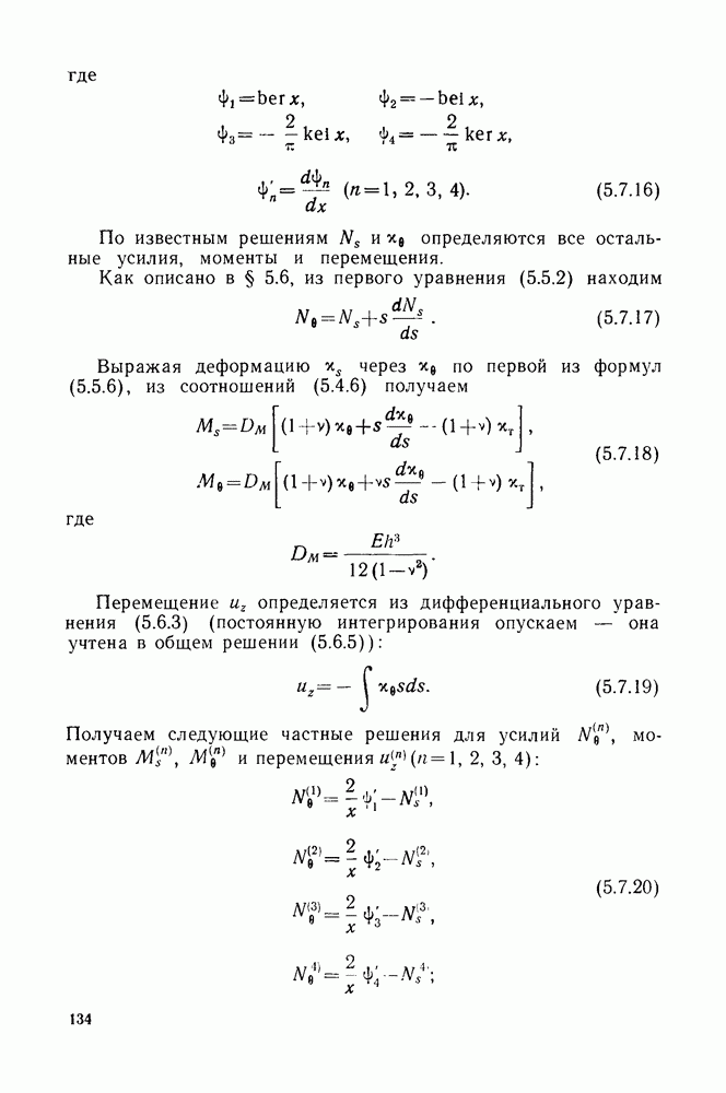 приравнивая затем нулю коэффициенты при  находим из двух векторных уравнений (5.3.7) три скалярных уравнения равновесия элемента оболочки: