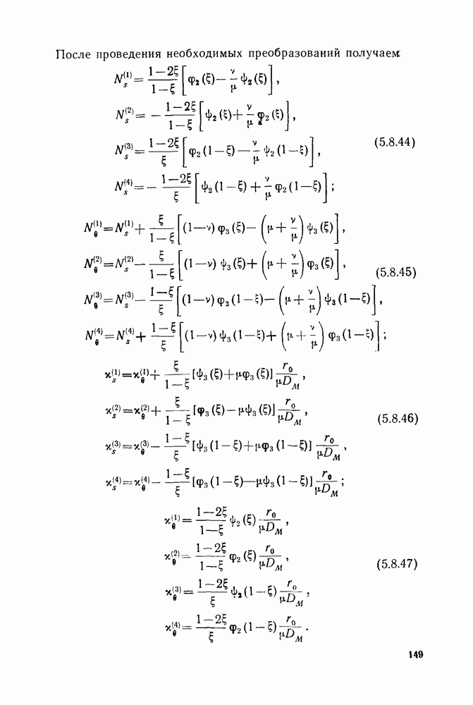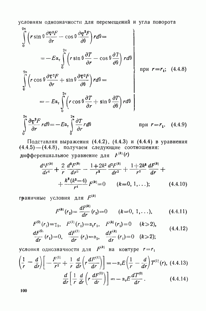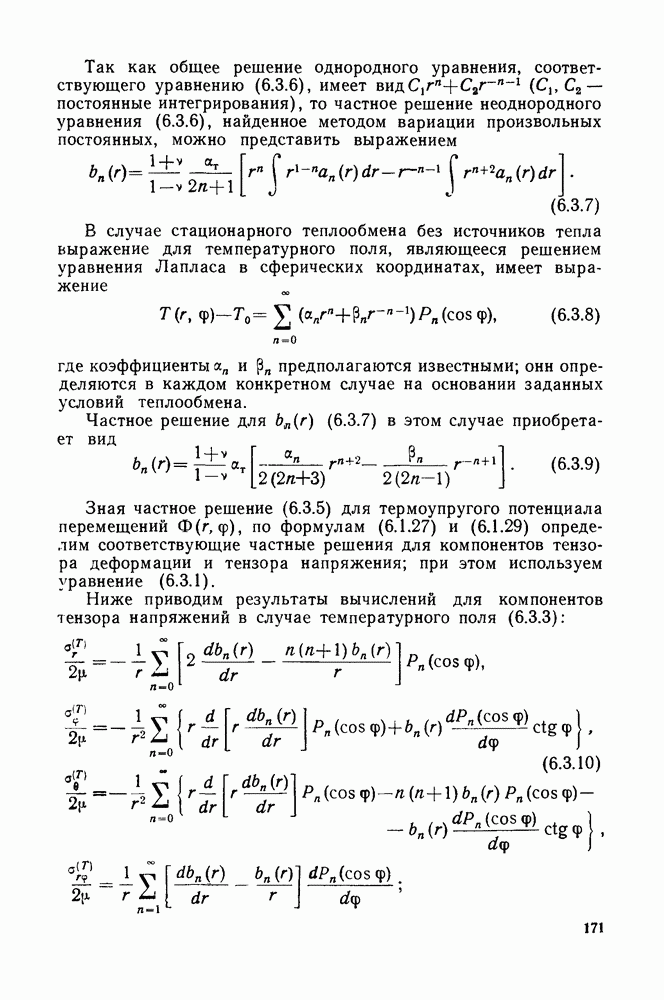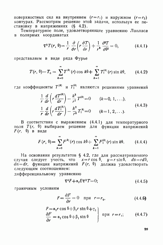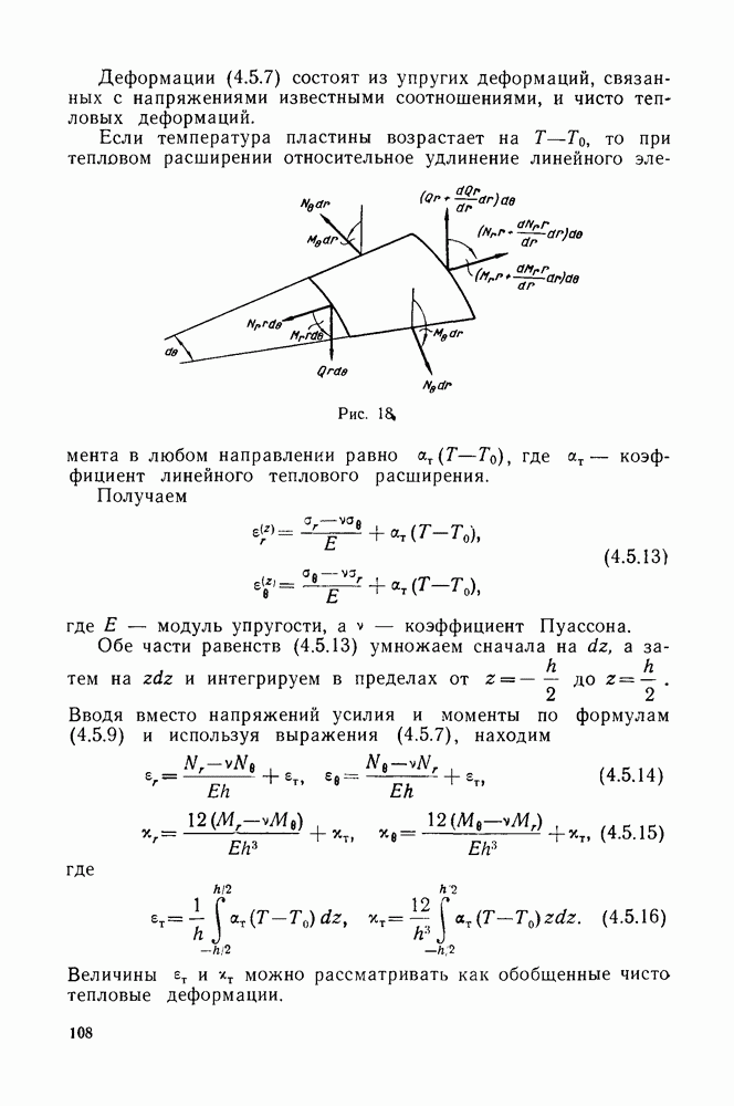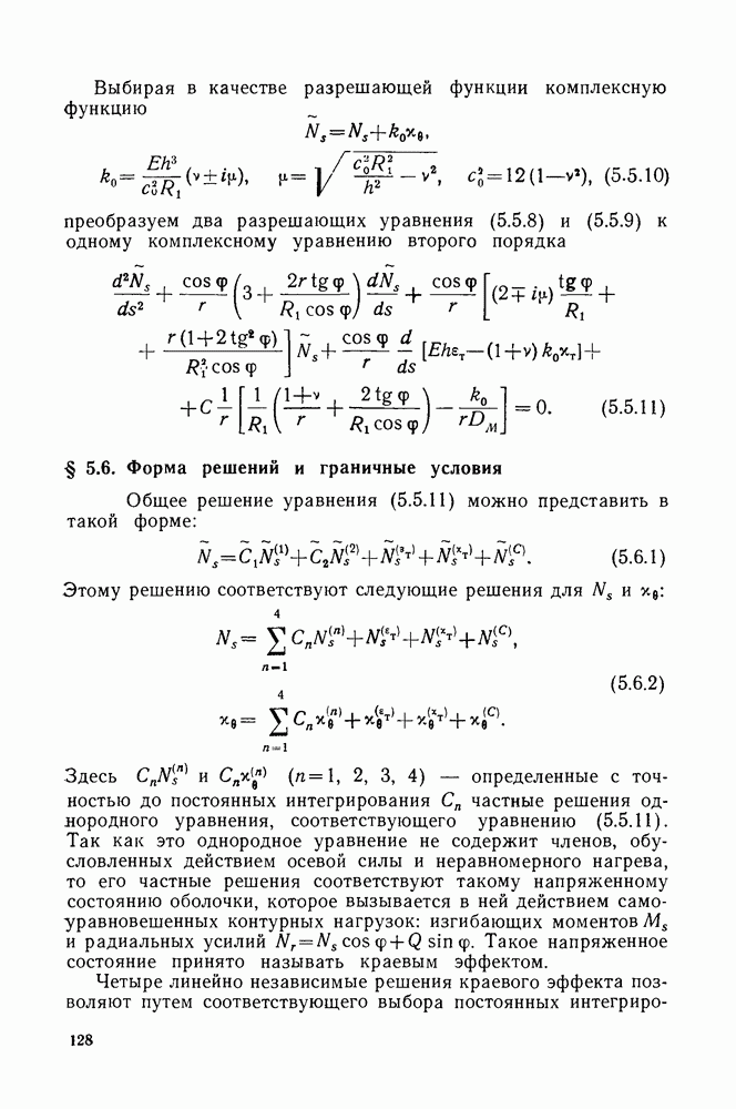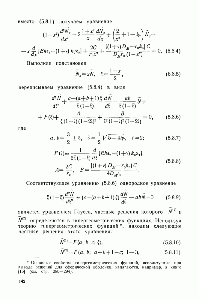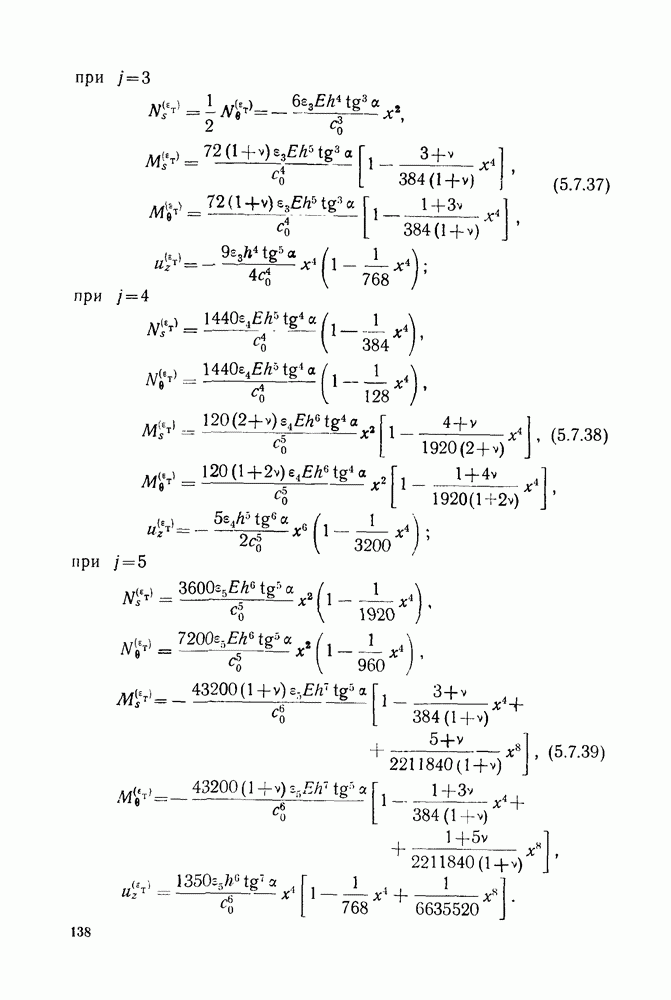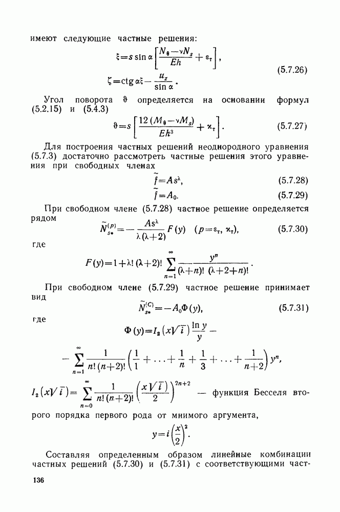 приравнивая затем нулю коэффициенты при  находим из двух векторных уравнений (5.3.7) три скалярных уравнения равновесия элемента оболочки: