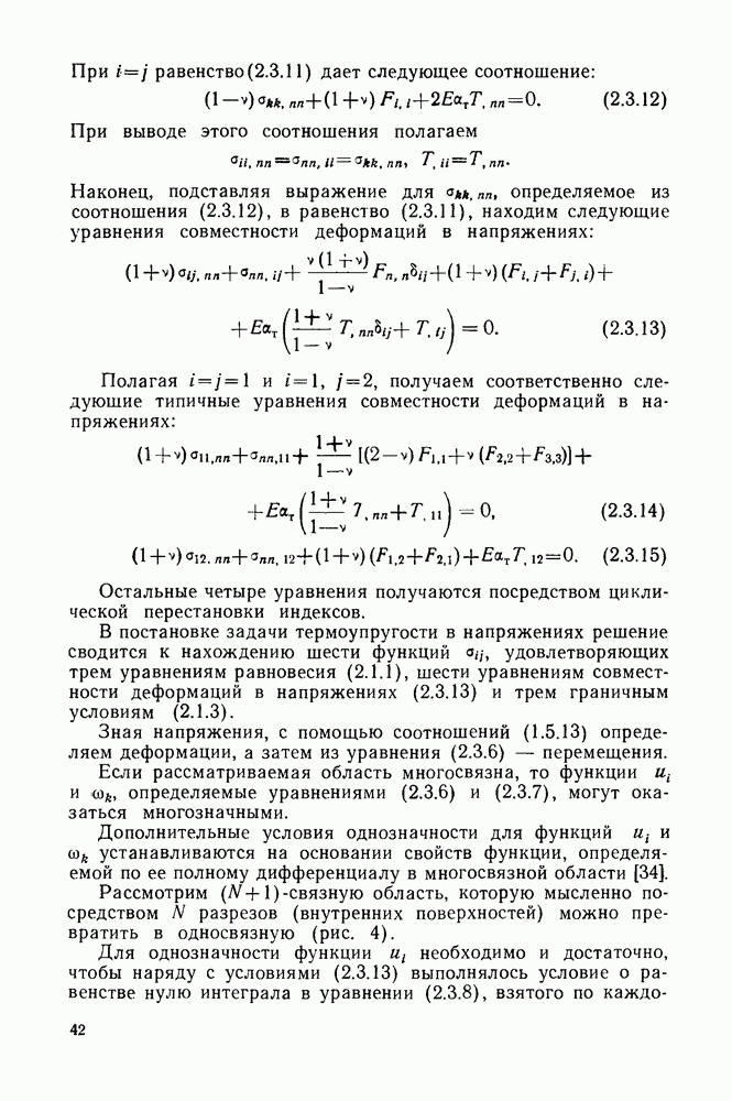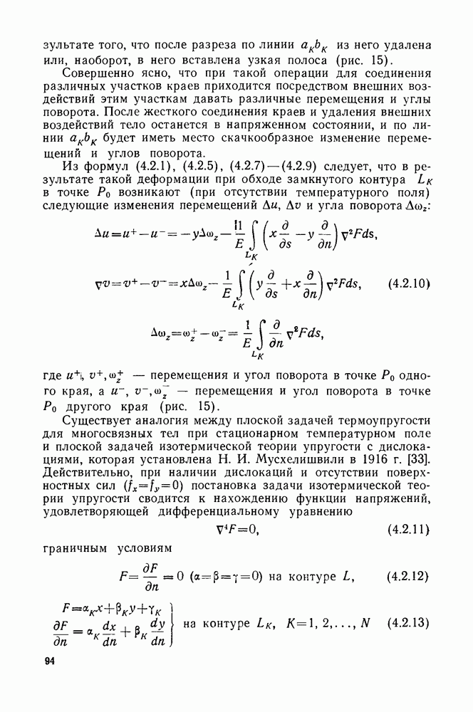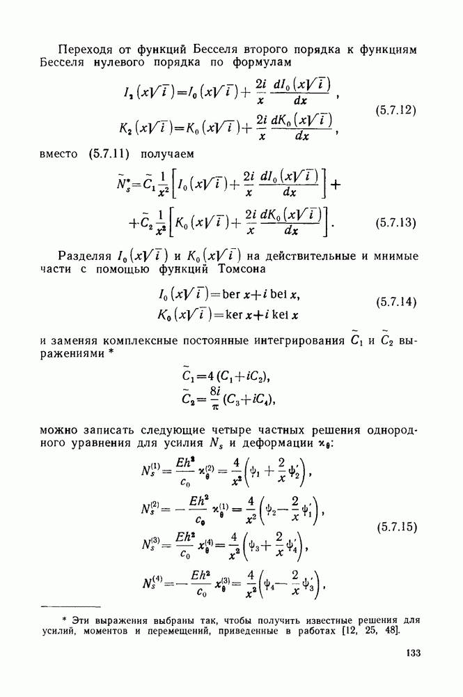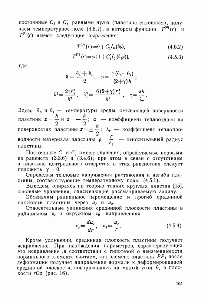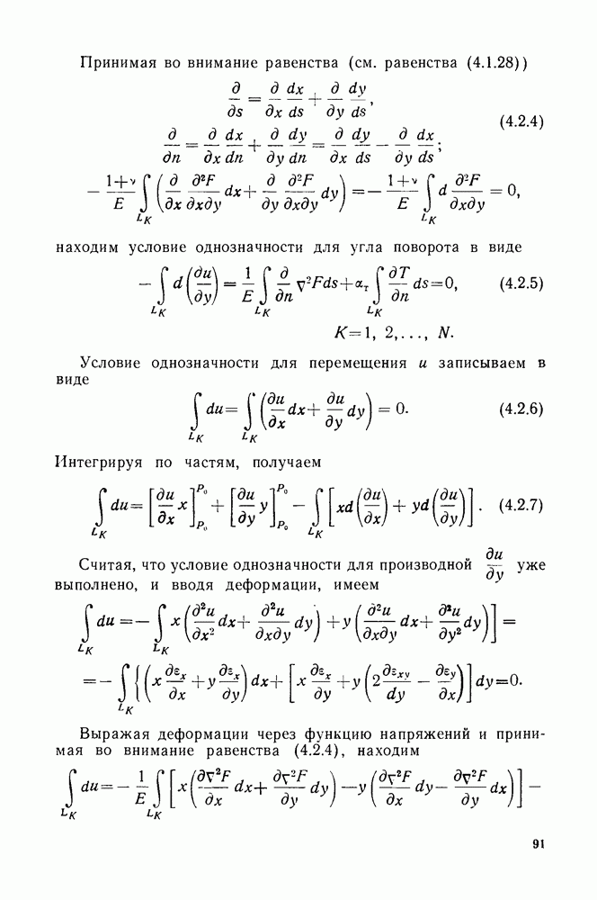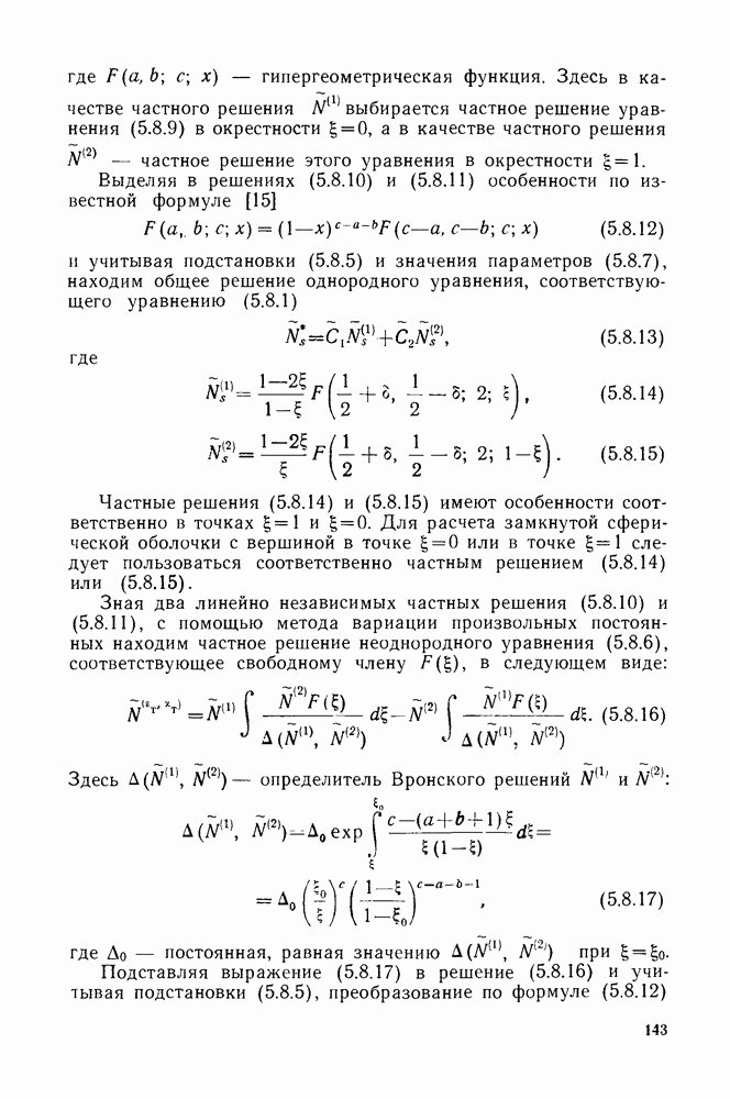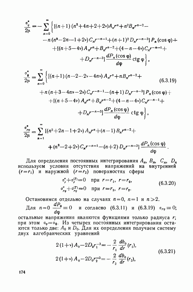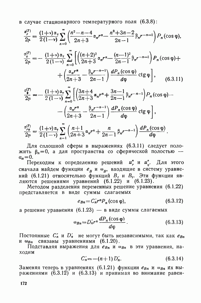 приравнивая затем нулю коэффициенты при  находим из двух векторных уравнений (5.3.7) три скалярных уравнения равновесия элемента оболочки: