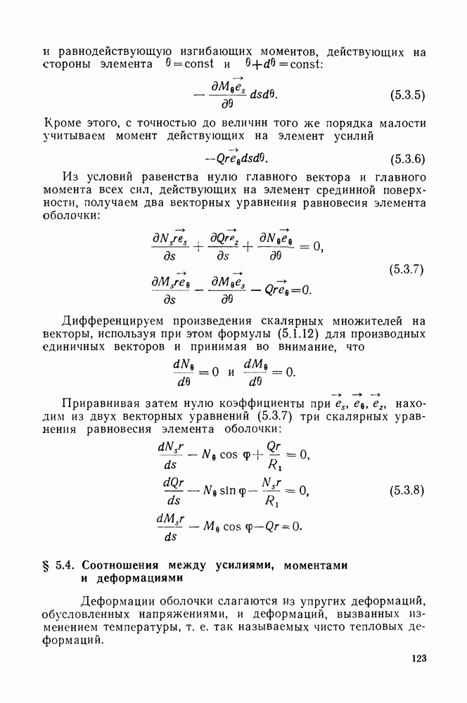 находим из двух векторных уравнений (5.3.7) три скалярных уравнения равновесия элемента оболочки: