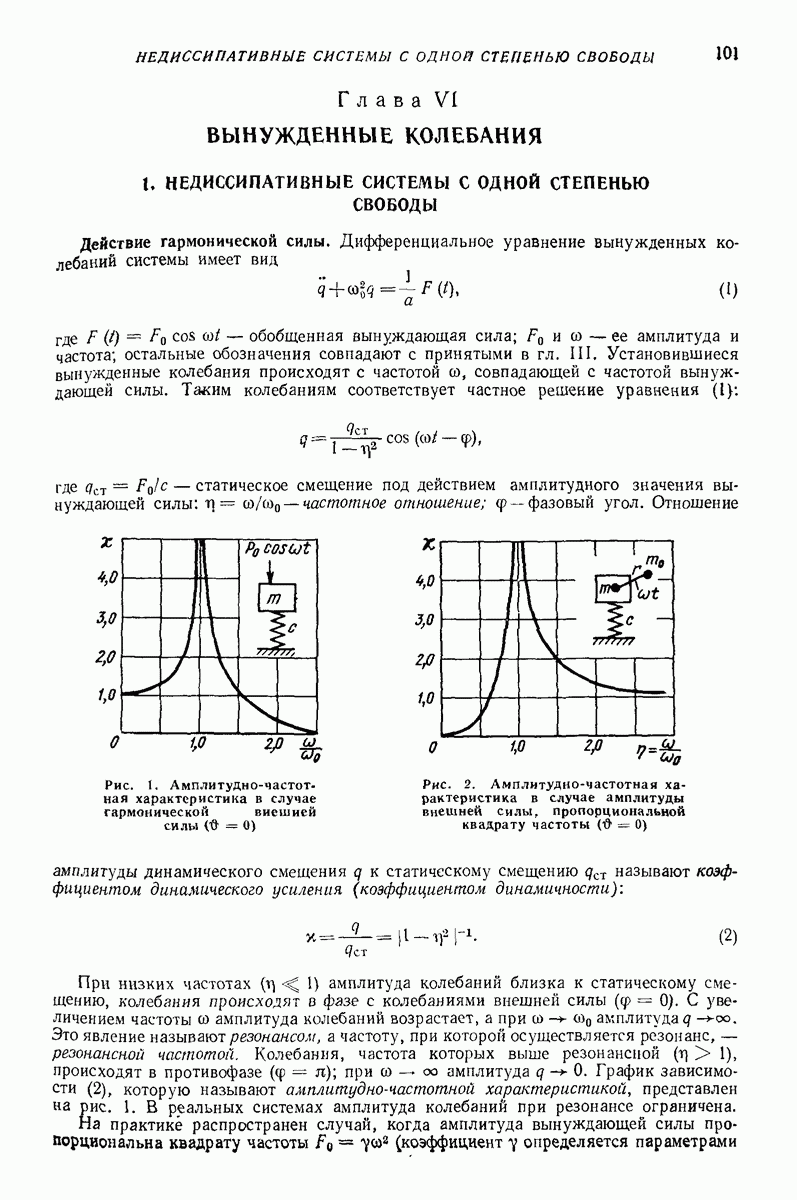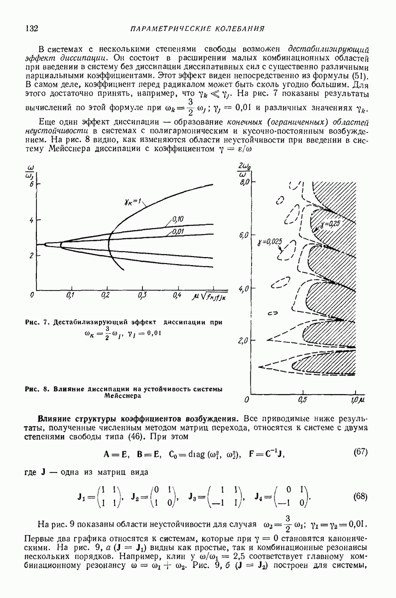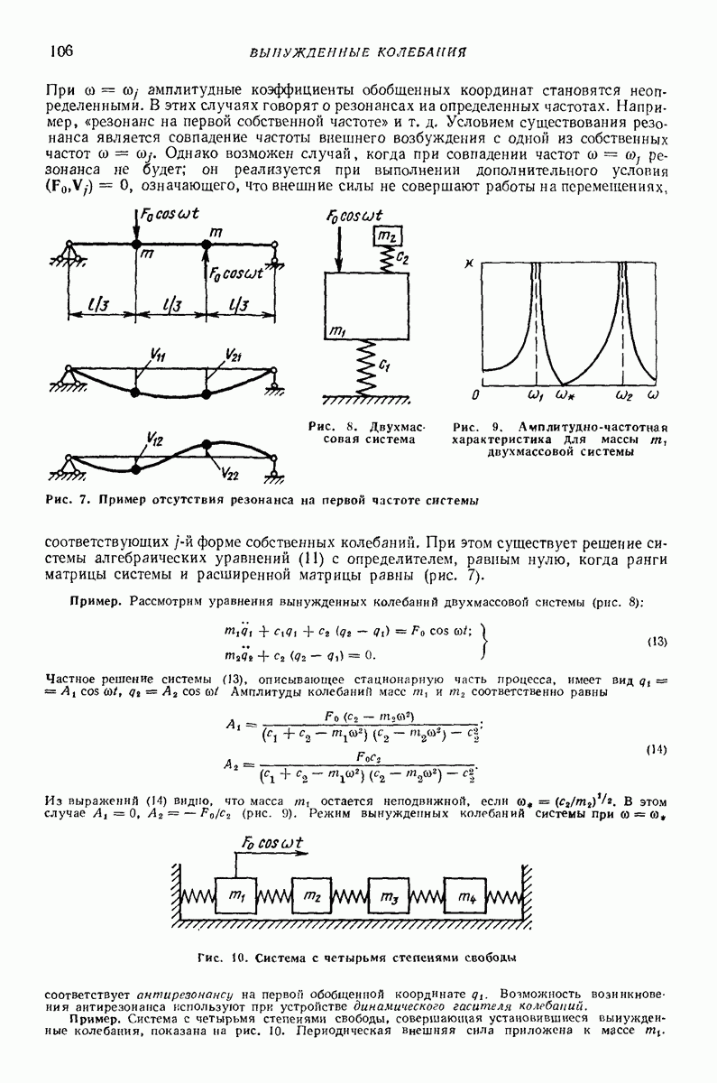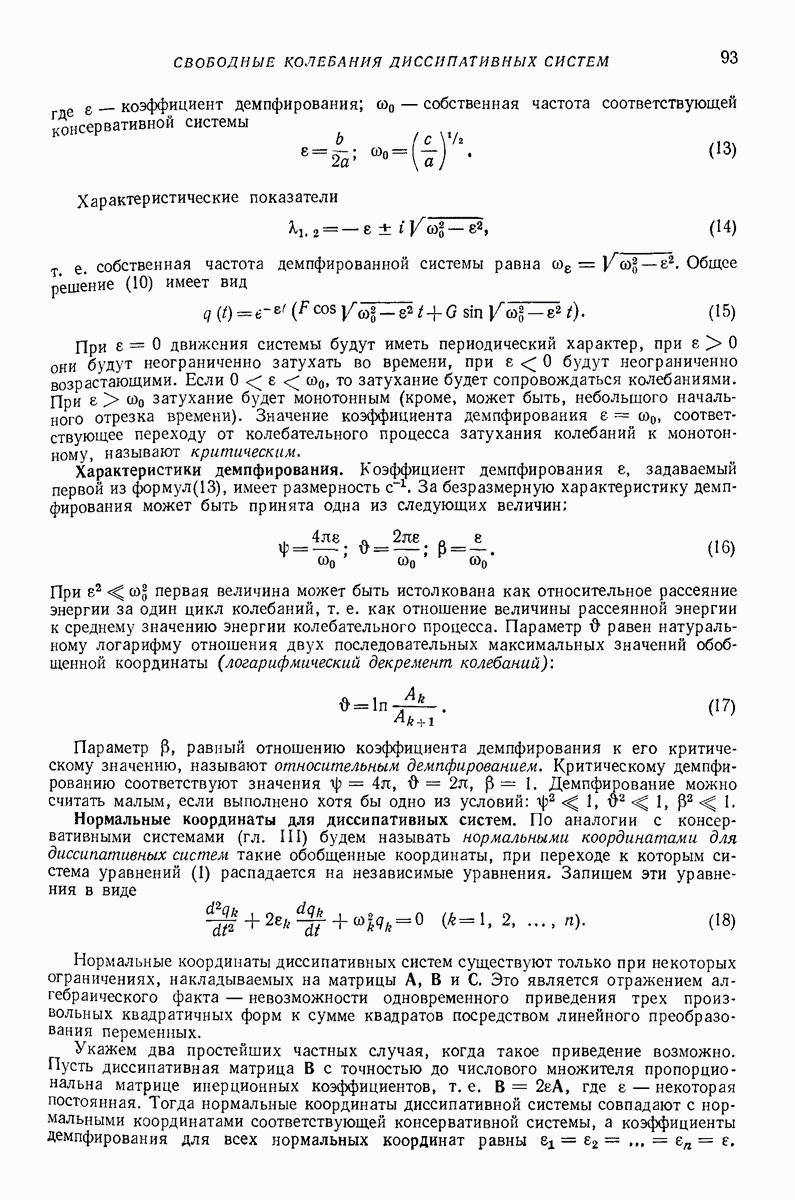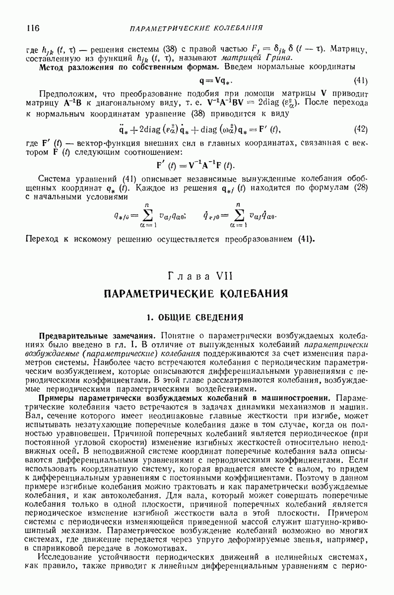 Таким образом, в первом приближении взаимодействие главных обобщенных координат не влияет на условия возбуждения основных резонансов. Формула (49) эквивалентна по точности формуле (39) для системы с одной степенью свободы. Одна формула переходит в другую, если разложить внешний радикал в (39) в] степенной ряд, удержать два члена и заменить обозначения. Расхождение в формулах (39) и (49) объясняется тем, что они получены различными приближенными методами. Формула для случая отсутствия диссипации вытекает из (49) при