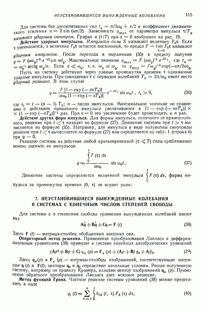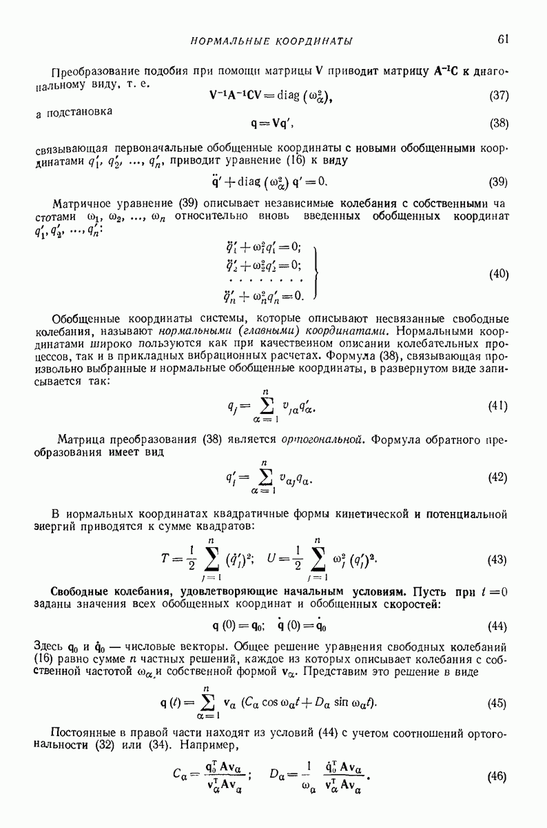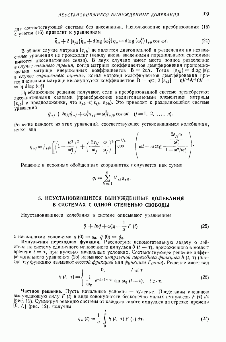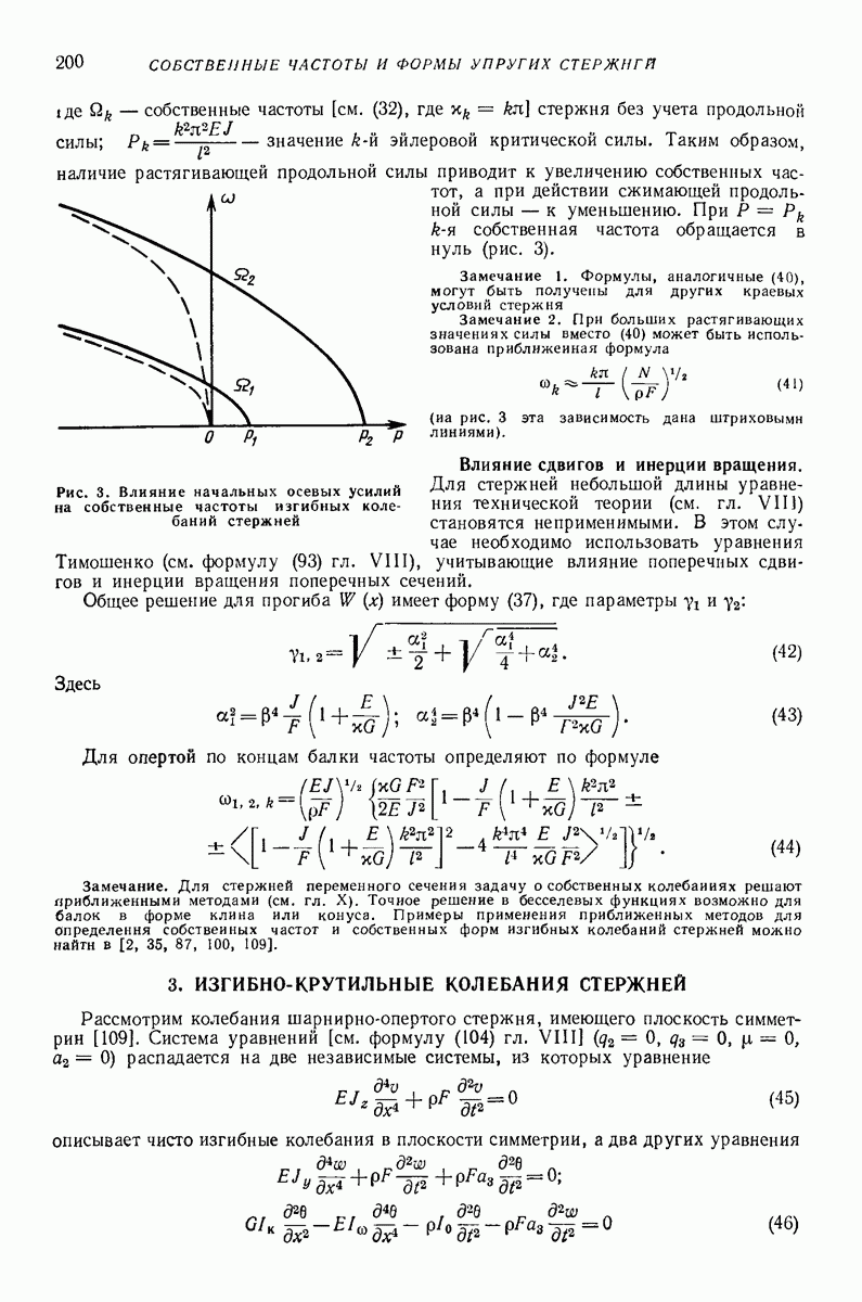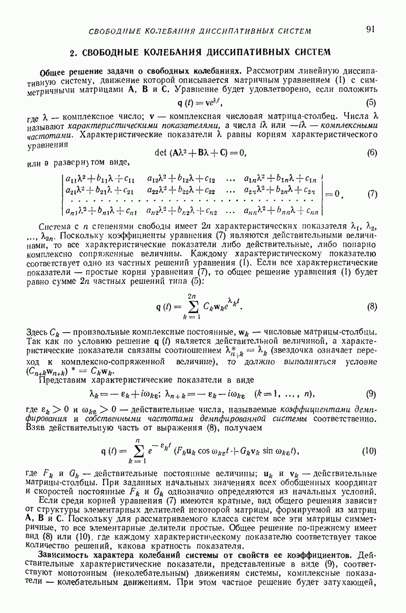 Таким образом, в первом приближении взаимодействие главных обобщенных координат не влияет на условия возбуждения основных резонансов. Формула (49) эквивалентна по точности формуле (39) для системы с одной степенью свободы. Одна формула переходит в другую, если разложить внешний радикал в (39) в] степенной ряд, удержать два члена и заменить обозначения. Расхождение в формулах (39) и (49) объясняется тем, что они получены различными приближенными методами. Формула для случая отсутствия диссипации вытекает из (49) при
