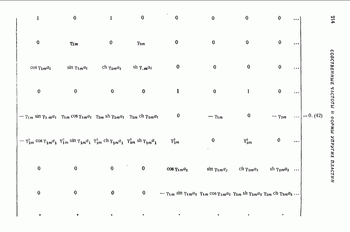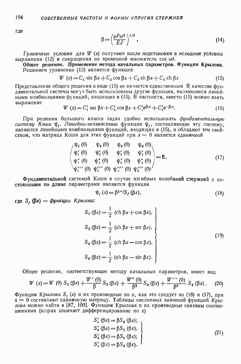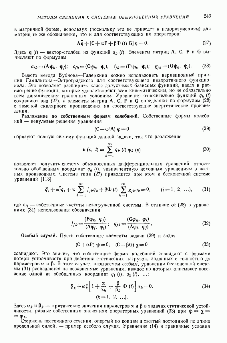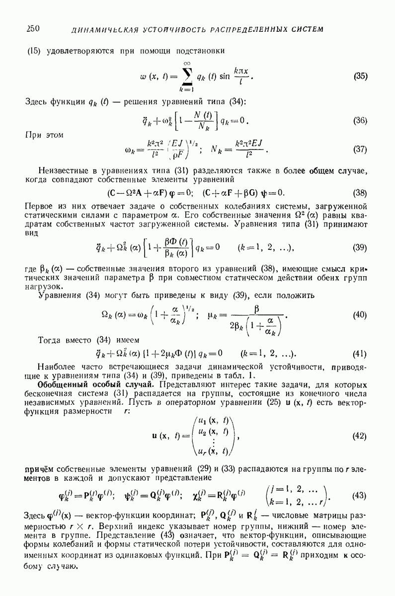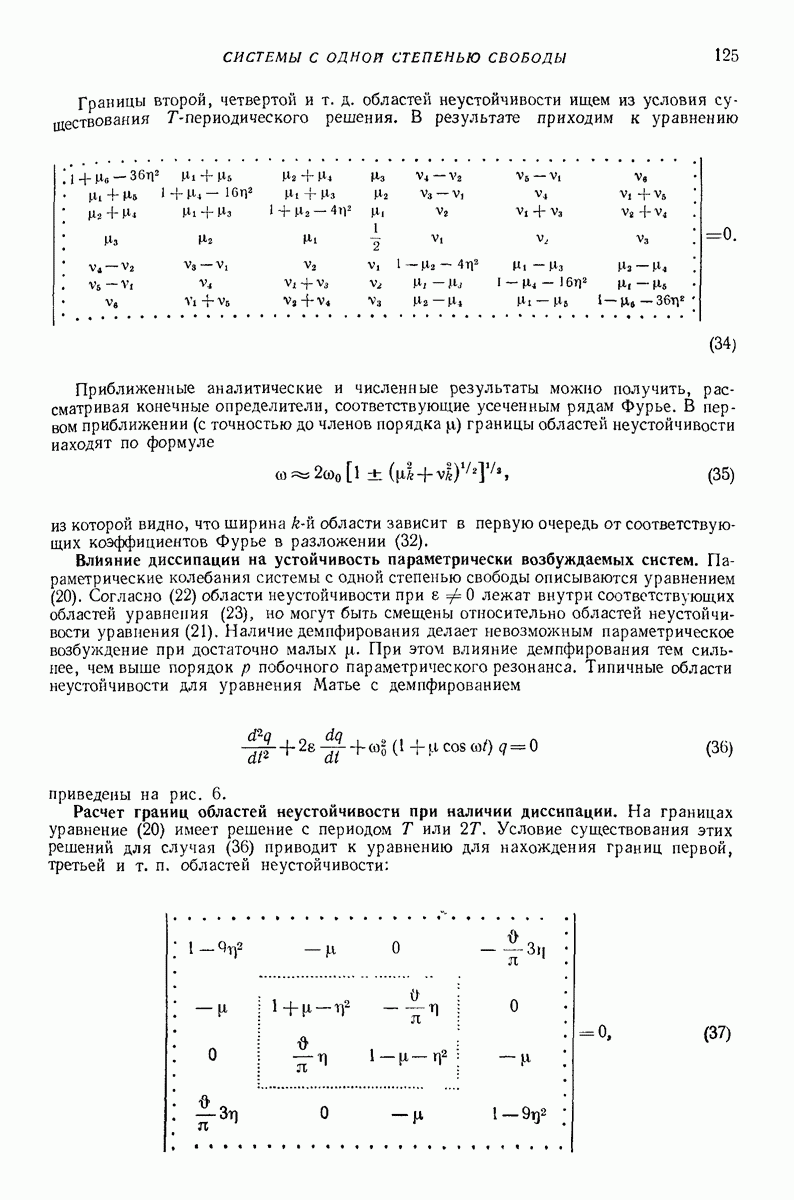 Метод обобщенных определителей Хилла. Метод малого параметра приводит к простым формулам первого приближения типа (49)-(53) для границ главных областей неустойчивости. Уточнение этих формул, а также расчет побочных резонансов требует построения высших приближений. Эти приближения громоздки и плохо алгоритмизируются для численной реализации. К тому же метод становится ненадежным, если глубина модуляции параметров и (или) коэффициенты диссипации В основе метода обобщенных определителей Хилла [9] лежит представление одного из решений общего уравнения (3) в форме (14). Пусть матрица-функция