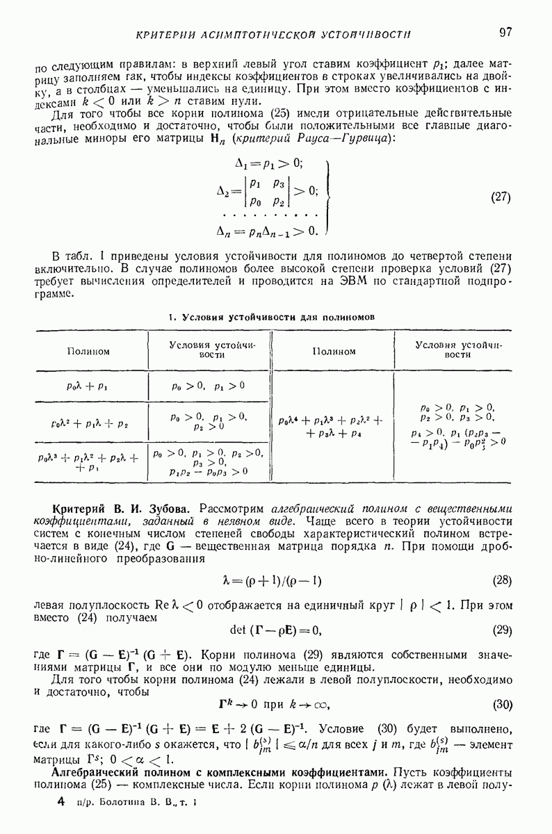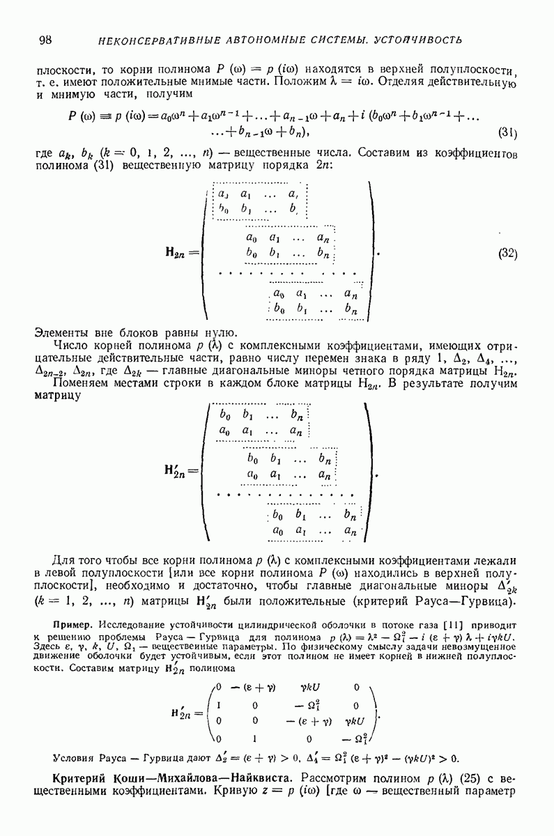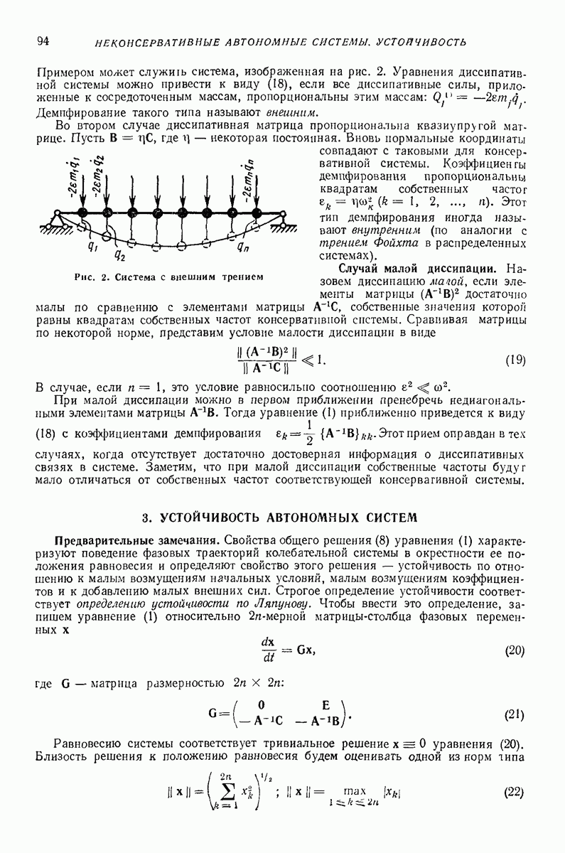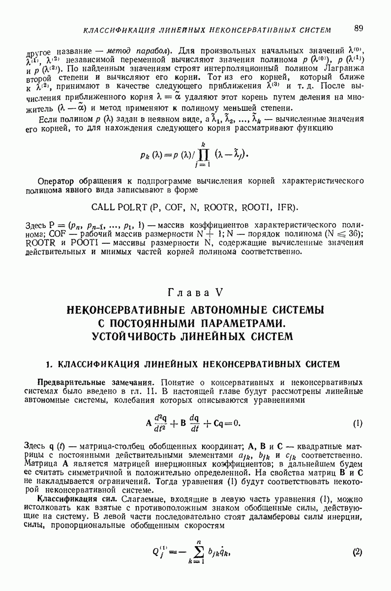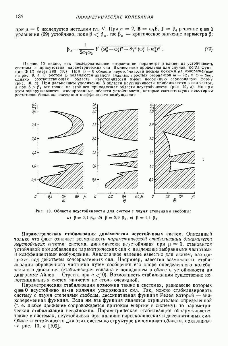 Тогда приближенные значения характеристических показателей могут быть найдены как корни алгебраического уравнения достаточно высокой степени, а исследование устойчивости решения Все вычисления в методе Хилла производят над матрицами блочной структуры, что упрощает алгоритмы и программы для вычислений на ЭВМ. Точность вычислений может быть оценена сопоставлением результатов, относящихся к двум или нескольким приближениям последовательно возрастающего порядка. В этом методе не используется ни малость глубины модуляции, ни малость демпфирования, ни близость системы к канонической. Необходимое для удержания число членов в рядах (54) и (55) зависит от области частот, в которой ищется решение. Для расчета области неустойчивости вблизи побочного резонанса порядка Алгоритм метода обобщенных определителей Хилла. Для системы с Метод матриц перехода. Весьма эффективный численный метод, приспособленный для ЭВМ [14], основан непосредственно на общей теории. Этот метод состоит в вычислении матрицы перехода (монодромии) проверка условий Этот метод входит как составная часть в критерий Зубова для систем с постоянными параметрами. Во втором случае приходится непосредственно вычислять корни уравнения Расчет на ЭВМ устойчивости систем с кусочно-постоянными коэффициентами. Эти системы рассматривают не только как самостоятельные модели, но и используют для аппроксимации весьма общего класса систем с кусочно-непрерывными коэффициентами. Матрица перехода выражается при этом через элементарные функции. Пусть в уравнении (3)