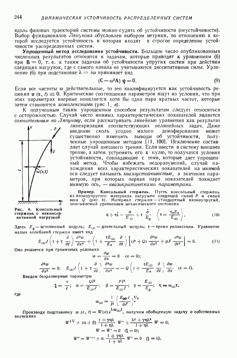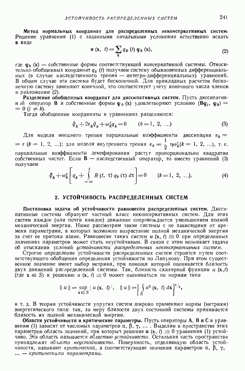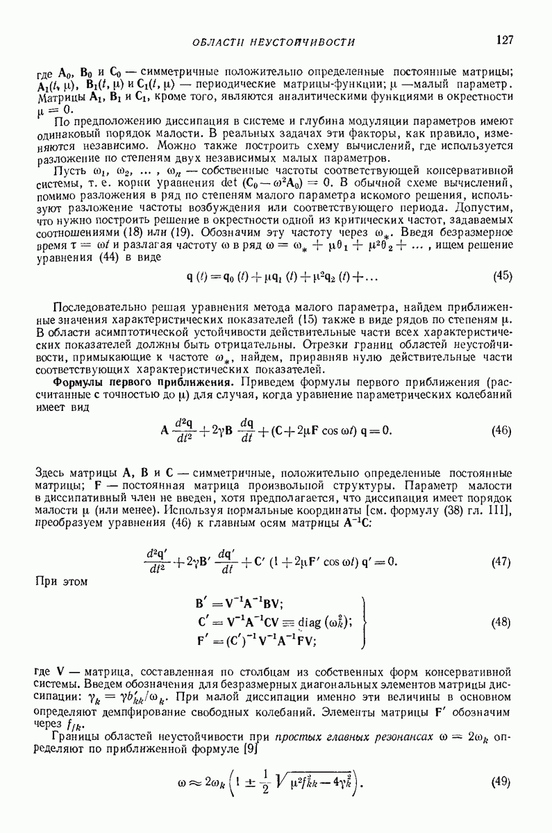 4. ОБЛАСТИ НЕУСТОЙЧИВОСТИ ДЛЯ СИСТЕМ С КОНЕЧНЫМ ЧИСЛОМ СТЕПЕНЕЙ СВОБОДЫОбщая схема метода малого параметра. Метод малого параметра позволяет получить достаточно простые приближенные соотношения для границ областей неустойчивости, если глубина модуляции параметров, а также диссипация в системе достаточно малы. В этом случае уравнение (1) может быть записано в виде