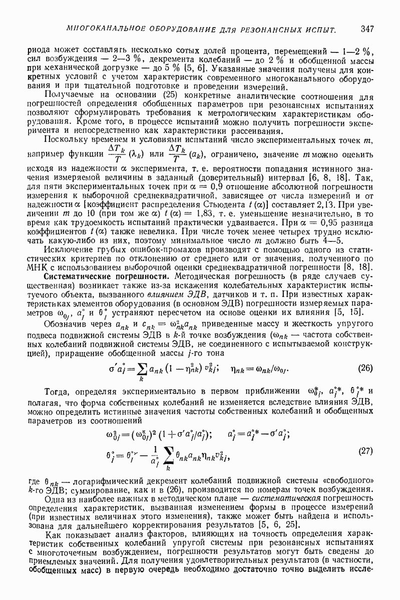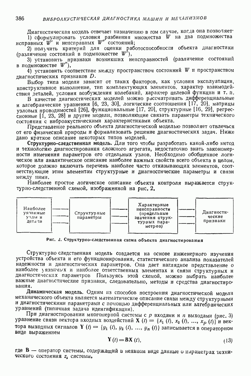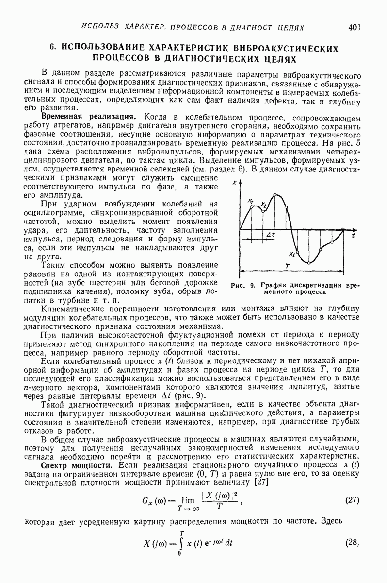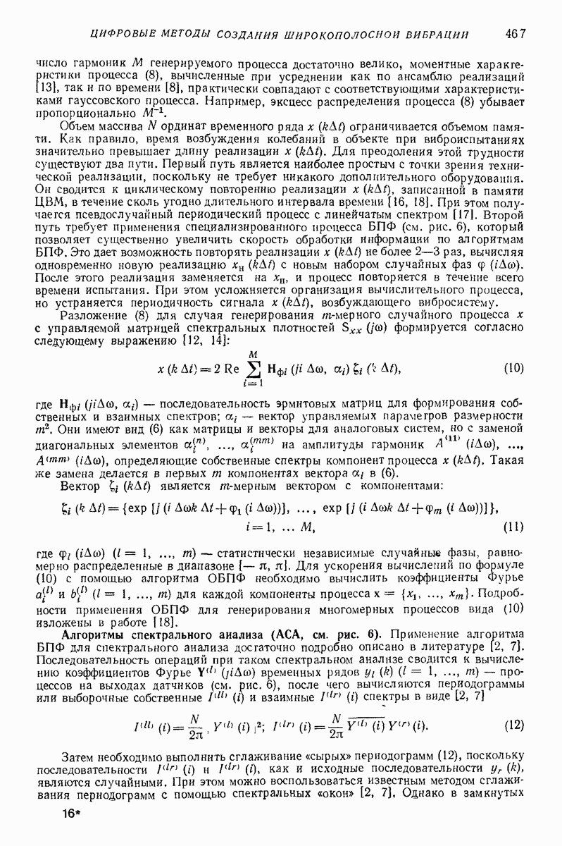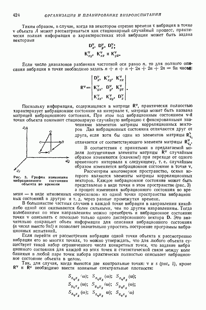 Рис. 3. График изменения вибрационного состояния объекта во времени В соответствии с принятыми в предлагаемой модели допущениями элементы матрицы В большинстве частных случаев в каждой точке вибрации в направлении какой-либо одной оси оказываются более сильными, чем по другим направлениям. Тогда колебаниями по этим направлениям можно пренебречь и вибрационное состояние точки Если перейти от рассмотрения вибрации одной точки объекта к рассмотрению вибрации его во многих точках, то можно утверждать, что для любого объекта существует такой набор ограниченного числа конкретных точек, что задание вибра ционного состояния для каждой из этих точек и статистической связи между коле баниямн в любой паре точек набора практически полностью описывает вибрационное состояние объекта в целом. Так, для случая, когда имеются две контрольные точки: