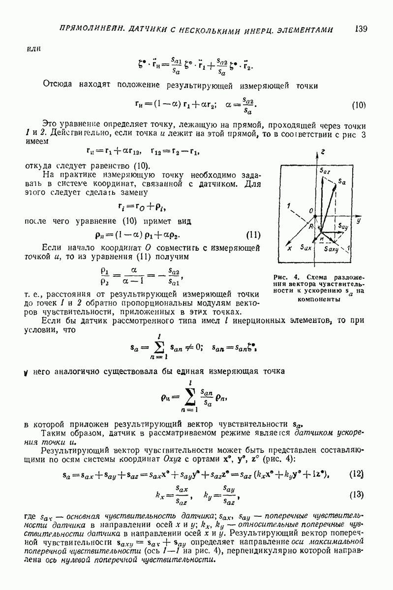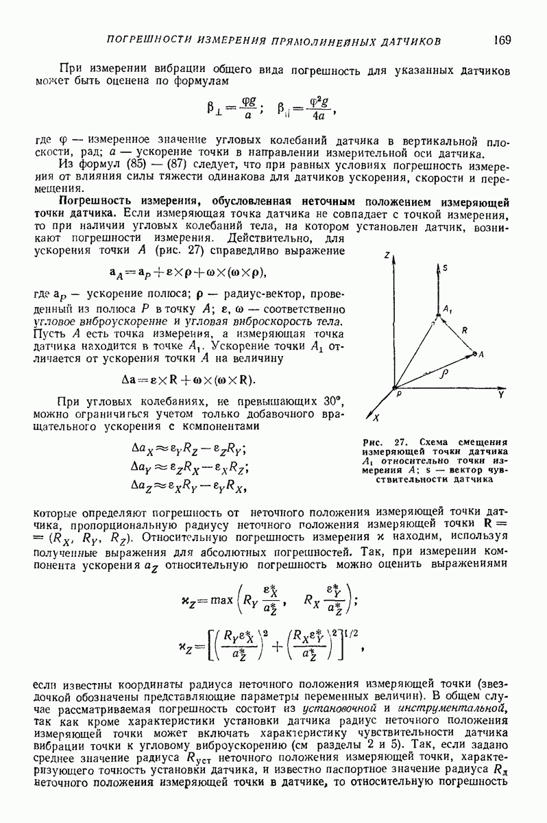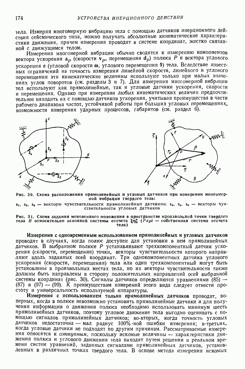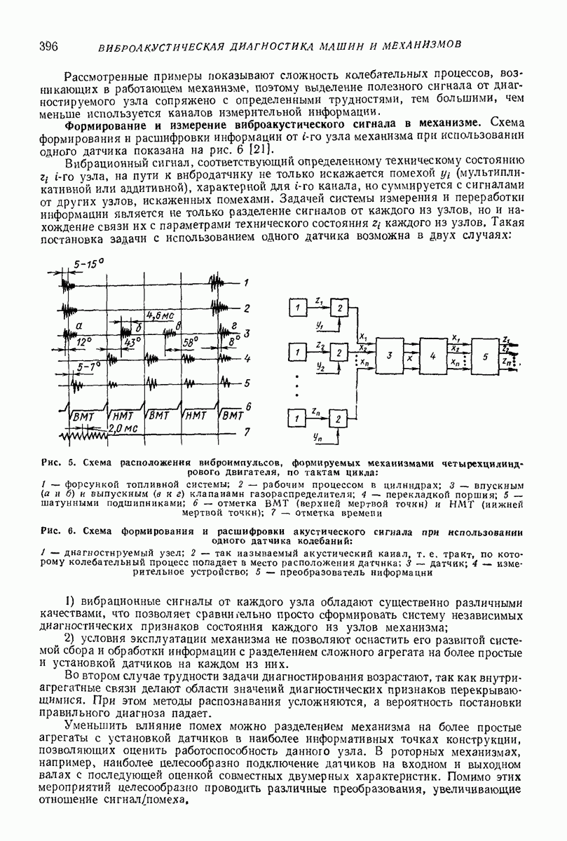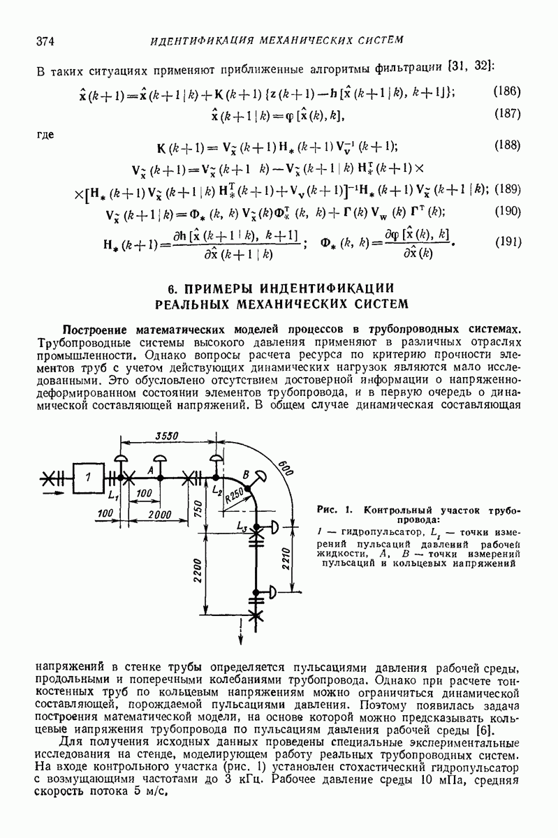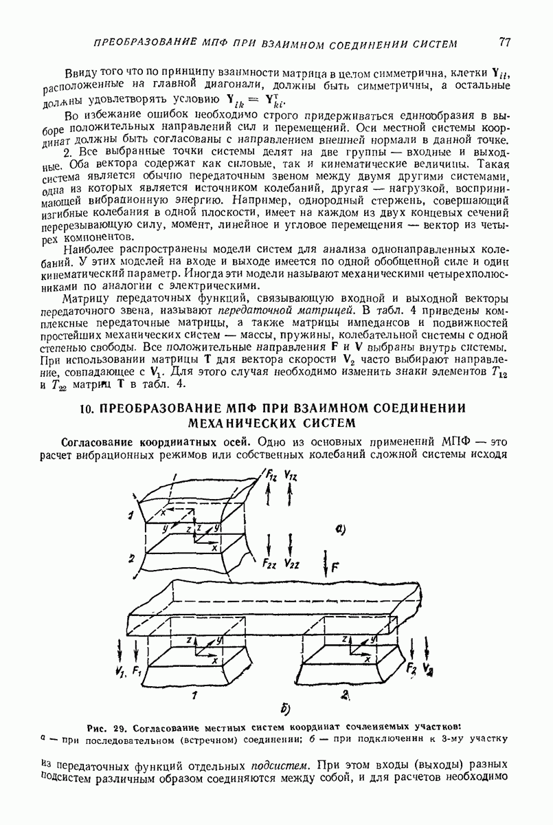 Рис. 3. График изменения вибрационного состояния объекта во времени В соответствии с принятыми в предлагаемой модели допущениями элементы матрицы В большинстве частных случаев в каждой точке вибрации в направлении какой-либо одной оси оказываются более сильными, чем по другим направлениям. Тогда колебаниями по этим направлениям можно пренебречь и вибрационное состояние точки Если перейти от рассмотрения вибрации одной точки объекта к рассмотрению вибрации его во многих точках, то можно утверждать, что для любого объекта существует такой набор ограниченного числа конкретных точек, что задание вибра ционного состояния для каждой из этих точек и статистической связи между коле баниямн в любой паре точек набора практически полностью описывает вибрационное состояние объекта в целом. Так, для случая, когда имеются две контрольные точки: