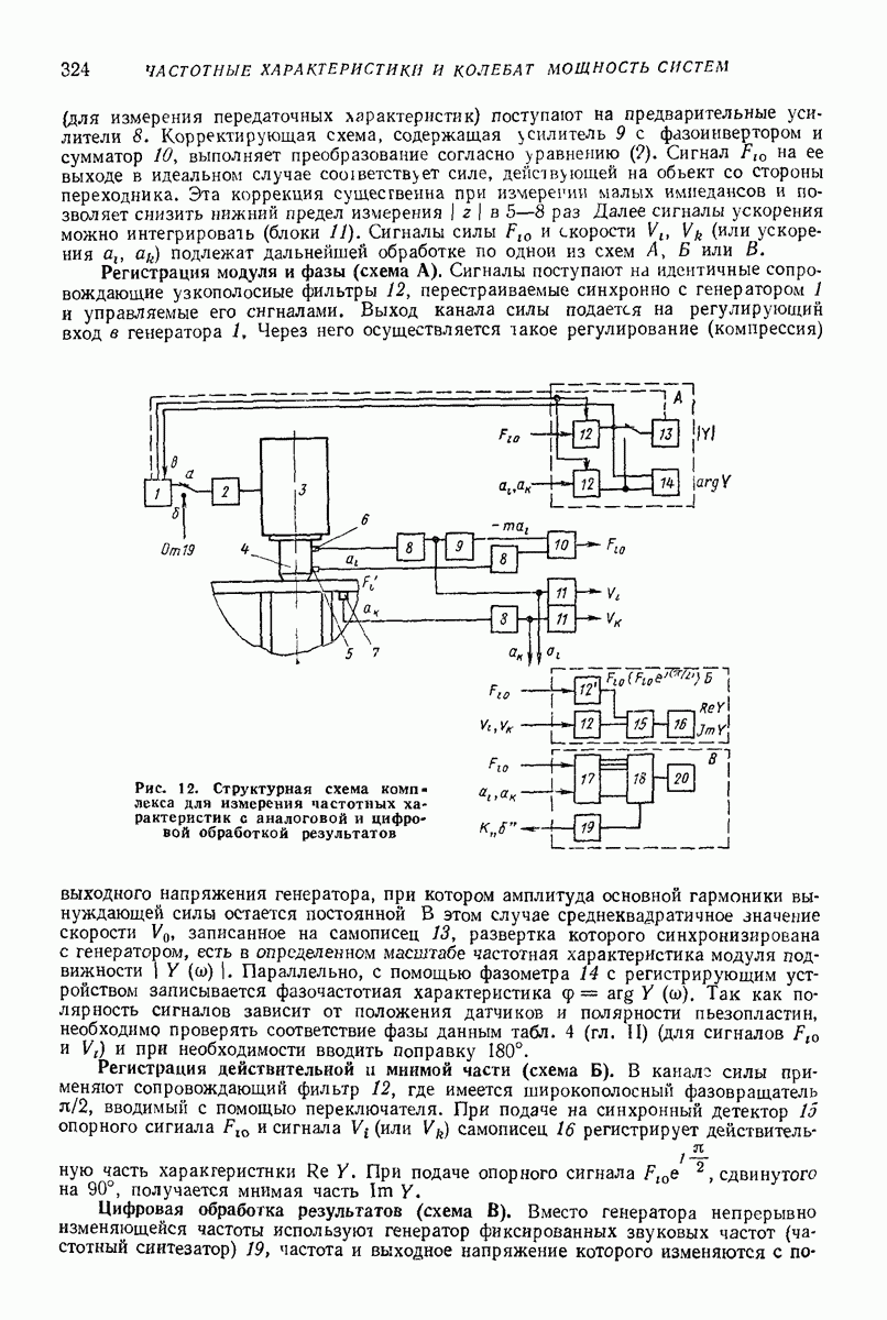 Рис. 1. Схема вибрационного состояния объекта Пусть имеется объект А (рис. 1) В результате действия на него сил В наиболее общем случае колебания каждой точки — нестационарный случайный процесс. Однако на основании только этого утверждения прак тически невозможно построить модель. Необходимо ввести некоторые упрощающие допущения В качестве одного из таких допущений примем, что на достаточно малом интервале времени Вторым допущением является предположение о том, что если процесс, характеризующий колебания точки объекта разбить на короткие одинаковые интервалы времени утверждение справедливо, поскольку в реальных условиях режим не изменяется скачкообразно. Таким образом, модель вибрации объекта — последовательность «отрезков» стационарных случайных процессов равной продолжительности. Последнее допущение — предположение о том, что характеристики стационарного процесса на каждом участке случайны и независимы для любых двух участков, в том числе и соседних в статистическом смысле. Известно, что скалярный стационарный случайный процесс практически исчерпывающим образом может быть описан его спектральной плотностью