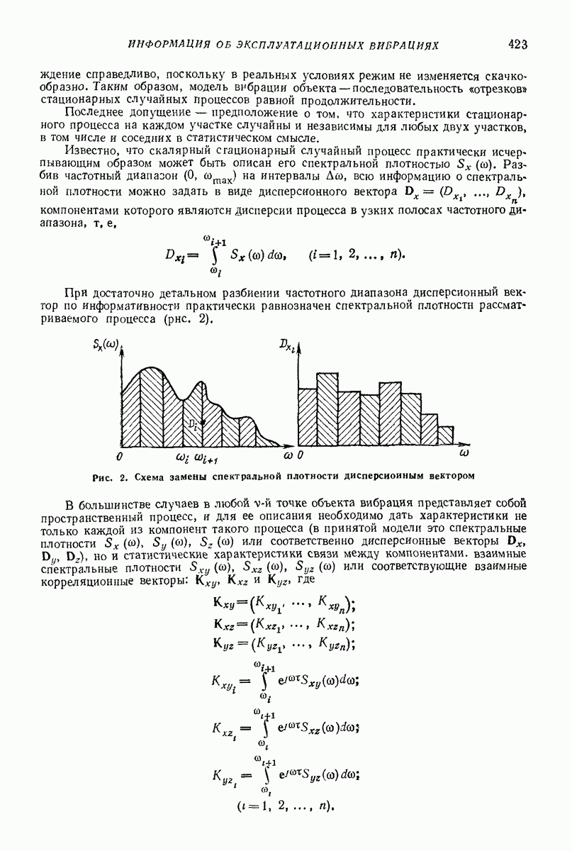 При достаточно детальном разбиении частотного диапазона дисперсионный вектор по информативности практически равнозначен спектральной плотности рассматриваемого процесса (рис. 2).