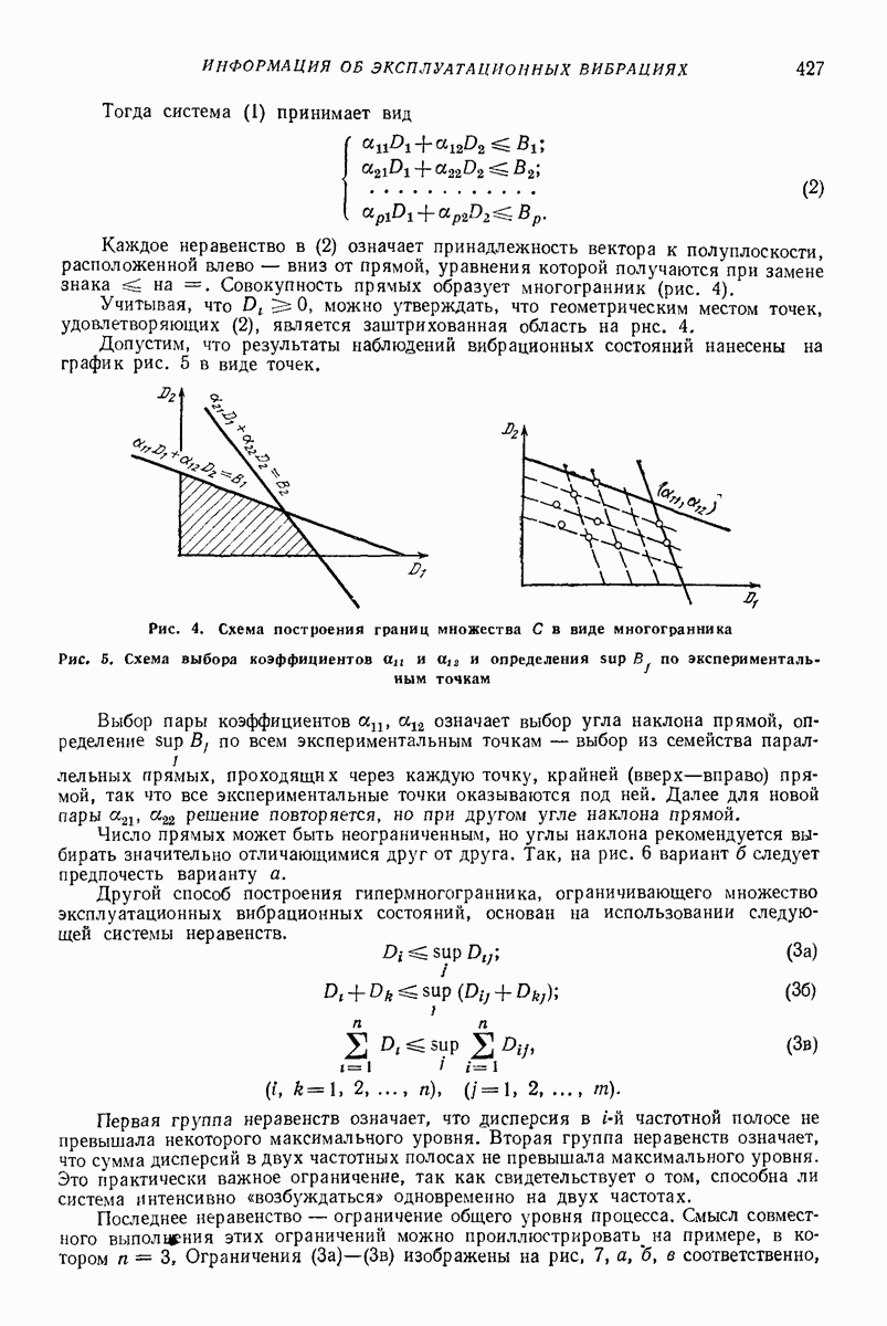 Каждое неравенство в (2) означает принадлежность вектора к полуплоскости, расположенной влево — вниз от прямой, уравнения которой получаются при замене знака Учитывая, что Допустим, что результаты наблюдений вибрационных состояний нанесены на график рис. 5 в виде точек.