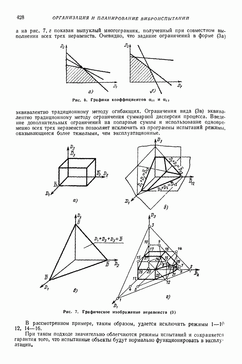 Первая группа неравенств означает, что дисперсия в Последнее неравенство — ограничение общего уровня процесса. Смысл совместного выполнения этих ограничений можно проиллюстрировать на примере, в котором а на рис. 7, г показан выпуклый многогранник, полученный при совместном выполнении всех трех неравенств. Очевидно, что задание ограничений в форме (За) эквивалентно традиционному методу огибающих.