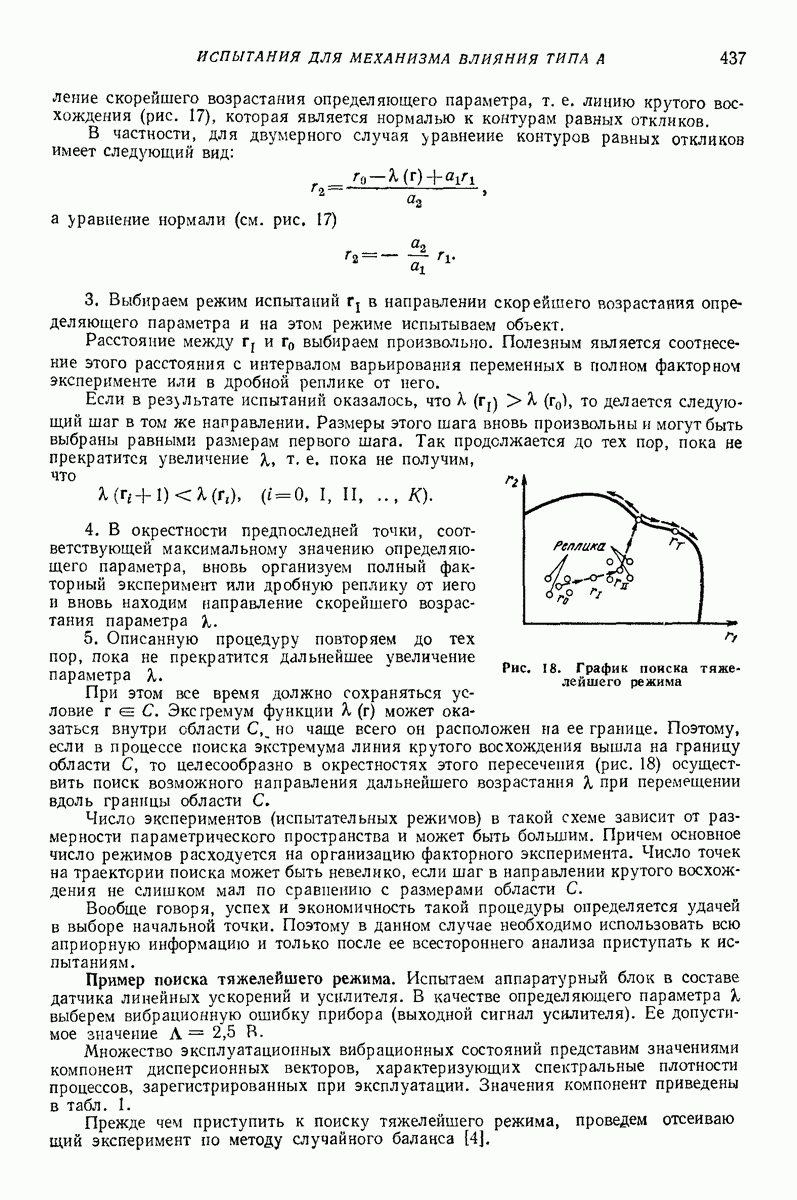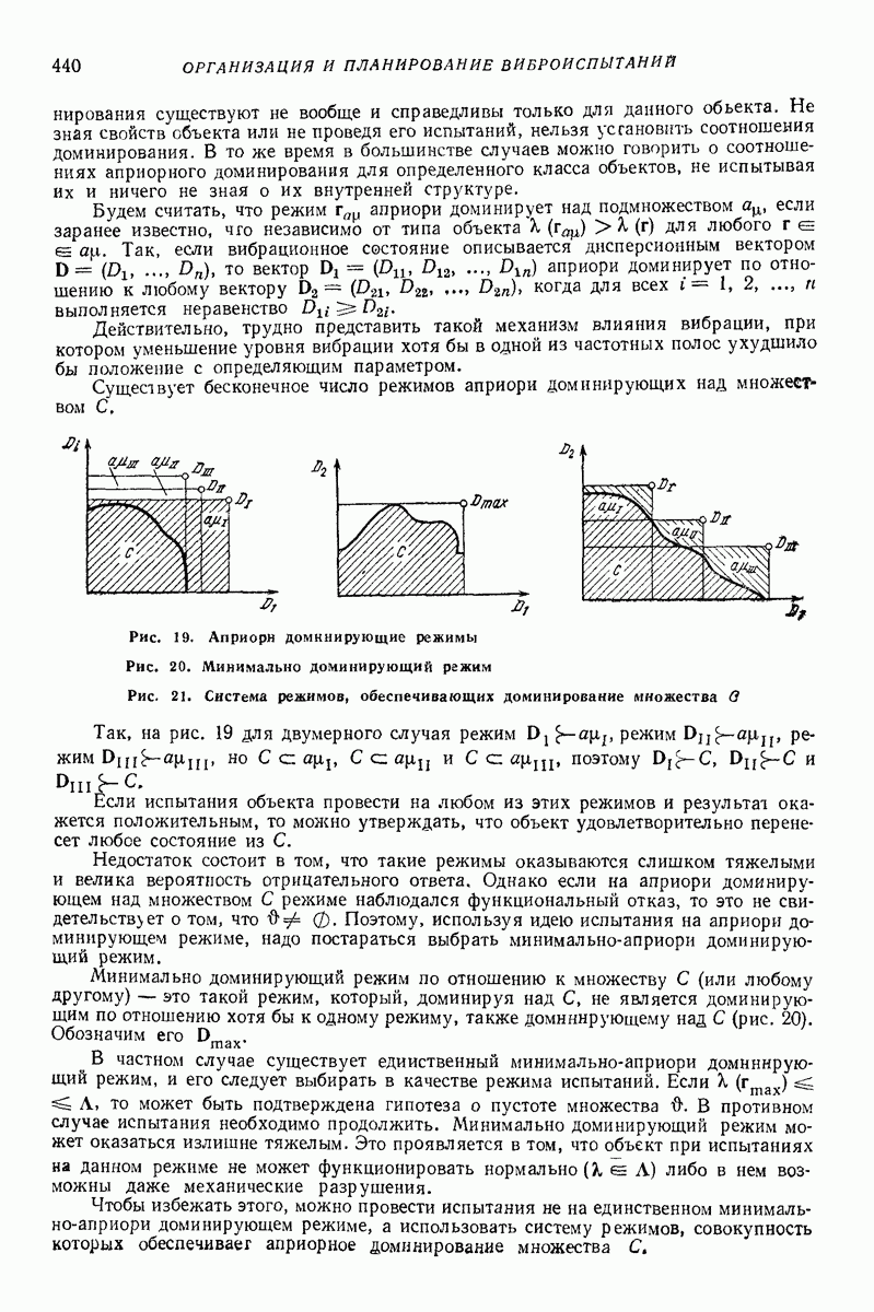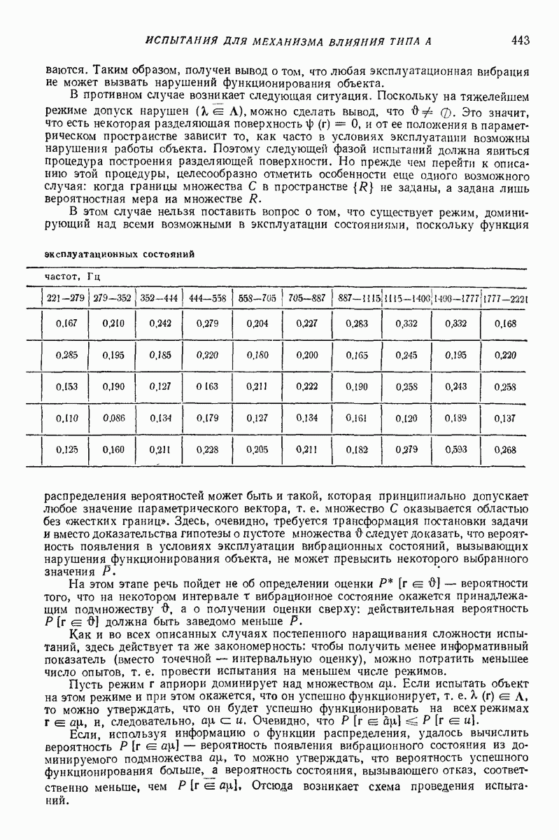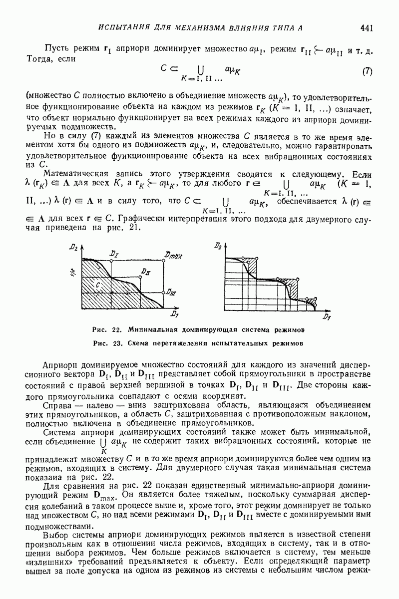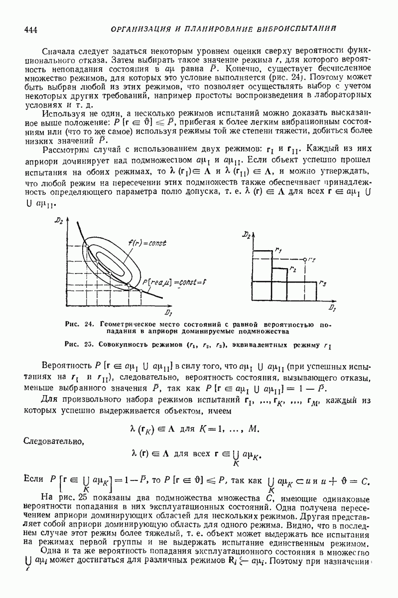 Рис. 6. Графики коэффициентов Ограничения вида Рис. 7. (см. скан) Графическое изображение неравенств (3) В рассмотренном примере, таким образом, удается исключить режимы 1—10 12, 14—16. При таком подходе значительно облегчаются режимы испытаний и сохраняется гарантия того, что испытанные объекты будут нормально функционировать в эксплуатации, Во всех случаях, когда это удобно, границы множества С могут быть построены в любой другой форме, однако изложенные подходы обладают рядом удобств связанных с последующими операциями по выбору режимов испытаний. Все описанные способы построения границ множества С основаны на идее построения такой поверхности в параметрическом пространстве, которая, с одной стороны, ограничивает всю область наблюдавшихся состояний, с другой стороны позволяет утверждать, что в условиях эксплуатации не встретятся состояния, выходящие за пределы области, ограничиваемой этой поверхностью (рис. 8). Очевидно, что такой подход справедлив при наличии бесконечно большого числа наблюдений вибрационных состояний при эксплуатация. Практически число наблюдений всегда конечно. Поэтому границы всех возможных при эксплуатации вибрационных состояний можно построить лишь в том случае, когда параметры предельных состояний могут быть заключены в рамки некоторых физических ограничений.