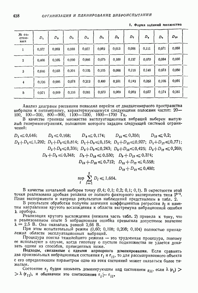 Один из практических приемов построения подобной системы неравенств состоит в следующем. Пусть имеются результаты наблюдений вибрационных состояний в эксплуатации, представленные в виде ряда