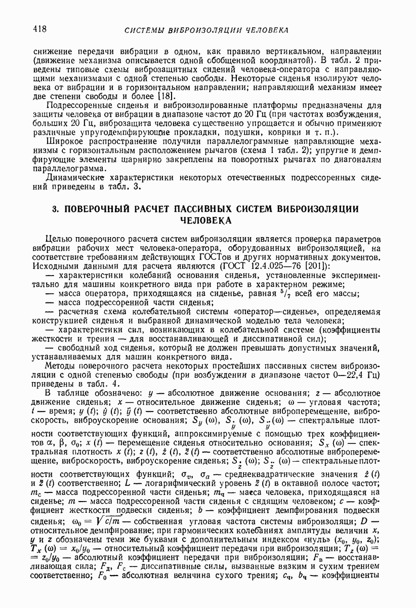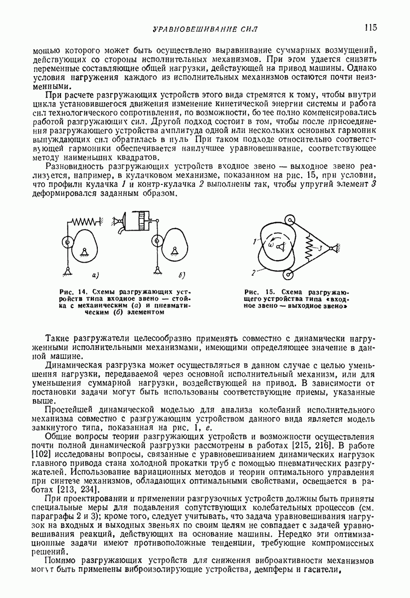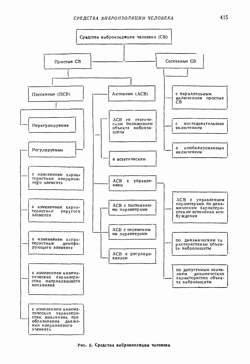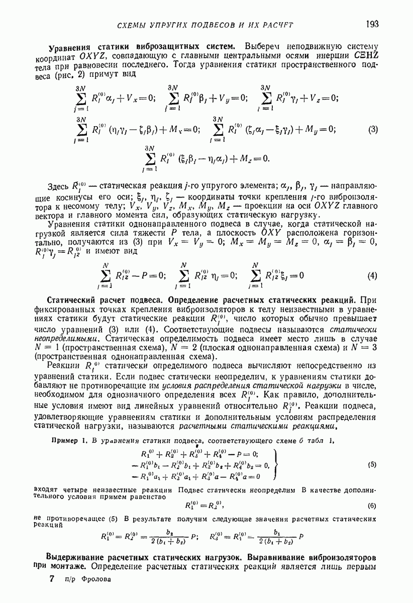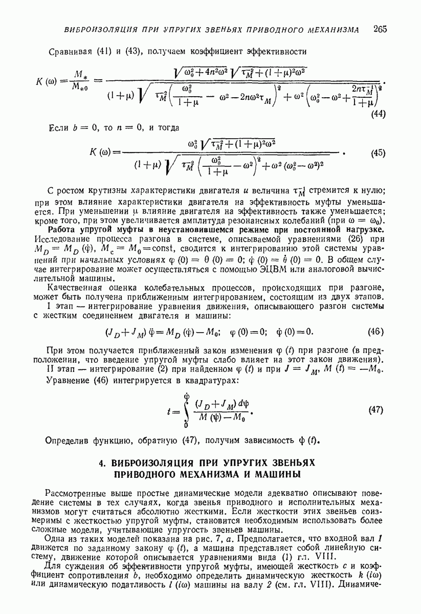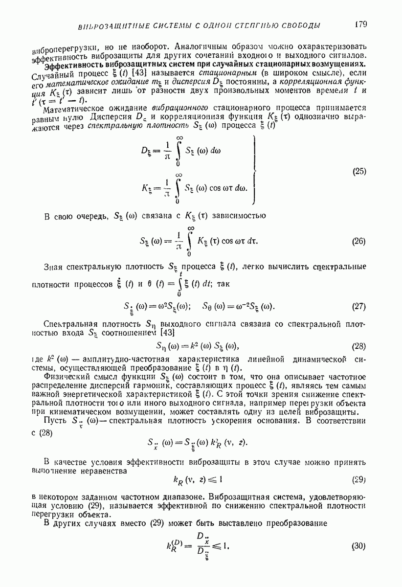 Рис. 13. Схема виброизоляции б) изменением конструкции объекта, при котором заданные механические воздействия будут вызывать менее интенсивные колебания объекта или отдельных его частей; этот метод называется внутренней виброзащитой объекта; в) присоединением к объекту дополнительной механической системы (рис. 12), изменяющей характер его колебаний. Такая система называется динамическим гасителем колебаний, а метод виброзащиты, основанный на ее применении, — динамическим гашением колебаний; г) установкой между объектом и источником дополнительной системы (рис, 13), защищающей объект от механических воздействий, возбуждаемых источником; этот метод виброзащиты называется виброизоляцией, а устройства, устанавливаемые между источником и объектом, — виброизоляторами (термин амортизатор не рекомендуется к применению). Рассмотрим каждый из перечисленных методов. Снижение виброактивности источника. Возбуждение колебаний источниками может быть обусловлено различными причинами. Удобно разделить возмущающие факторы на две группы, К первой можно отнести различные физико-химические процессы, происходящие в источнике: процессы горения в реактивных двигателях и двигателях внутреннего сгорания, процессы взаимодействия жидкости или газа с лопатками турбин (сопровождающиеся такими побочными явлениями, как кавитация), пульсацию жидкости или газа в трубопроводах, электромагнитные явления в двигателях и генераторах, разнообразные технологические процессы (например, процесс резания металлов на металлорежущих стайках, процессы обработки материала в горнообогатительном оборудовании и т. п.). К этой группе относятся и явления, связанные с трением в кинематических парах, которое также служит источником возникновения колебаний. Снижение виброактивности факторов этой группы связано с изменением параметров физико-химических процессов и может быгь достигнуто способами, специфическими для каждого частного случая. Эти способы изложены в т. 3 и 4 справочника при рассмотрении колебаний машин и агрегатов различных классов. Вторая группа возмущающих факторов связана с движущимися телами. Движение тел внутри источника (вращение роторов, перемещение звельев механизмов) сопровождается возникновением динамических реакций связей, соединяющих источник с другими телами, в частности с объектом. Снижение виброактивности источника в этом случае заключается в уменьшении динамических реакций с помощью так называемого уравновешивания движущихся тел. Методы уравновешивания являются, таким образом, способами снижения виброактивности, общими для всех источников, содержащих движущиеся тела Эти методы будут рассмотрены в первой части. При решении задач уравновешивания приходится учитывать динамические свойства источников, и в первую очередь нежесткость их элементов. Изменение конструкции объекта. Проблему уменьшения колебаний объекта путем изменения его конструкции необходимо рассматривать в каждом случае особо, с учетом особенностей объекта и конструктивных возможностей его изменения. Однако можно указать два способа снижения колебаний, общих для всех механических систем. Первый способ состоит в устранении резонансных явлений. Если объект обладает линейными свойствами, то задача сводится к соответствующему изменению его собстве