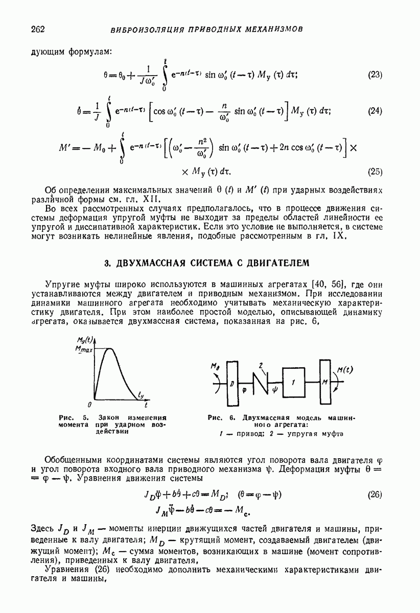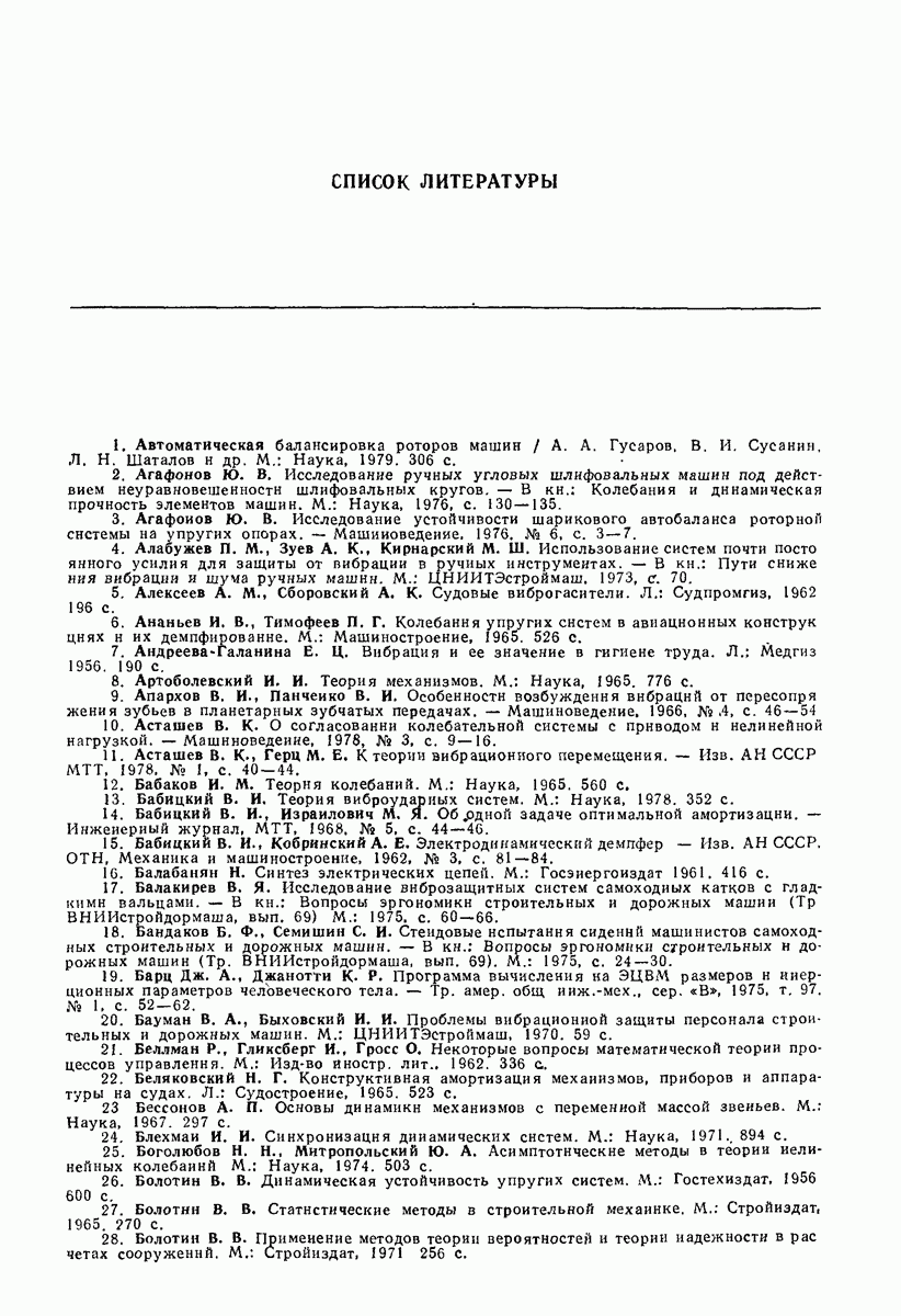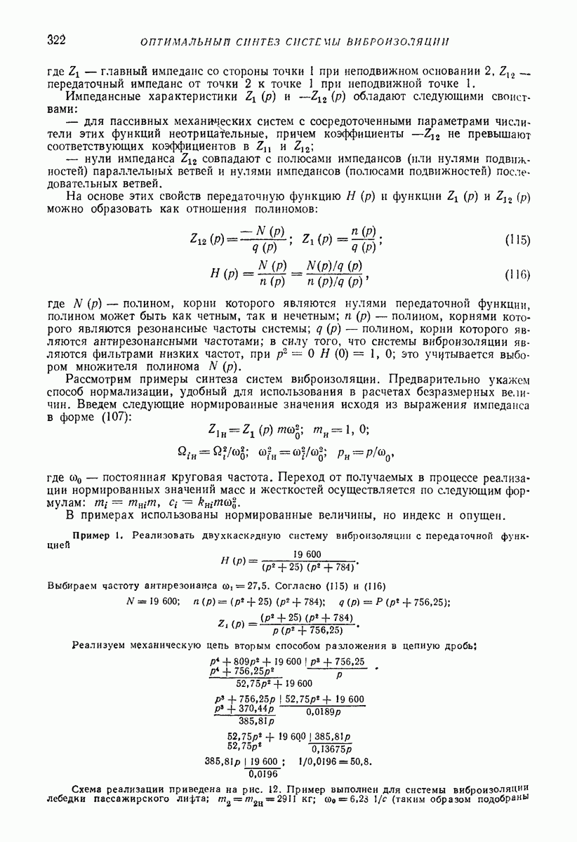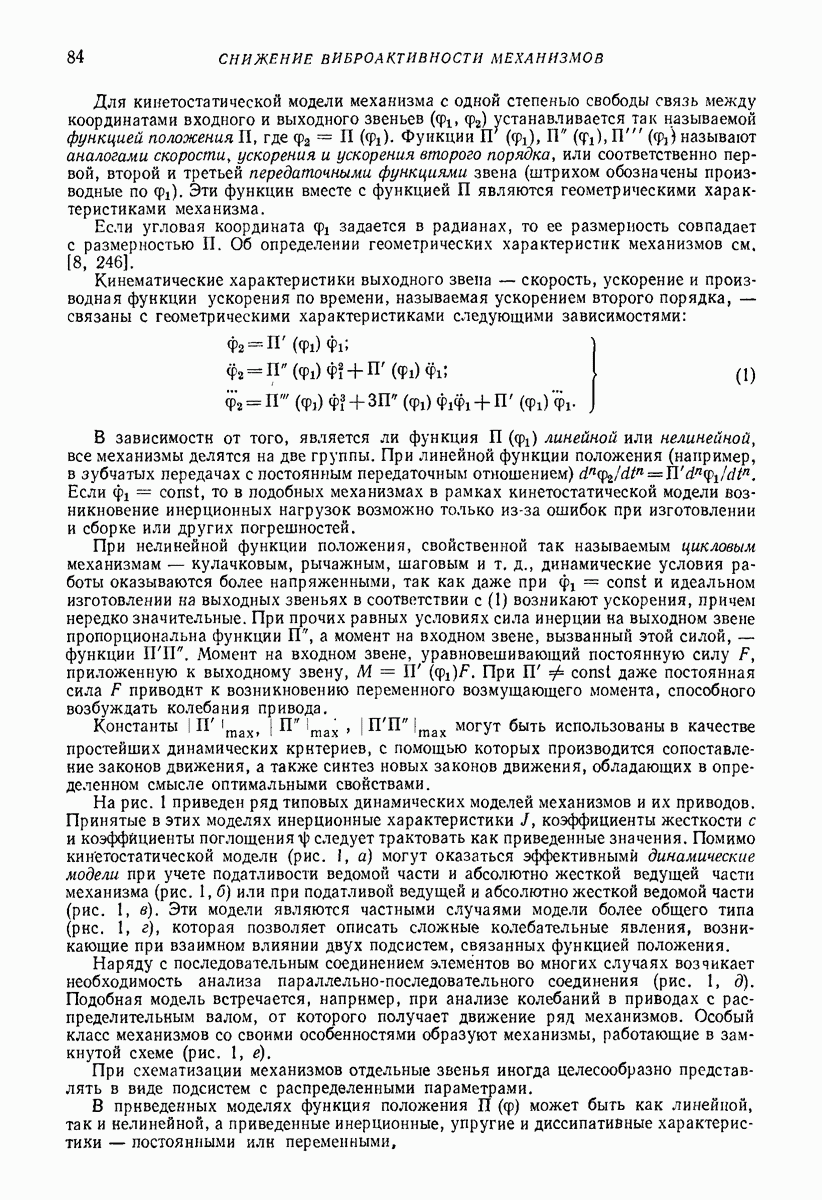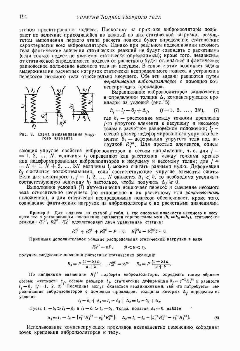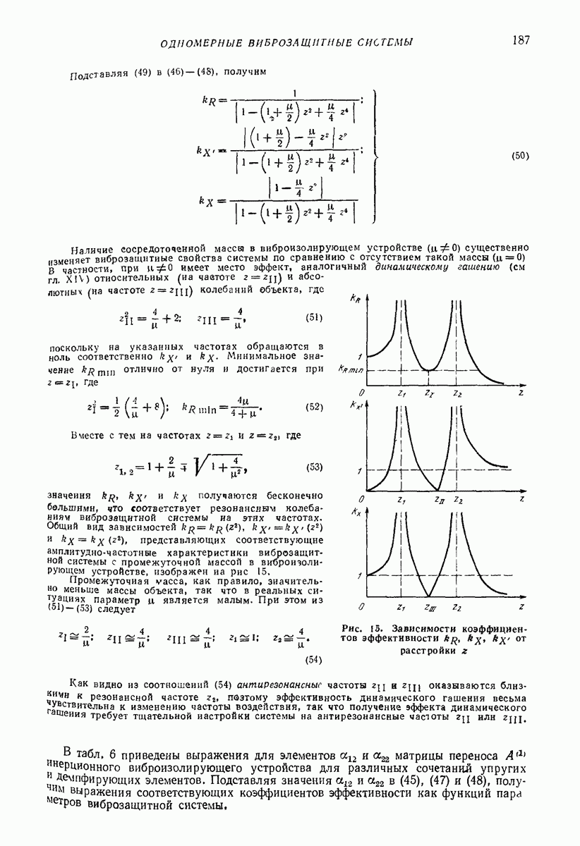 Рис. 13. Схема виброизоляции б) изменением конструкции объекта, при котором заданные механические воздействия будут вызывать менее интенсивные колебания объекта или отдельных его частей; этот метод называется внутренней виброзащитой объекта; в) присоединением к объекту дополнительной механической системы (рис. 12), изменяющей характер его колебаний. Такая система называется динамическим гасителем колебаний, а метод виброзащиты, основанный на ее применении, — динамическим гашением колебаний; г) установкой между объектом и источником дополнительной системы (рис, 13), защищающей объект от механических воздействий, возбуждаемых источником; этот метод виброзащиты называется виброизоляцией, а устройства, устанавливаемые между источником и объектом, — виброизоляторами (термин амортизатор не рекомендуется к применению). Рассмотрим каждый из перечисленных методов. Снижение виброактивности источника. Возбуждение колебаний источниками может быть обусловлено различными причинами. Удобно разделить возмущающие факторы на две группы, К первой можно отнести различные физико-химические процессы, происходящие в источнике: процессы горения в реактивных двигателях и двигателях внутреннего сгорания, процессы взаимодействия жидкости или газа с лопатками турбин (сопровождающиеся такими побочными явлениями, как кавитация), пульсацию жидкости или газа в трубопроводах, электромагнитные явления в двигателях и генераторах, разнообразные технологические процессы (например, процесс резания металлов на металлорежущих стайках, процессы обработки материала в горнообогатительном оборудовании и т. п.). К этой группе относятся и явления, связанные с трением в кинематических парах, которое также служит источником возникновения колебаний. Снижение виброактивности факторов этой группы связано с изменением параметров физико-химических процессов и может быгь достигнуто способами, специфическими для каждого частного случая. Эти способы изложены в т. 3 и 4 справочника при рассмотрении колебаний машин и агрегатов различных классов. Вторая группа возмущающих факторов связана с движущимися телами. Движение тел внутри источника (вращение роторов, перемещение звельев механизмов) сопровождается возникновением динамических реакций связей, соединяющих источник с другими телами, в частности с объектом. Снижение виброактивности источника в этом случае заключается в уменьшении динамических реакций с помощью так называемого уравновешивания движущихся тел. Методы уравновешивания являются, таким образом, способами снижения виброактивности, общими для всех источников, содержащих движущиеся тела Эти методы будут рассмотрены в первой части. При решении задач уравновешивания приходится учитывать динамические свойства источников, и в первую очередь нежесткость их элементов. Изменение конструкции объекта. Проблему уменьшения колебаний объекта путем изменения его конструкции необходимо рассматривать в каждом случае особо, с учетом особенностей объекта и конструктивных возможностей его изменения. Однако можно указать два способа снижения колебаний, общих для всех механических систем. Первый способ состоит в устранении резонансных явлений. Если объект обладает линейными свойствами, то задача сводится к соответствующему изменению его собстве