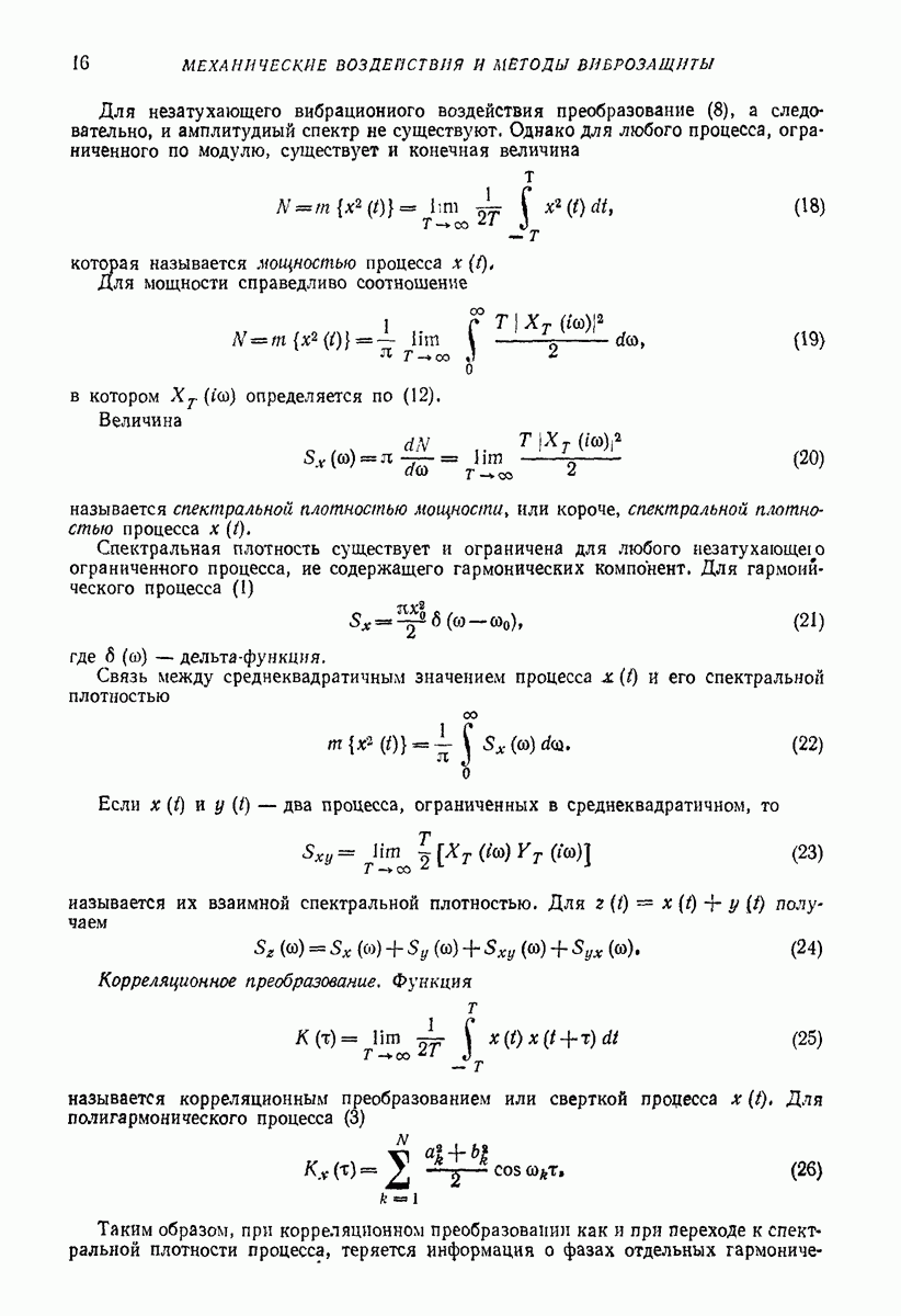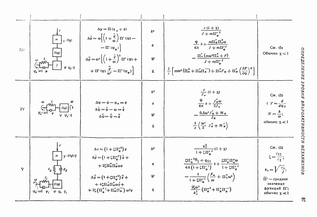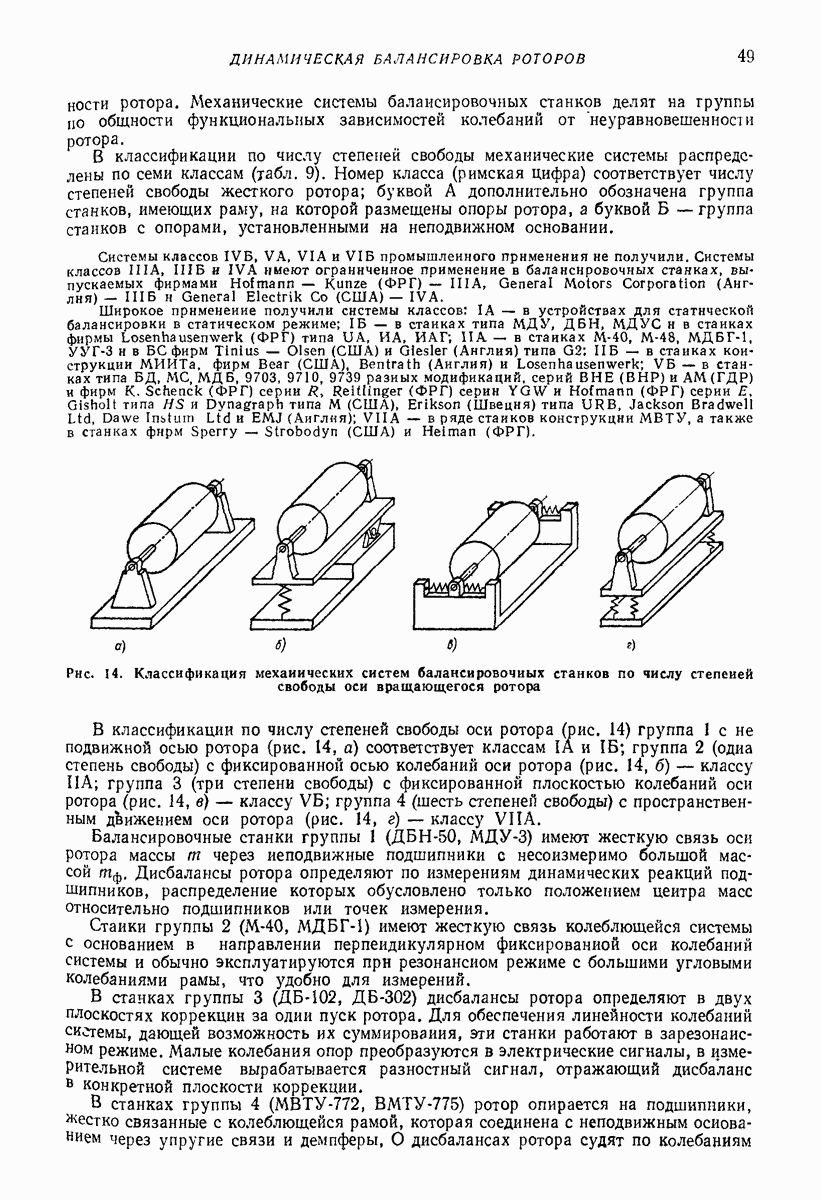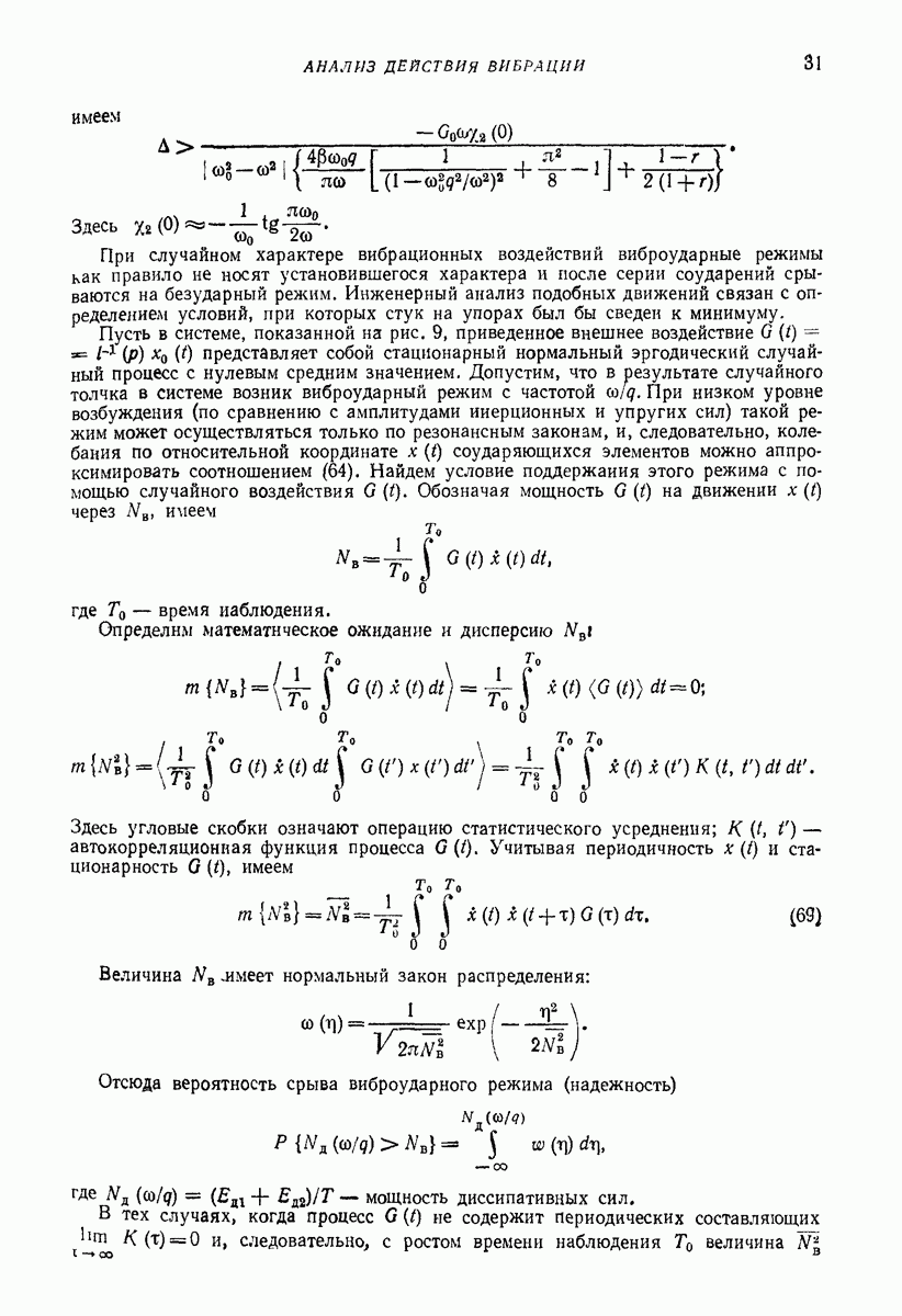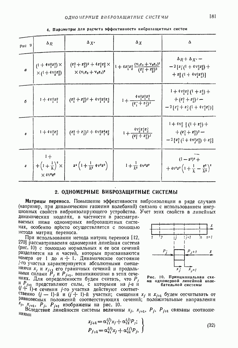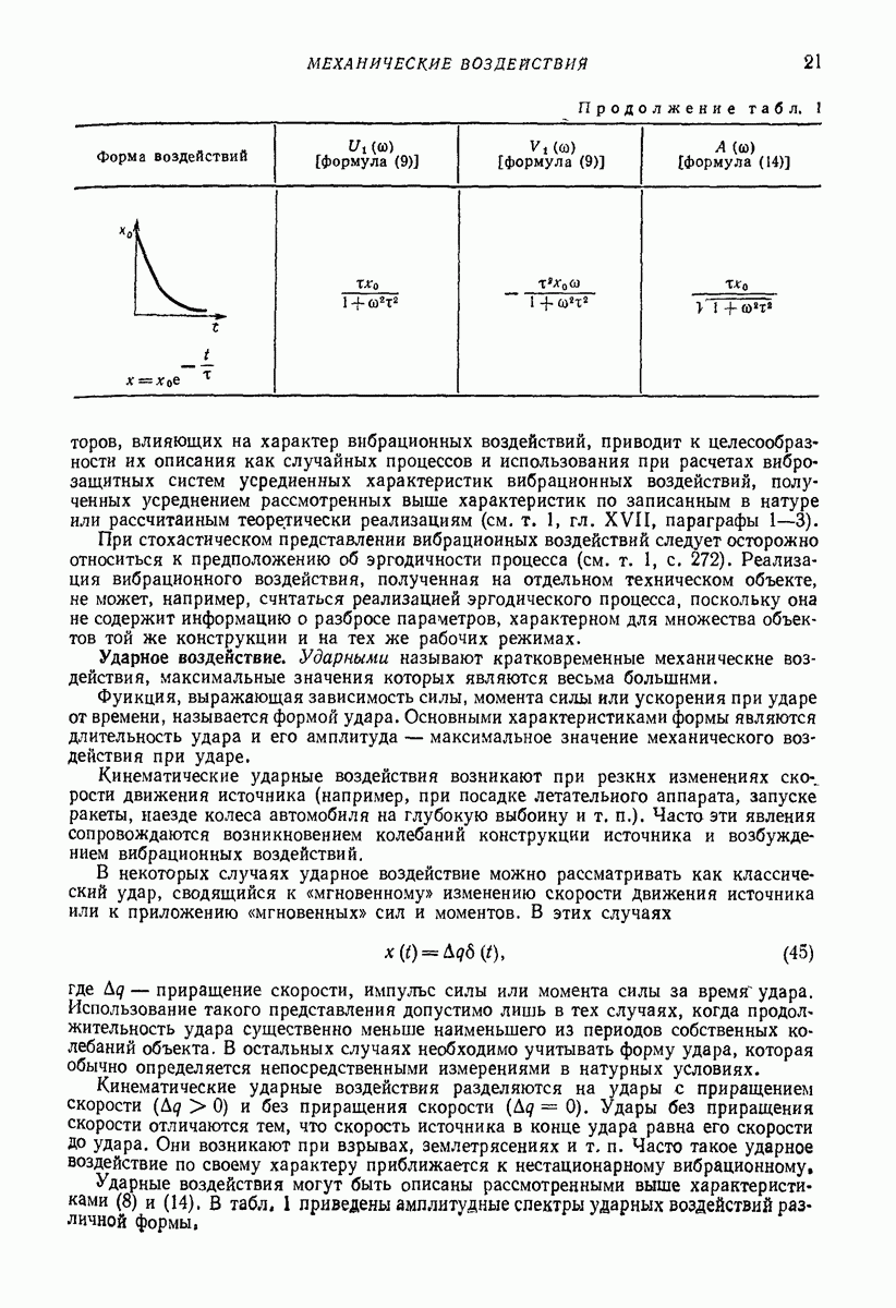 Рис. 13. Схема виброизоляции б) изменением конструкции объекта, при котором заданные механические воздействия будут вызывать менее интенсивные колебания объекта или отдельных его частей; этот метод называется внутренней виброзащитой объекта; в) присоединением к объекту дополнительной механической системы (рис. 12), изменяющей характер его колебаний. Такая система называется динамическим гасителем колебаний, а метод виброзащиты, основанный на ее применении, — динамическим гашением колебаний; г) установкой между объектом и источником дополнительной системы (рис, 13), защищающей объект от механических воздействий, возбуждаемых источником; этот метод виброзащиты называется виброизоляцией, а устройства, устанавливаемые между источником и объектом, — виброизоляторами (термин амортизатор не рекомендуется к применению). Рассмотрим каждый из перечисленных методов. Снижение виброактивности источника. Возбуждение колебаний источниками может быть обусловлено различными причинами. Удобно разделить возмущающие факторы на две группы, К первой можно отнести различные физико-химические процессы, происходящие в источнике: процессы горения в реактивных двигателях и двигателях внутреннего сгорания, процессы взаимодействия жидкости или газа с лопатками турбин (сопровождающиеся такими побочными явлениями, как кавитация), пульсацию жидкости или газа в трубопроводах, электромагнитные явления в двигателях и генераторах, разнообразные технологические процессы (например, процесс резания металлов на металлорежущих стайках, процессы обработки материала в горнообогатительном оборудовании и т. п.). К этой группе относятся и явления, связанные с трением в кинематических парах, которое также служит источником возникновения колебаний. Снижение виброактивности факторов этой группы связано с изменением параметров физико-химических процессов и может быгь достигнуто способами, специфическими для каждого частного случая. Эти способы изложены в т. 3 и 4 справочника при рассмотрении колебаний машин и агрегатов различных классов. Вторая группа возмущающих факторов связана с движущимися телами. Движение тел внутри источника (вращение роторов, перемещение звельев механизмов) сопровождается возникновением динамических реакций связей, соединяющих источник с другими телами, в частности с объектом. Снижение виброактивности источника в этом случае заключается в уменьшении динамических реакций с помощью так называемого уравновешивания движущихся тел. Методы уравновешивания являются, таким образом, способами снижения виброактивности, общими для всех источников, содержащих движущиеся тела Эти методы будут рассмотрены в первой части. При решении задач уравновешивания приходится учитывать динамические свойства источников, и в первую очередь нежесткость их элементов. Изменение конструкции объекта. Проблему уменьшения колебаний объекта путем изменения его конструкции необходимо рассматривать в каждом случае особо, с учетом особенностей объекта и конструктивных возможностей его изменения. Однако можно указать два способа снижения колебаний, общих для всех механических систем. Первый способ состоит в устранении резонансных явлений. Если объект обладает линейными свойствами, то задача сводится к соответствующему изменению его собстве