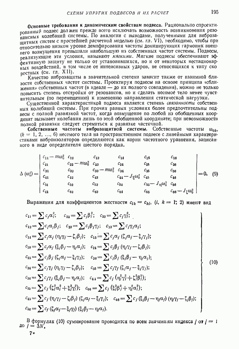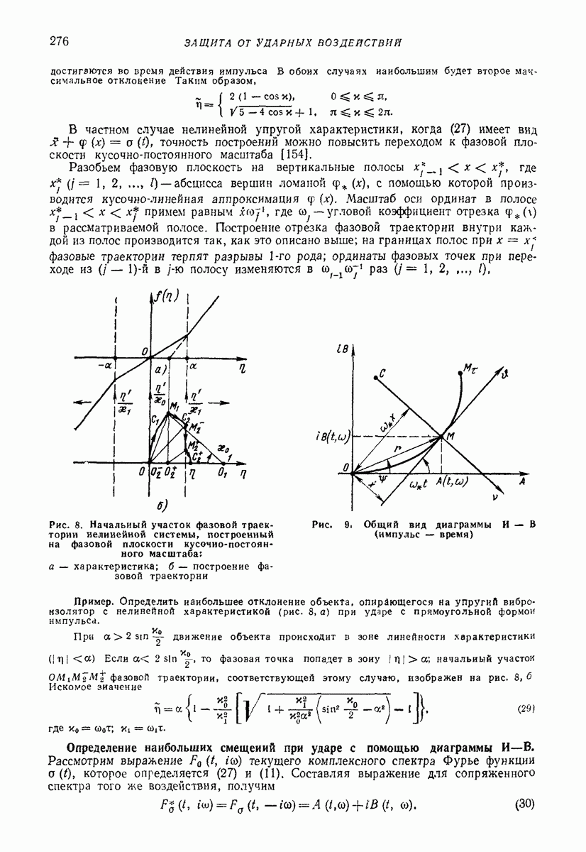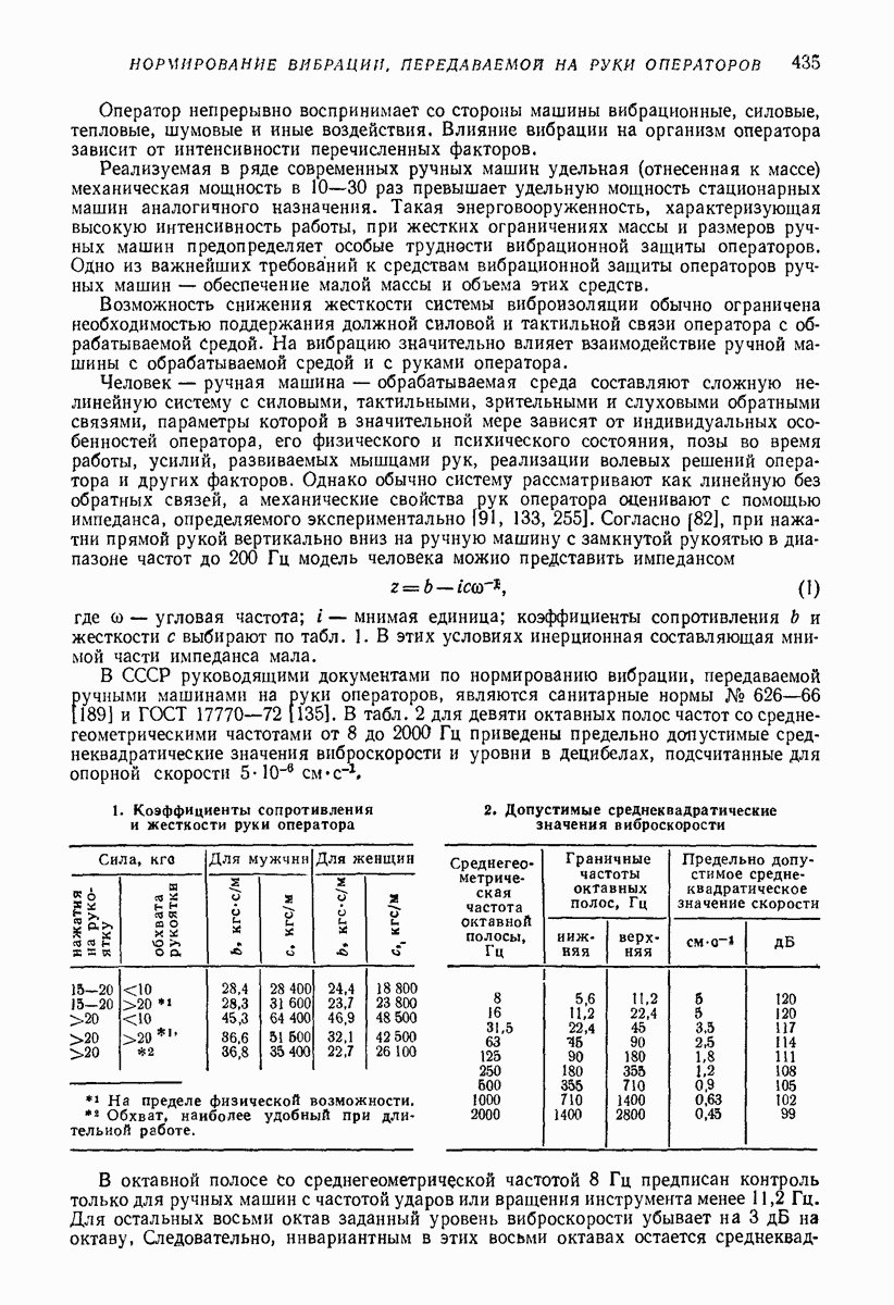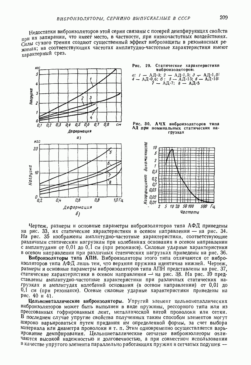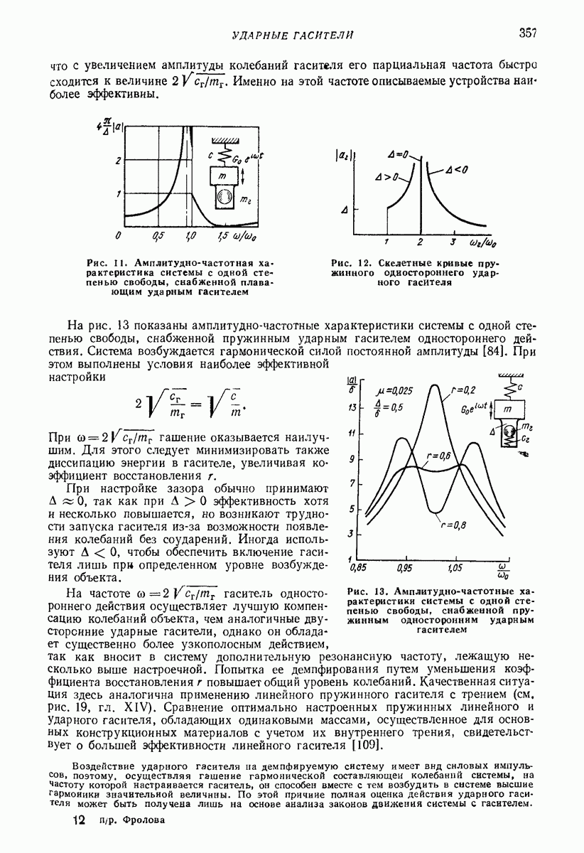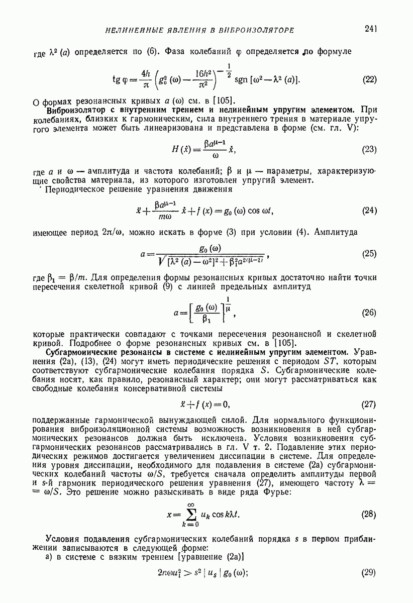 Рис. 13. Схема виброизоляции б) изменением конструкции объекта, при котором заданные механические воздействия будут вызывать менее интенсивные колебания объекта или отдельных его частей; этот метод называется внутренней виброзащитой объекта; в) присоединением к объекту дополнительной механической системы (рис. 12), изменяющей характер его колебаний. Такая система называется динамическим гасителем колебаний, а метод виброзащиты, основанный на ее применении, — динамическим гашением колебаний; г) установкой между объектом и источником дополнительной системы (рис, 13), защищающей объект от механических воздействий, возбуждаемых источником; этот метод виброзащиты называется виброизоляцией, а устройства, устанавливаемые между источником и объектом, — виброизоляторами (термин амортизатор не рекомендуется к применению). Рассмотрим каждый из перечисленных методов. Снижение виброактивности источника. Возбуждение колебаний источниками может быть обусловлено различными причинами. Удобно разделить возмущающие факторы на две группы, К первой можно отнести различные физико-химические процессы, происходящие в источнике: процессы горения в реактивных двигателях и двигателях внутреннего сгорания, процессы взаимодействия жидкости или газа с лопатками турбин (сопровождающиеся такими побочными явлениями, как кавитация), пульсацию жидкости или газа в трубопроводах, электромагнитные явления в двигателях и генераторах, разнообразные технологические процессы (например, процесс резания металлов на металлорежущих стайках, процессы обработки материала в горнообогатительном оборудовании и т. п.). К этой группе относятся и явления, связанные с трением в кинематических парах, которое также служит источником возникновения колебаний. Снижение виброактивности факторов этой группы связано с изменением параметров физико-химических процессов и может быгь достигнуто способами, специфическими для каждого частного случая. Эти способы изложены в т. 3 и 4 справочника при рассмотрении колебаний машин и агрегатов различных классов. Вторая группа возмущающих факторов связана с движущимися телами. Движение тел внутри источника (вращение роторов, перемещение звельев механизмов) сопровождается возникновением динамических реакций связей, соединяющих источник с другими телами, в частности с объектом. Снижение виброактивности источника в этом случае заключается в уменьшении динамических реакций с помощью так называемого уравновешивания движущихся тел. Методы уравновешивания являются, таким образом, способами снижения виброактивности, общими для всех источников, содержащих движущиеся тела Эти методы будут рассмотрены в первой части. При решении задач уравновешивания приходится учитывать динамические свойства источников, и в первую очередь нежесткость их элементов. Изменение конструкции объекта. Проблему уменьшения колебаний объекта путем изменения его конструкции необходимо рассматривать в каждом случае особо, с учетом особенностей объекта и конструктивных возможностей его изменения. Однако можно указать два способа снижения колебаний, общих для всех механических систем. Первый способ состоит в устранении резонансных явлений. Если объект обладает линейными свойствами, то задача сводится к соответствующему изменению его собстве
