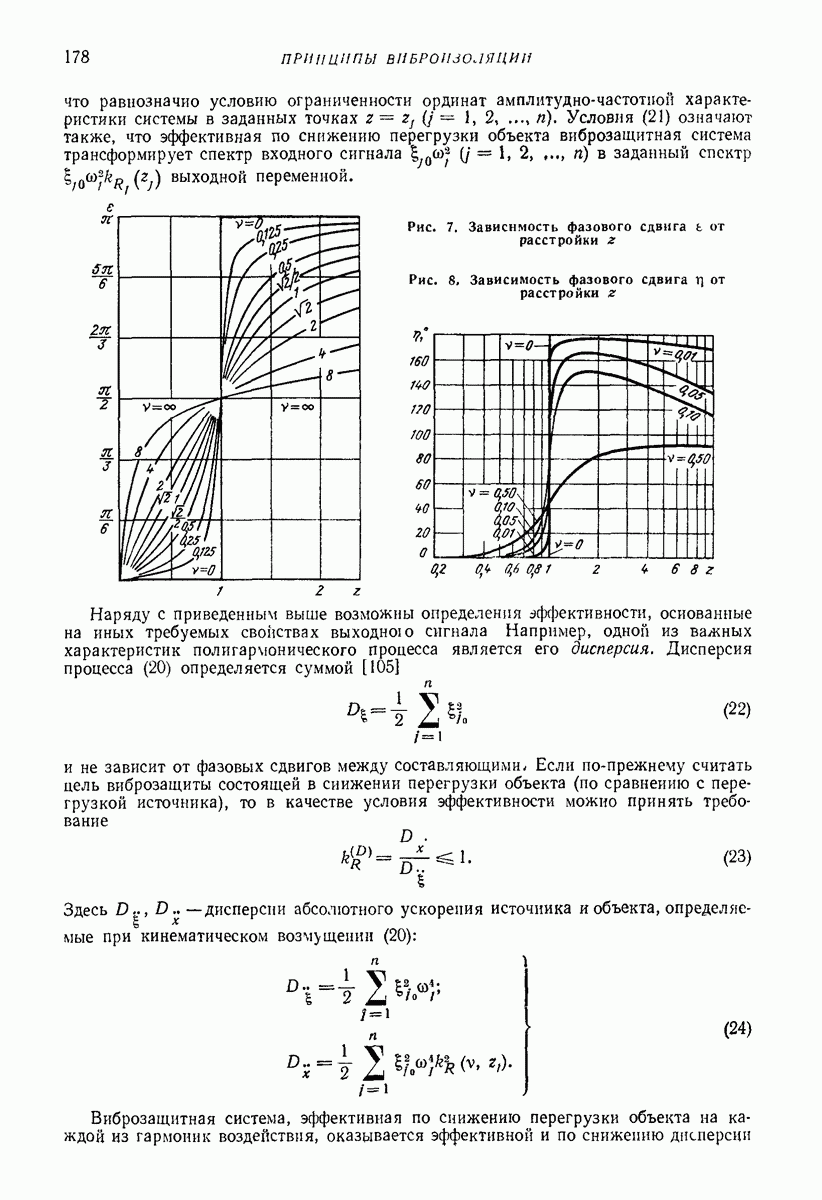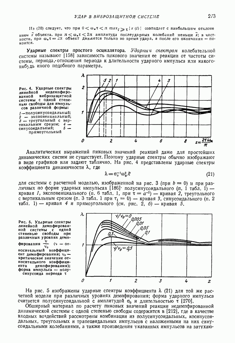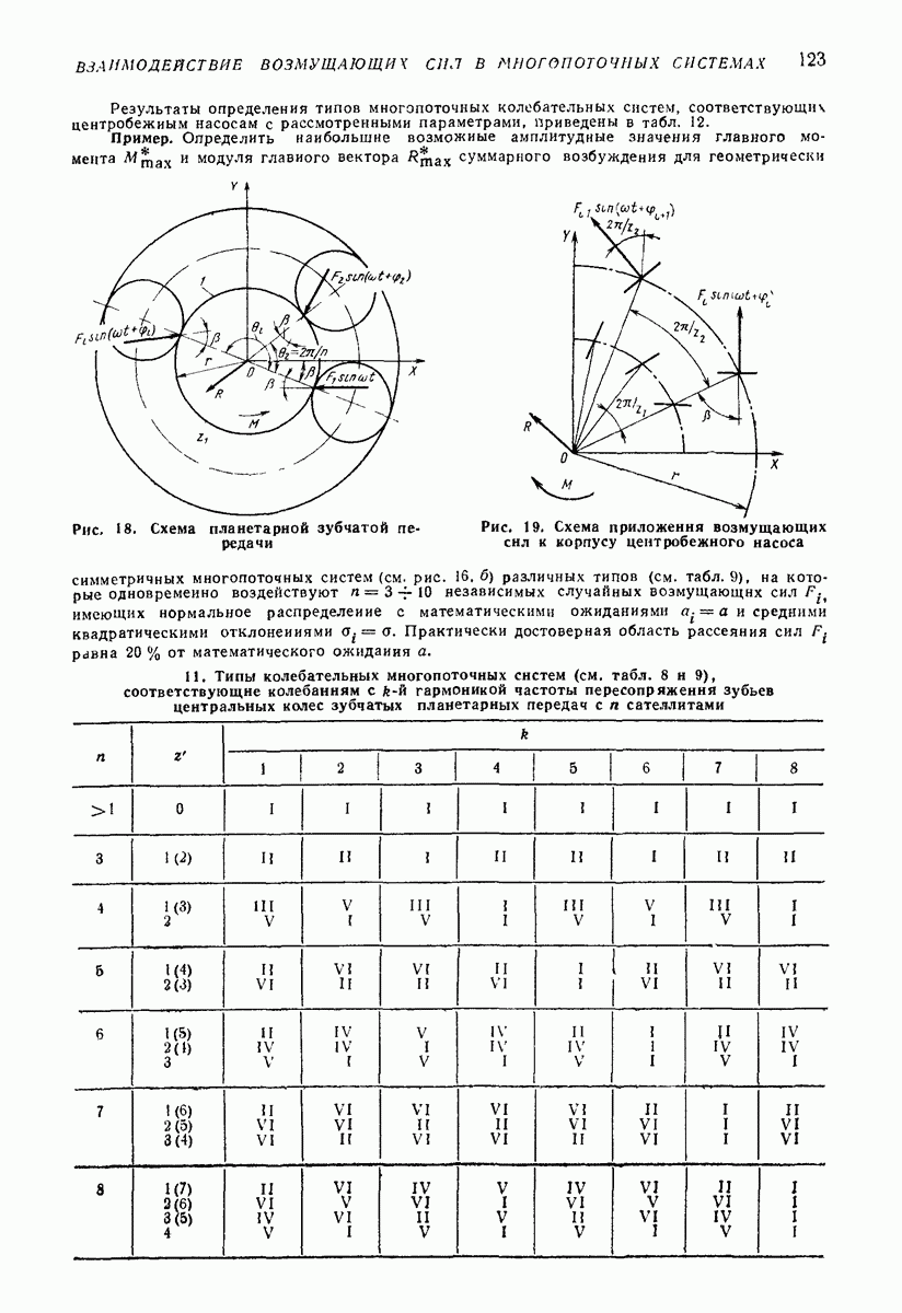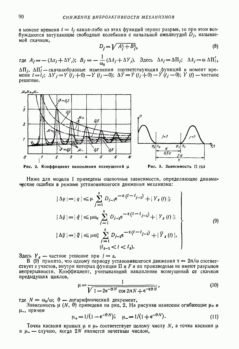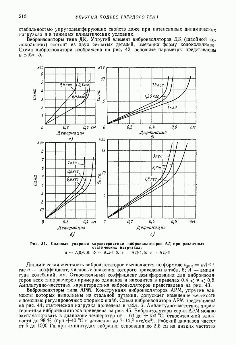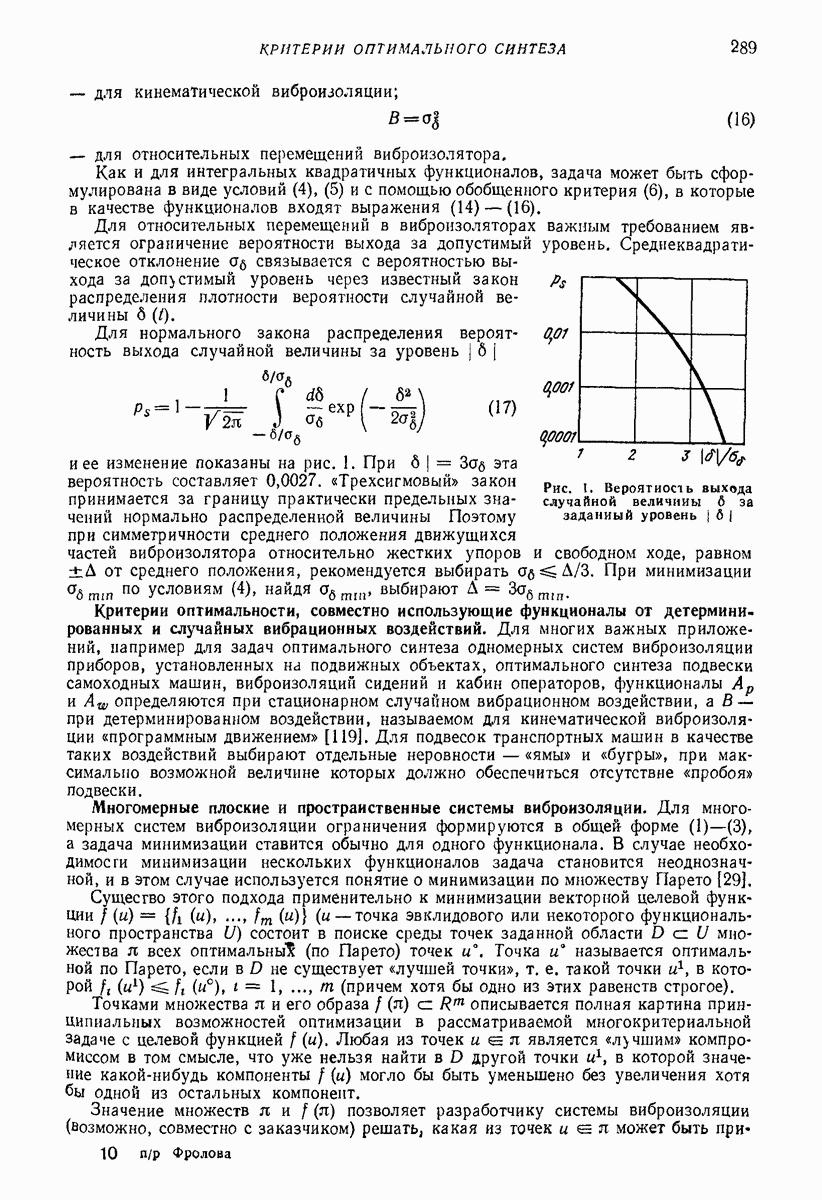 Рис. 13. Схема виброизоляции б) изменением конструкции объекта, при котором заданные механические воздействия будут вызывать менее интенсивные колебания объекта или отдельных его частей; этот метод называется внутренней виброзащитой объекта; в) присоединением к объекту дополнительной механической системы (рис. 12), изменяющей характер его колебаний. Такая система называется динамическим гасителем колебаний, а метод виброзащиты, основанный на ее применении, — динамическим гашением колебаний; г) установкой между объектом и источником дополнительной системы (рис, 13), защищающей объект от механических воздействий, возбуждаемых источником; этот метод виброзащиты называется виброизоляцией, а устройства, устанавливаемые между источником и объектом, — виброизоляторами (термин амортизатор не рекомендуется к применению). Рассмотрим каждый из перечисленных методов. Снижение виброактивности источника. Возбуждение колебаний источниками может быть обусловлено различными причинами. Удобно разделить возмущающие факторы на две группы, К первой можно отнести различные физико-химические процессы, происходящие в источнике: процессы горения в реактивных двигателях и двигателях внутреннего сгорания, процессы взаимодействия жидкости или газа с лопатками турбин (сопровождающиеся такими побочными явлениями, как кавитация), пульсацию жидкости или газа в трубопроводах, электромагнитные явления в двигателях и генераторах, разнообразные технологические процессы (например, процесс резания металлов на металлорежущих стайках, процессы обработки материала в горнообогатительном оборудовании и т. п.). К этой группе относятся и явления, связанные с трением в кинематических парах, которое также служит источником возникновения колебаний. Снижение виброактивности факторов этой группы связано с изменением параметров физико-химических процессов и может быгь достигнуто способами, специфическими для каждого частного случая. Эти способы изложены в т. 3 и 4 справочника при рассмотрении колебаний машин и агрегатов различных классов. Вторая группа возмущающих факторов связана с движущимися телами. Движение тел внутри источника (вращение роторов, перемещение звельев механизмов) сопровождается возникновением динамических реакций связей, соединяющих источник с другими телами, в частности с объектом. Снижение виброактивности источника в этом случае заключается в уменьшении динамических реакций с помощью так называемого уравновешивания движущихся тел. Методы уравновешивания являются, таким образом, способами снижения виброактивности, общими для всех источников, содержащих движущиеся тела Эти методы будут рассмотрены в первой части. При решении задач уравновешивания приходится учитывать динамические свойства источников, и в первую очередь нежесткость их элементов. Изменение конструкции объекта. Проблему уменьшения колебаний объекта путем изменения его конструкции необходимо рассматривать в каждом случае особо, с учетом особенностей объекта и конструктивных возможностей его изменения. Однако можно указать два способа снижения колебаний, общих для всех механических систем. Первый способ состоит в устранении резонансных явлений. Если объект обладает линейными свойствами, то задача сводится к соответствующему изменению его собстве