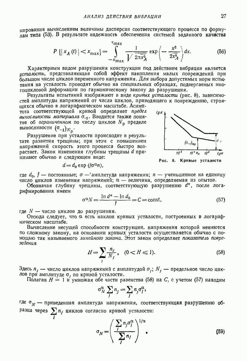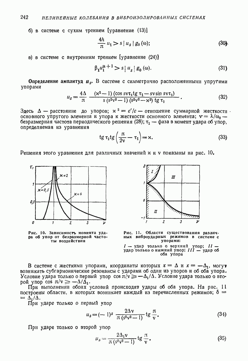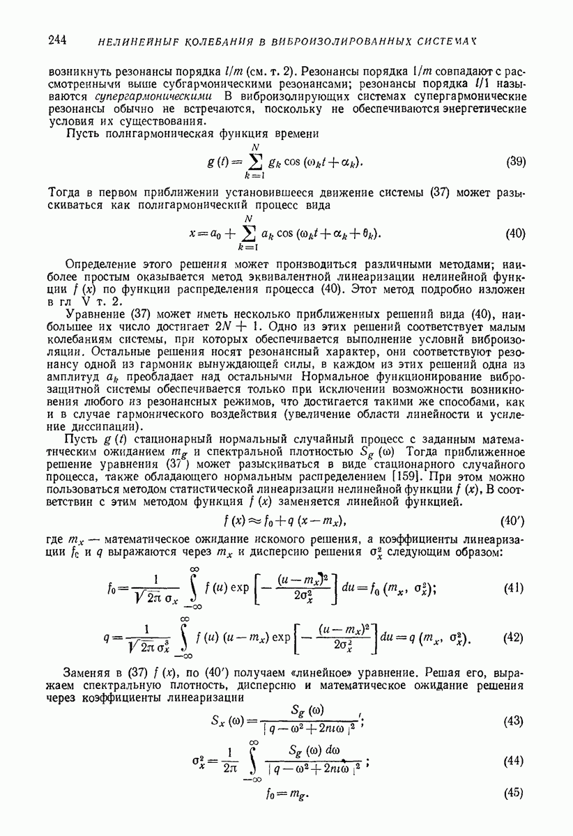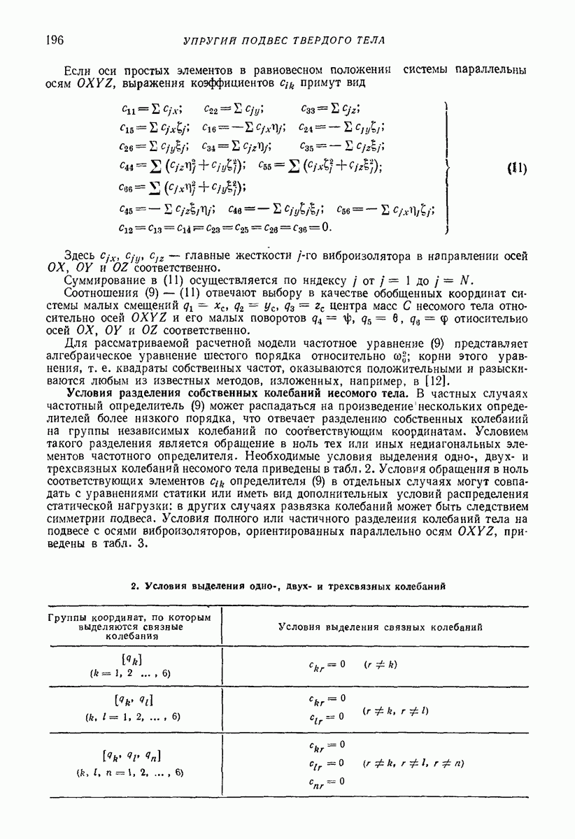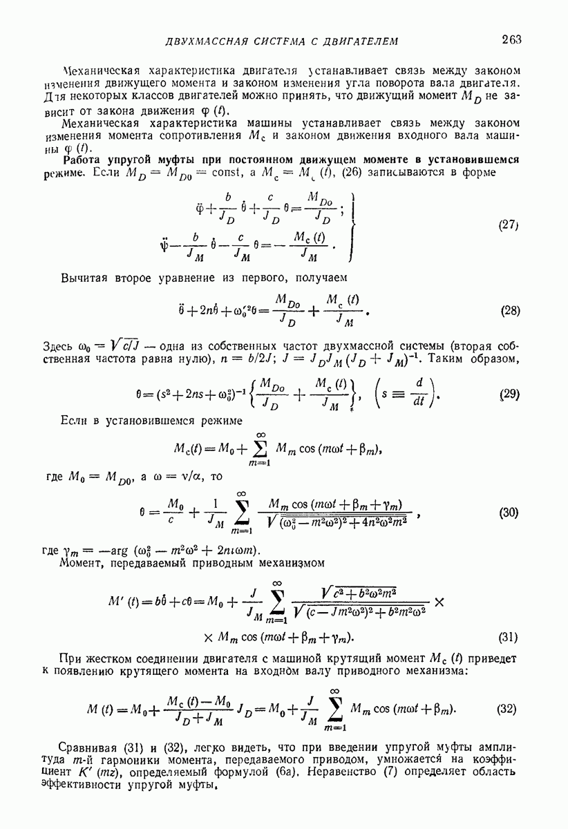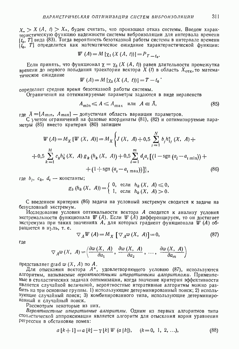 Рис. 13. Схема виброизоляции б) изменением конструкции объекта, при котором заданные механические воздействия будут вызывать менее интенсивные колебания объекта или отдельных его частей; этот метод называется внутренней виброзащитой объекта; в) присоединением к объекту дополнительной механической системы (рис. 12), изменяющей характер его колебаний. Такая система называется динамическим гасителем колебаний, а метод виброзащиты, основанный на ее применении, — динамическим гашением колебаний; г) установкой между объектом и источником дополнительной системы (рис, 13), защищающей объект от механических воздействий, возбуждаемых источником; этот метод виброзащиты называется виброизоляцией, а устройства, устанавливаемые между источником и объектом, — виброизоляторами (термин амортизатор не рекомендуется к применению). Рассмотрим каждый из перечисленных методов. Снижение виброактивности источника. Возбуждение колебаний источниками может быть обусловлено различными причинами. Удобно разделить возмущающие факторы на две группы, К первой можно отнести различные физико-химические процессы, происходящие в источнике: процессы горения в реактивных двигателях и двигателях внутреннего сгорания, процессы взаимодействия жидкости или газа с лопатками турбин (сопровождающиеся такими побочными явлениями, как кавитация), пульсацию жидкости или газа в трубопроводах, электромагнитные явления в двигателях и генераторах, разнообразные технологические процессы (например, процесс резания металлов на металлорежущих стайках, процессы обработки материала в горнообогатительном оборудовании и т. п.). К этой группе относятся и явления, связанные с трением в кинематических парах, которое также служит источником возникновения колебаний. Снижение виброактивности факторов этой группы связано с изменением параметров физико-химических процессов и может быгь достигнуто способами, специфическими для каждого частного случая. Эти способы изложены в т. 3 и 4 справочника при рассмотрении колебаний машин и агрегатов различных классов. Вторая группа возмущающих факторов связана с движущимися телами. Движение тел внутри источника (вращение роторов, перемещение звельев механизмов) сопровождается возникновением динамических реакций связей, соединяющих источник с другими телами, в частности с объектом. Снижение виброактивности источника в этом случае заключается в уменьшении динамических реакций с помощью так называемого уравновешивания движущихся тел. Методы уравновешивания являются, таким образом, способами снижения виброактивности, общими для всех источников, содержащих движущиеся тела Эти методы будут рассмотрены в первой части. При решении задач уравновешивания приходится учитывать динамические свойства источников, и в первую очередь нежесткость их элементов. Изменение конструкции объекта. Проблему уменьшения колебаний объекта путем изменения его конструкции необходимо рассматривать в каждом случае особо, с учетом особенностей объекта и конструктивных возможностей его изменения. Однако можно указать два способа снижения колебаний, общих для всех механических систем. Первый способ состоит в устранении резонансных явлений. Если объект обладает линейными свойствами, то задача сводится к соответствующему изменению его собстве
