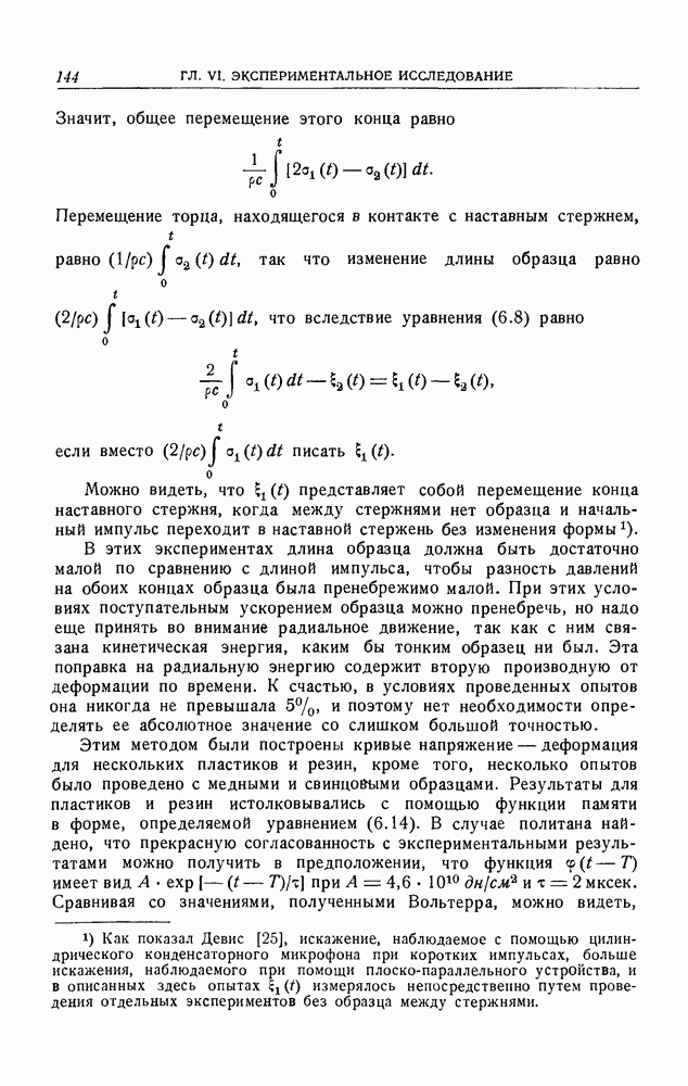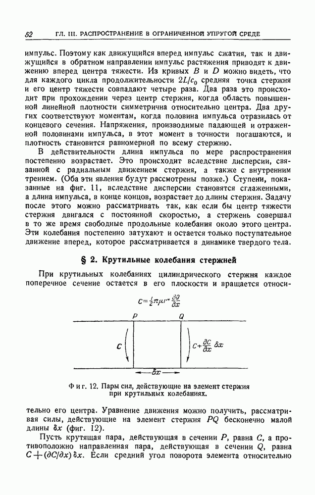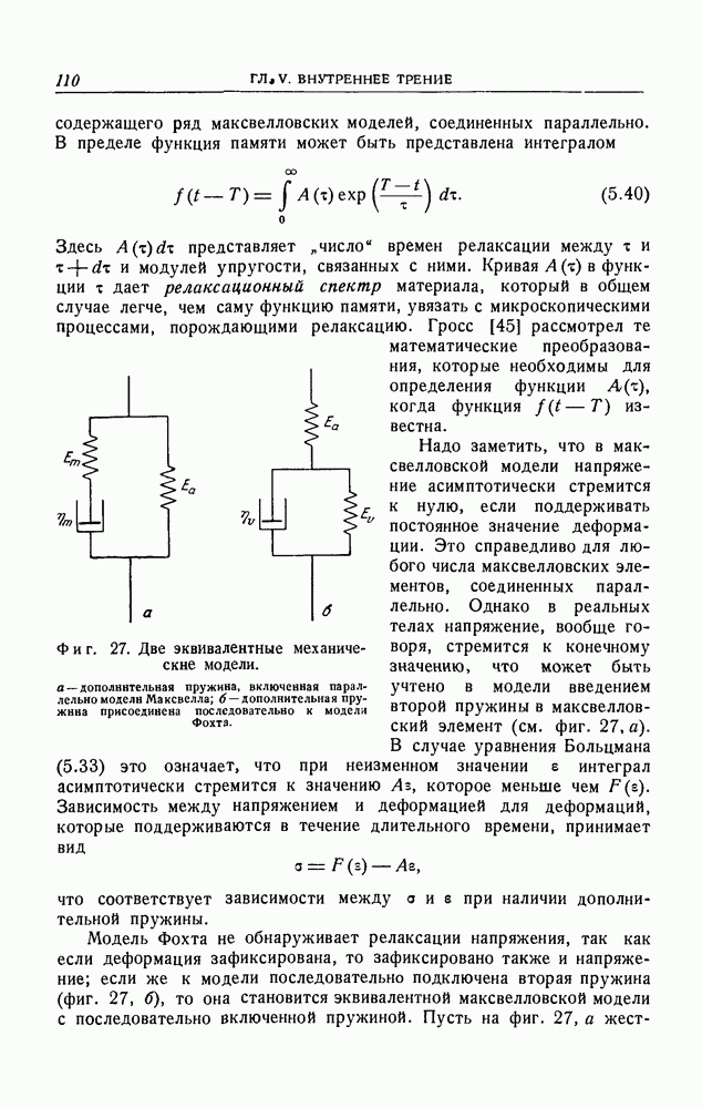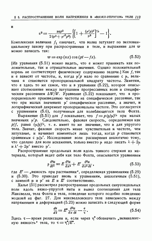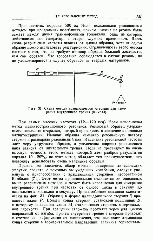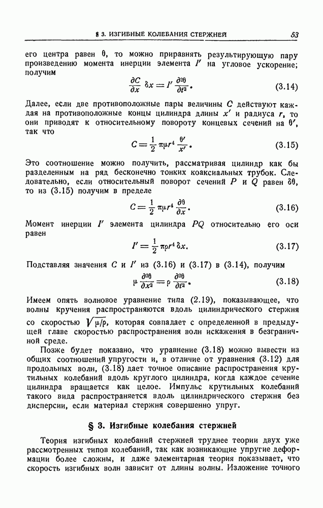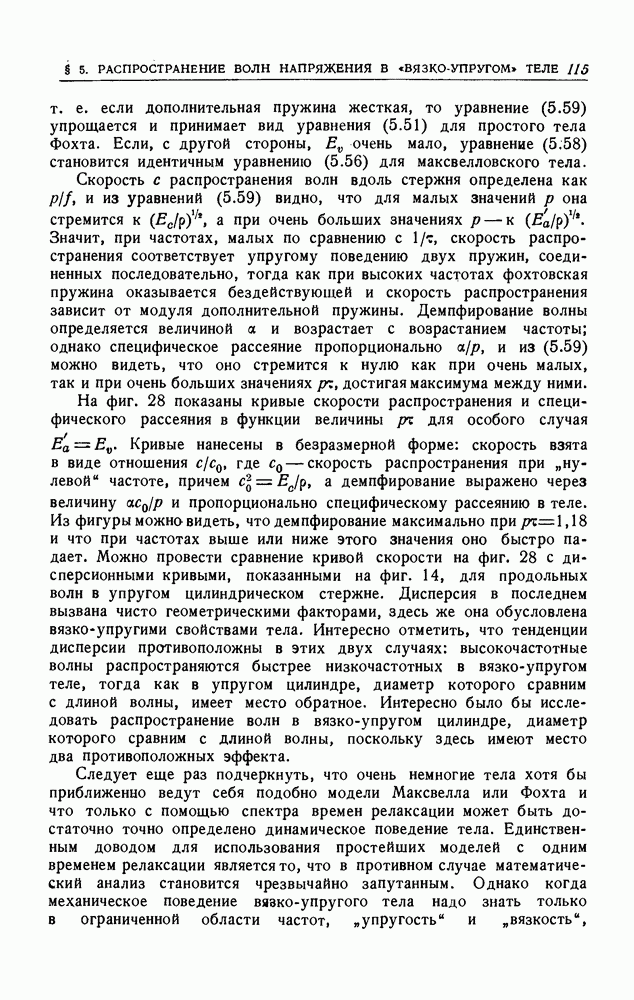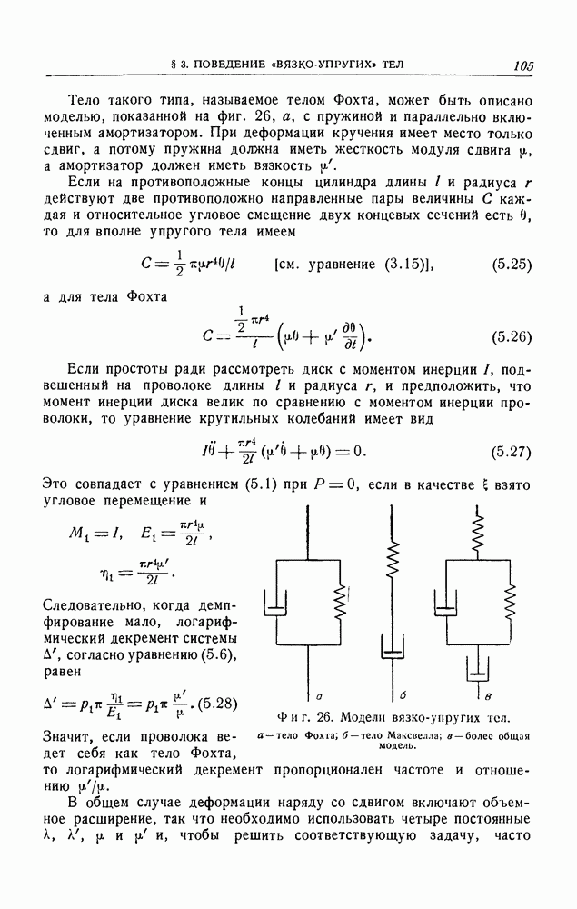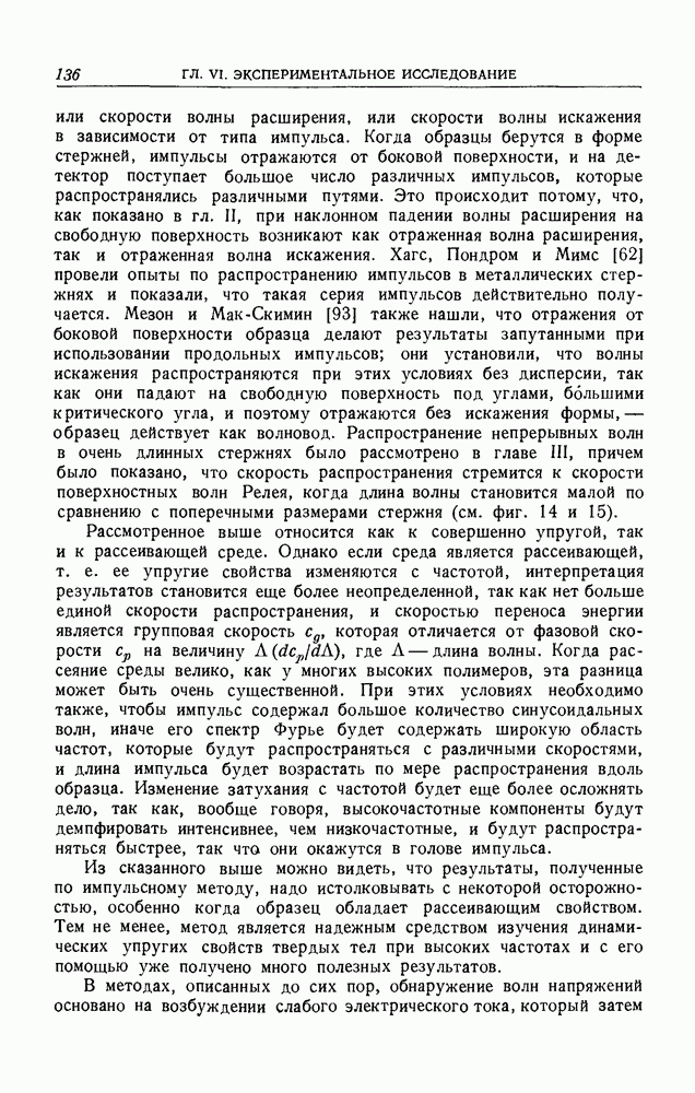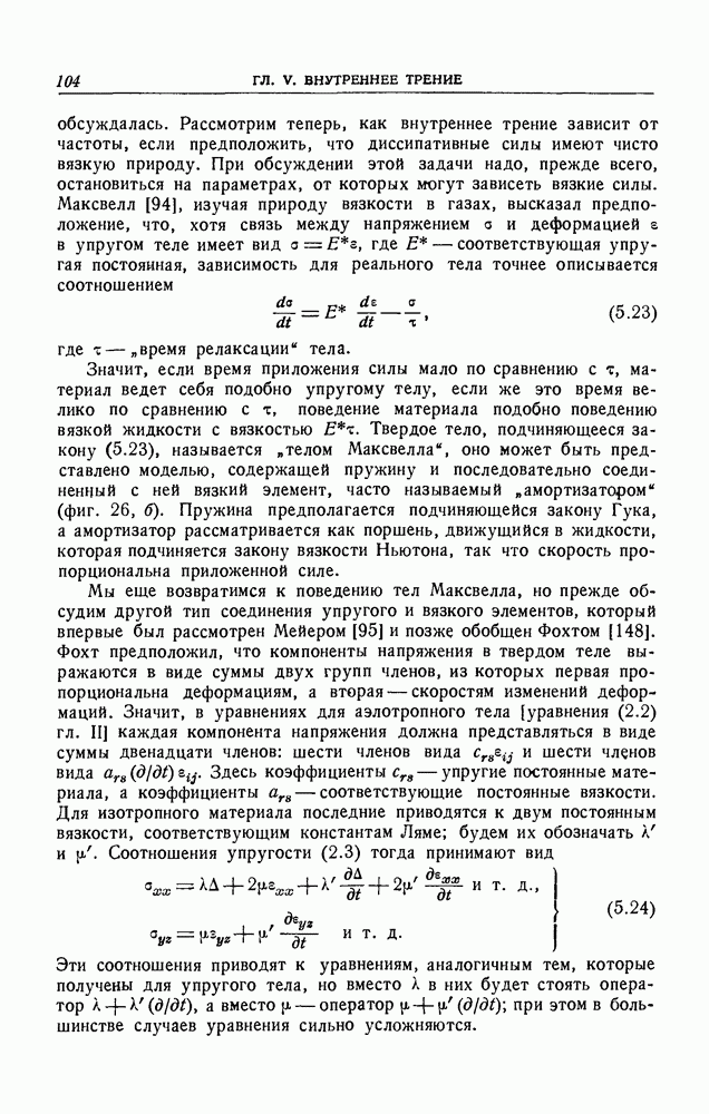 Глава V. ВНУТРЕННЕЕ ТРЕНИЕТеория, описанная в первой части этой монографии, базируется на законе Гука. Уравнения движения твердого тела получаются приравниванием упругим силам произведений масс на ускорения, причем предполагается, что никакие другие силы не играют роли. Поведение многих тел не отличается существенно от вполне упругих при малых деформациях и, как показано в гл. IV, результаты наблюдений часто хорошо согласуются с данными упругой теории. Однако, если материал совершает колебания, часть упругой энергии всегда превращается в тепло вследствие внутреннего трения. Так, когда твердый образец вибрирует, его свободные колебания затухают даже в том случае, когда он изолирован от окружающих предметов. Амплитуда колебания образца при отсутствии внутреннего трения должна была бы безгранично возрастать при воздействии переменной внешней силы, действующей с резонансной частотой образца. Практически амплитуда всегда принимает конечное значение. Для жидкостей и газов диссипативные силы порождаются вязкостью и теплопроводностью, причем эти эффекты могут быть исследованы аналитически. В твердых телах поведение оказывается гораздо более сложным и существенно зависит от природы твердого тела. В настоящее время нет удовлетворительной теории внутреннего трения в твердых телах и требуется накопление экспериментальных данных. § 1. ОпределенияНаиболее прямой метод определения внутреннего трения состоит в вычислении отношения Имеется несколько непрямых методов определения внутреннего трения, причем они связаны с предположением, что восстанавливающие силы пропорциональны амплитуде колебания, тогда как диссипа-тивные силы пропорциональны скорости. Если применить эти условия, то отношение двух последующих амплитуд свободных колебаний будет постоянным, причем натуральный логарифм этого отношения Другой непрямой мерой внутреннего трения служит острота резонансной кривой при вынужденных колебаниях. Если образец нагружается синусоидальной силой заданной амплитуды, частота которой может изменяться, и амплитуда колебаний образца записывается как функция частоты, то график этой зависимости имеет максимум при резонансной частоте Покажем теперь, как получаются соотношения между этими различными определениями внутреннего трения для образца, в котором восстанавливающая упругая сила пропорциональна перемещению, а рассеяние пропорционально скорости. Уравнение движения такого образца можно записать в виде