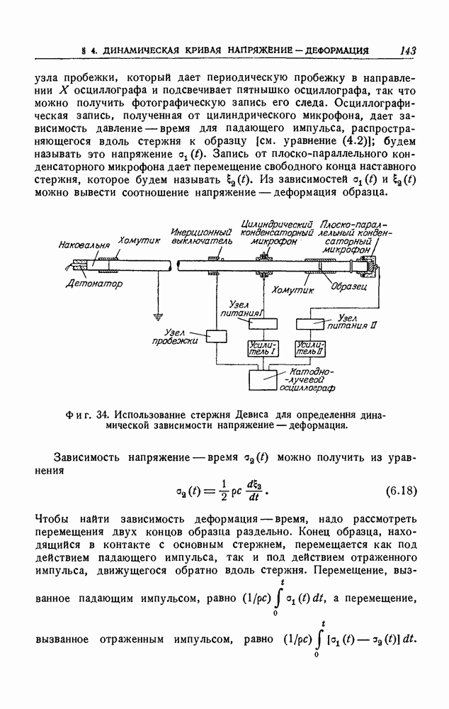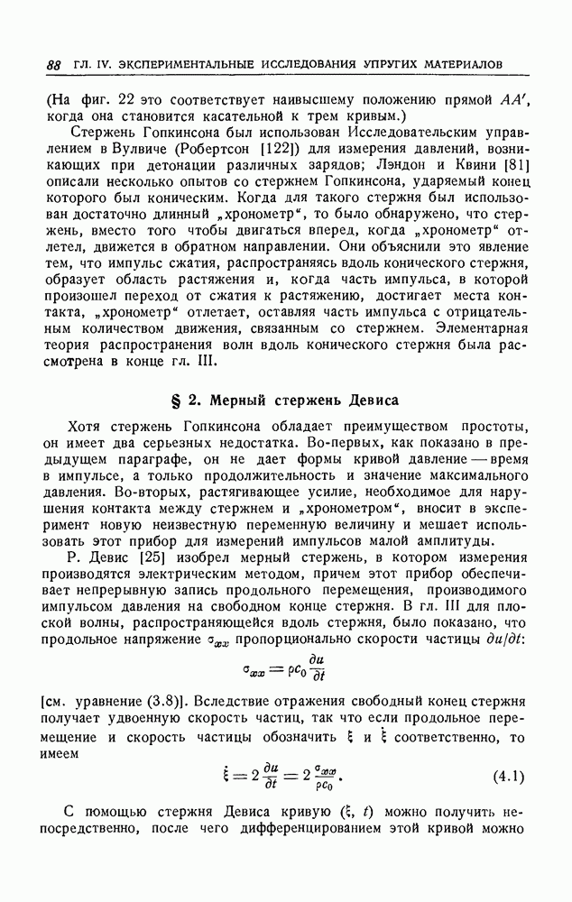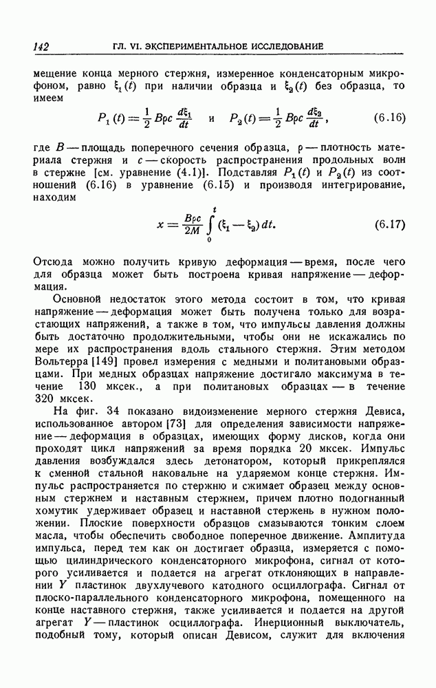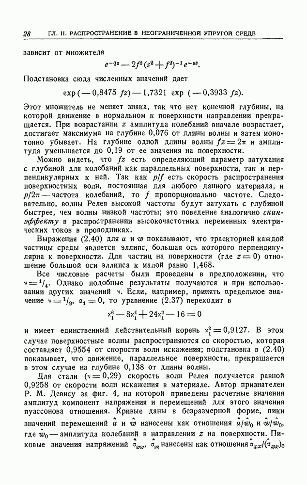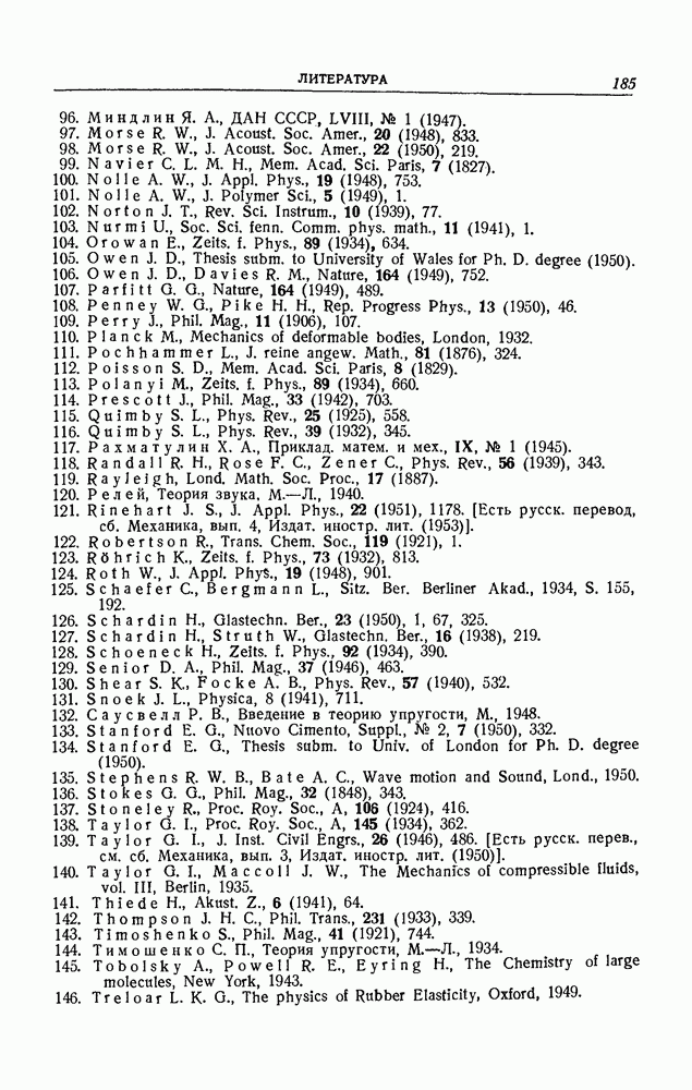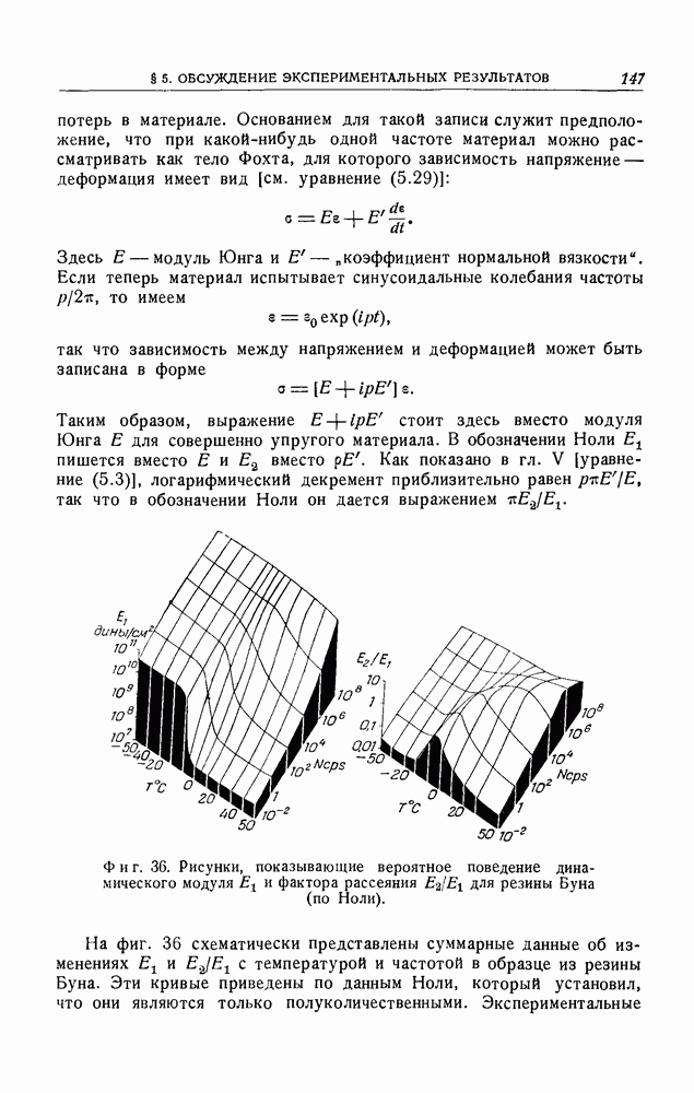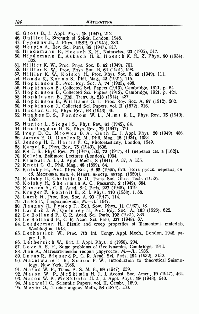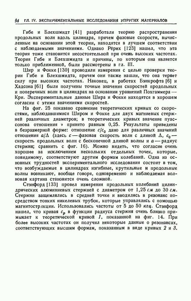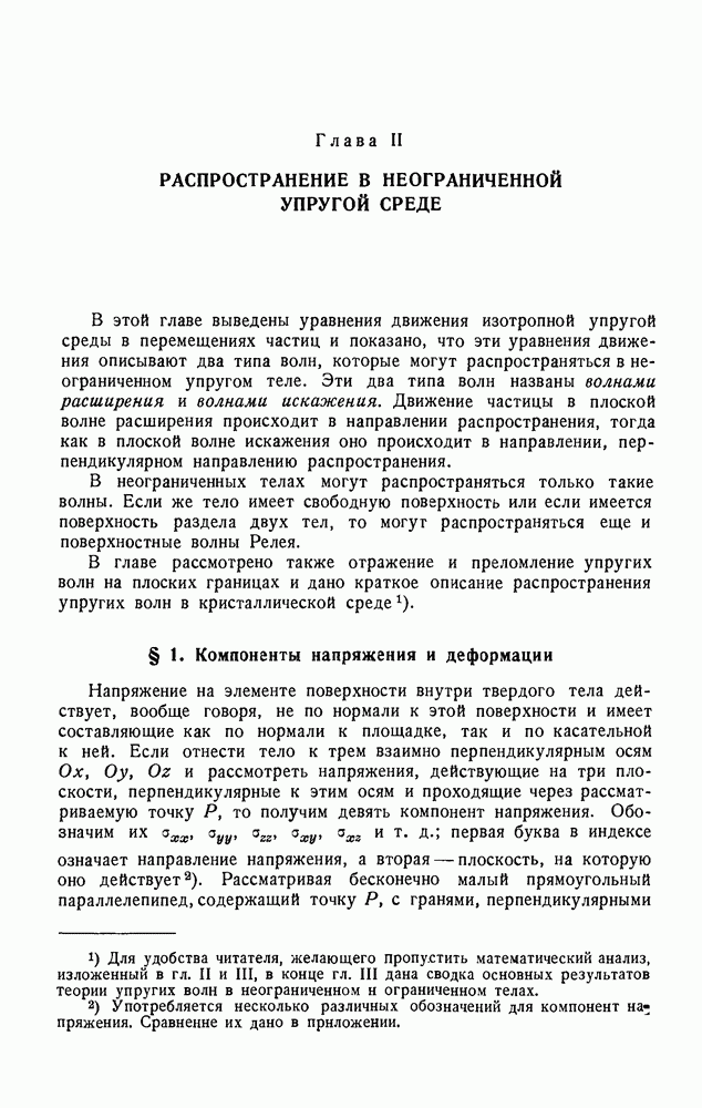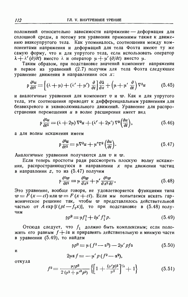 Глава V. ВНУТРЕННЕЕ ТРЕНИЕТеория, описанная в первой части этой монографии, базируется на законе Гука. Уравнения движения твердого тела получаются приравниванием упругим силам произведений масс на ускорения, причем предполагается, что никакие другие силы не играют роли. Поведение многих тел не отличается существенно от вполне упругих при малых деформациях и, как показано в гл. IV, результаты наблюдений часто хорошо согласуются с данными упругой теории. Однако, если материал совершает колебания, часть упругой энергии всегда превращается в тепло вследствие внутреннего трения. Так, когда твердый образец вибрирует, его свободные колебания затухают даже в том случае, когда он изолирован от окружающих предметов. Амплитуда колебания образца при отсутствии внутреннего трения должна была бы безгранично возрастать при воздействии переменной внешней силы, действующей с резонансной частотой образца. Практически амплитуда всегда принимает конечное значение. Для жидкостей и газов диссипативные силы порождаются вязкостью и теплопроводностью, причем эти эффекты могут быть исследованы аналитически. В твердых телах поведение оказывается гораздо более сложным и существенно зависит от природы твердого тела. В настоящее время нет удовлетворительной теории внутреннего трения в твердых телах и требуется накопление экспериментальных данных. § 1. ОпределенияНаиболее прямой метод определения внутреннего трения состоит в вычислении отношения Имеется несколько непрямых методов определения внутреннего трения, причем они связаны с предположением, что восстанавливающие силы пропорциональны амплитуде колебания, тогда как диссипа-тивные силы пропорциональны скорости. Если применить эти условия, то отношение двух последующих амплитуд свободных колебаний будет постоянным, причем натуральный логарифм этого отношения Другой непрямой мерой внутреннего трения служит острота резонансной кривой при вынужденных колебаниях. Если образец нагружается синусоидальной силой заданной амплитуды, частота которой может изменяться, и амплитуда колебаний образца записывается как функция частоты, то график этой зависимости имеет максимум при резонансной частоте Покажем теперь, как получаются соотношения между этими различными определениями внутреннего трения для образца, в котором восстанавливающая упругая сила пропорциональна перемещению, а рассеяние пропорционально скорости. Уравнение движения такого образца можно записать в виде