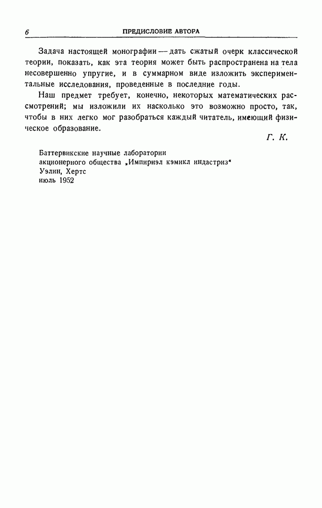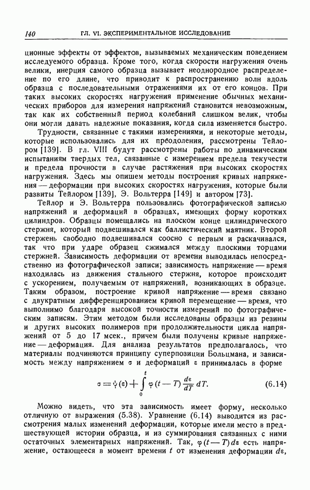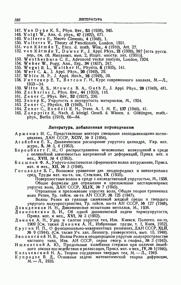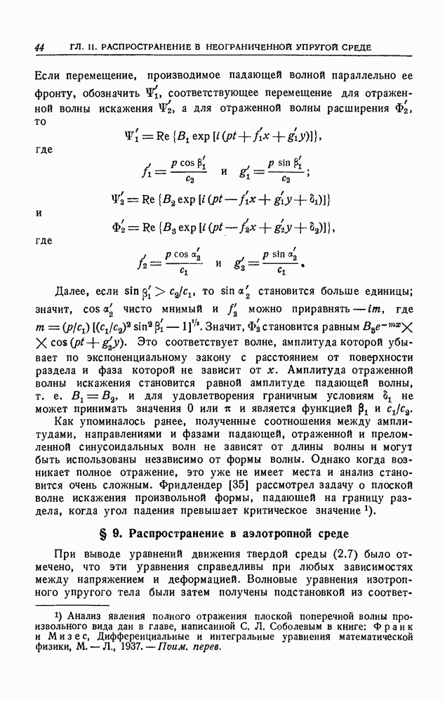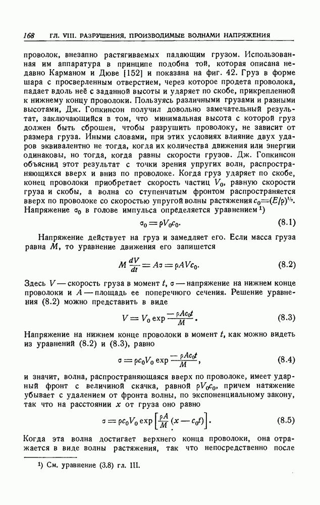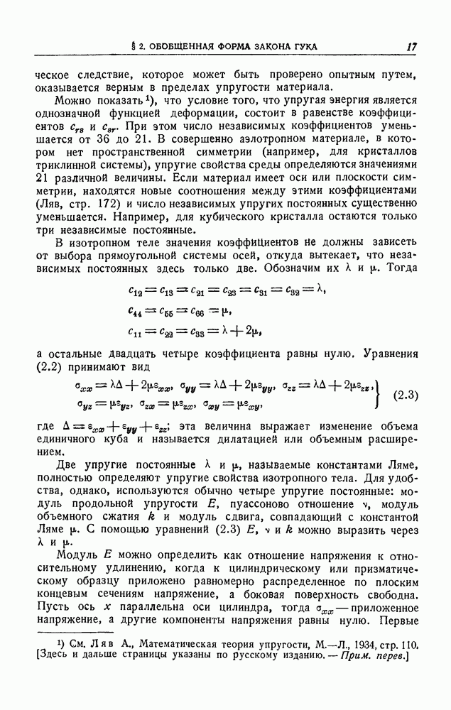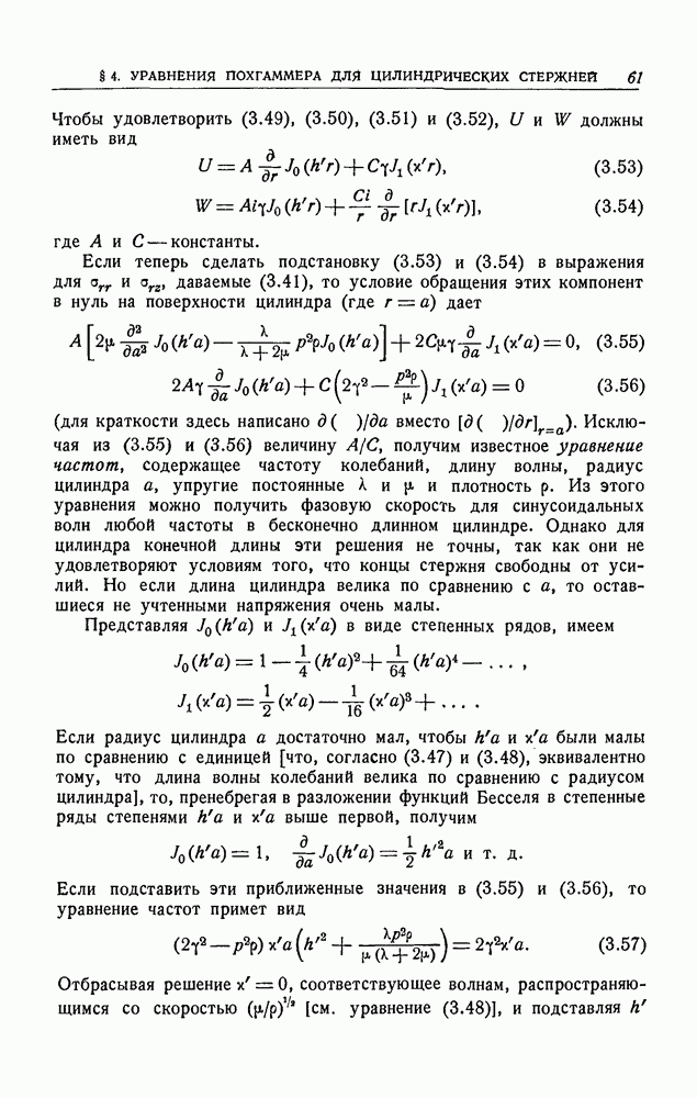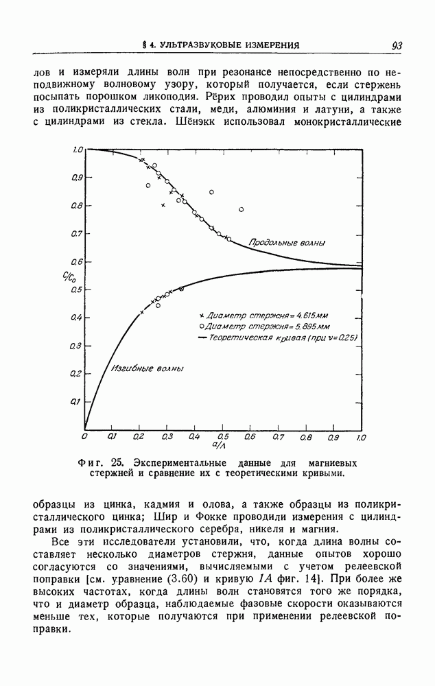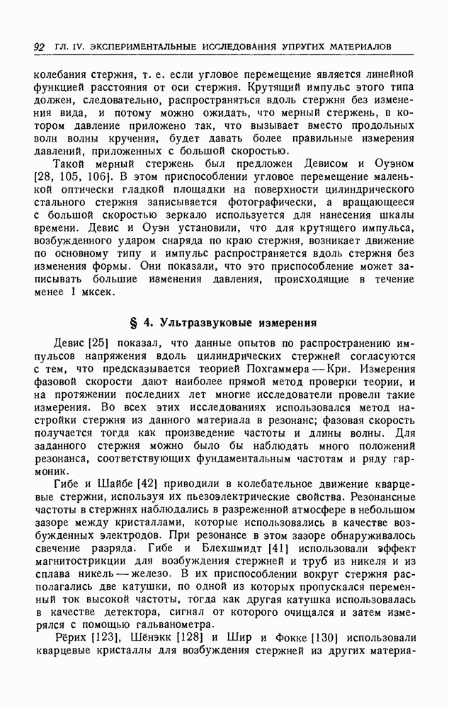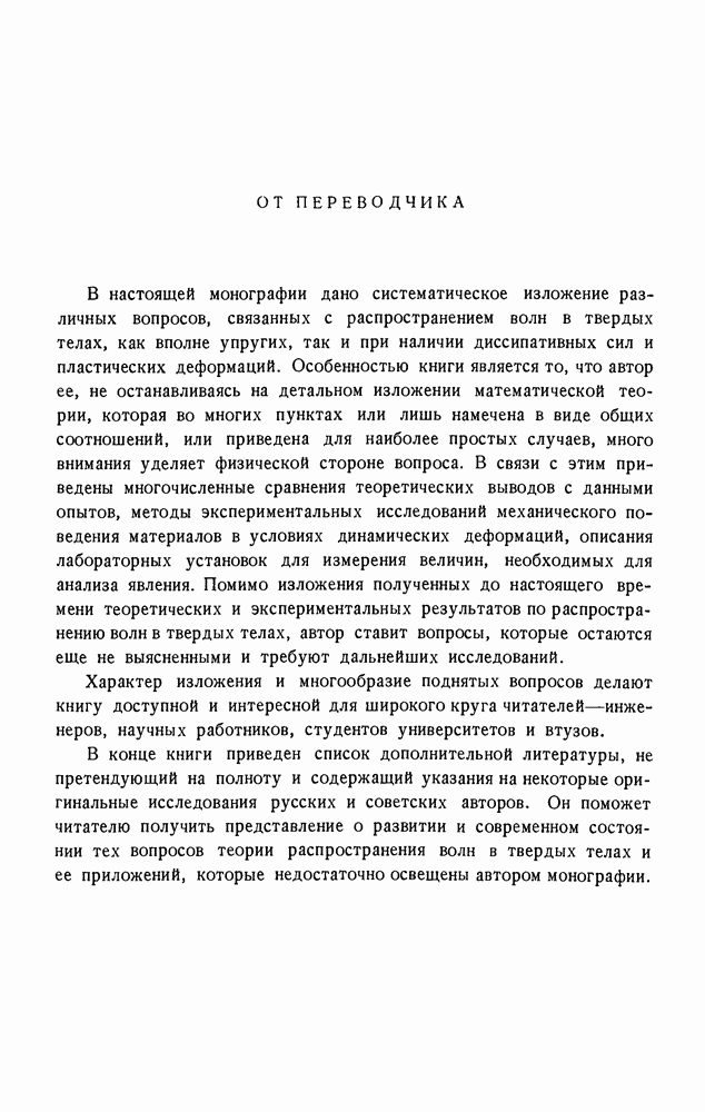 Глава V. ВНУТРЕННЕЕ ТРЕНИЕТеория, описанная в первой части этой монографии, базируется на законе Гука. Уравнения движения твердого тела получаются приравниванием упругим силам произведений масс на ускорения, причем предполагается, что никакие другие силы не играют роли. Поведение многих тел не отличается существенно от вполне упругих при малых деформациях и, как показано в гл. IV, результаты наблюдений часто хорошо согласуются с данными упругой теории. Однако, если материал совершает колебания, часть упругой энергии всегда превращается в тепло вследствие внутреннего трения. Так, когда твердый образец вибрирует, его свободные колебания затухают даже в том случае, когда он изолирован от окружающих предметов. Амплитуда колебания образца при отсутствии внутреннего трения должна была бы безгранично возрастать при воздействии переменной внешней силы, действующей с резонансной частотой образца. Практически амплитуда всегда принимает конечное значение. Для жидкостей и газов диссипативные силы порождаются вязкостью и теплопроводностью, причем эти эффекты могут быть исследованы аналитически. В твердых телах поведение оказывается гораздо более сложным и существенно зависит от природы твердого тела. В настоящее время нет удовлетворительной теории внутреннего трения в твердых телах и требуется накопление экспериментальных данных. § 1. ОпределенияНаиболее прямой метод определения внутреннего трения состоит в вычислении отношения Имеется несколько непрямых методов определения внутреннего трения, причем они связаны с предположением, что восстанавливающие силы пропорциональны амплитуде колебания, тогда как диссипа-тивные силы пропорциональны скорости. Если применить эти условия, то отношение двух последующих амплитуд свободных колебаний будет постоянным, причем натуральный логарифм этого отношения Другой непрямой мерой внутреннего трения служит острота резонансной кривой при вынужденных колебаниях. Если образец нагружается синусоидальной силой заданной амплитуды, частота которой может изменяться, и амплитуда колебаний образца записывается как функция частоты, то график этой зависимости имеет максимум при резонансной частоте Покажем теперь, как получаются соотношения между этими различными определениями внутреннего трения для образца, в котором восстанавливающая упругая сила пропорциональна перемещению, а рассеяние пропорционально скорости. Уравнение движения такого образца можно записать в виде