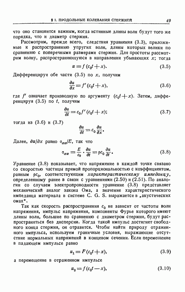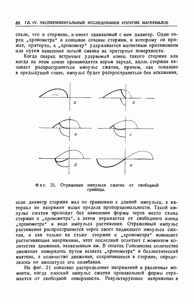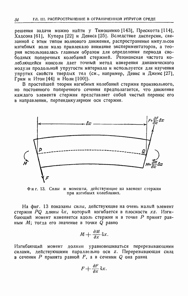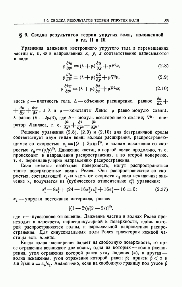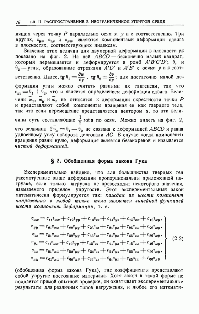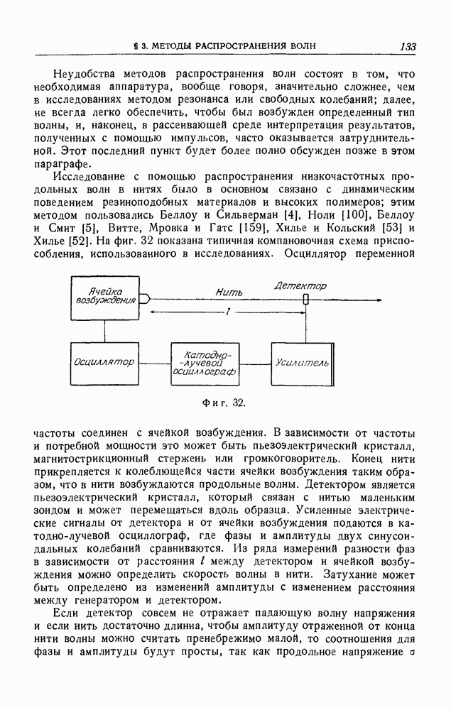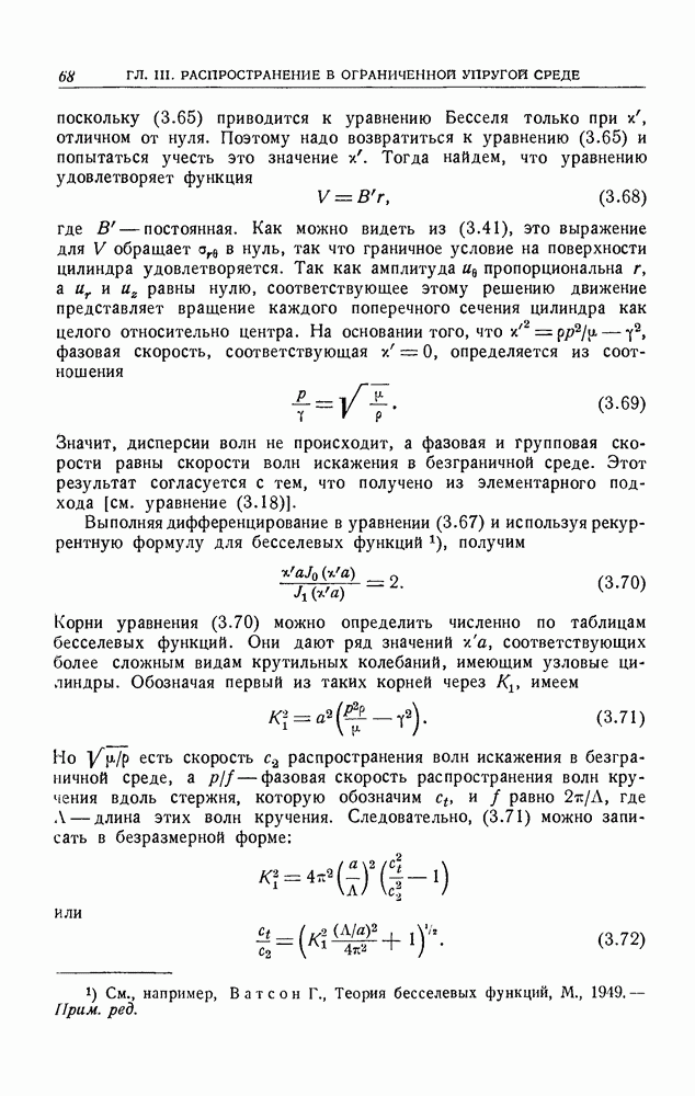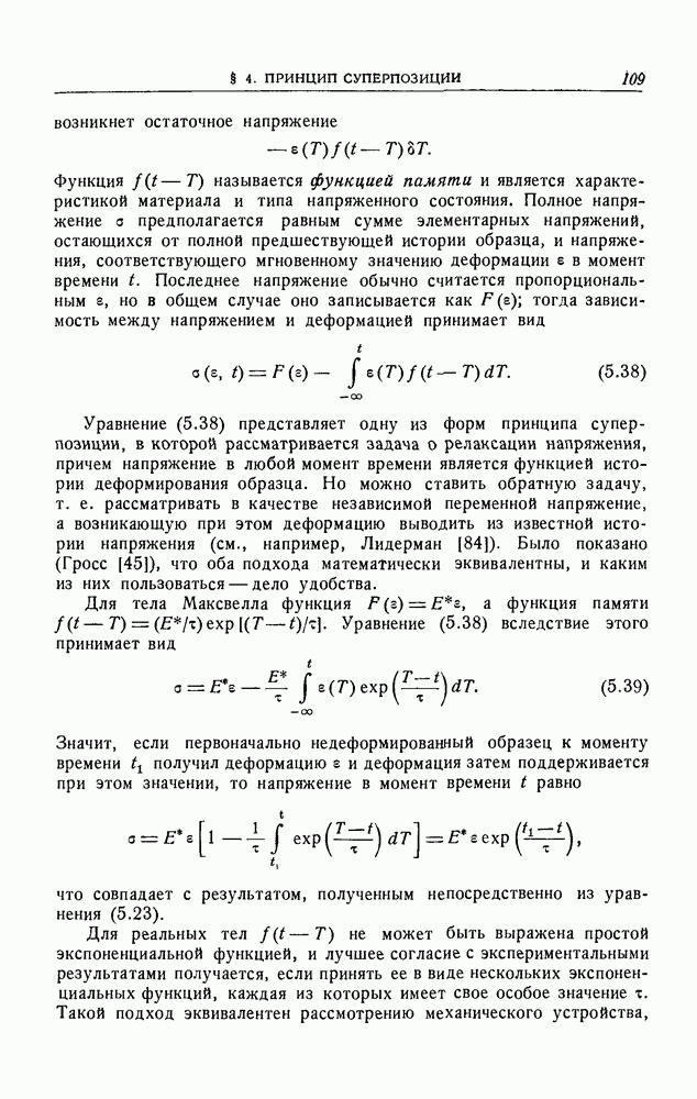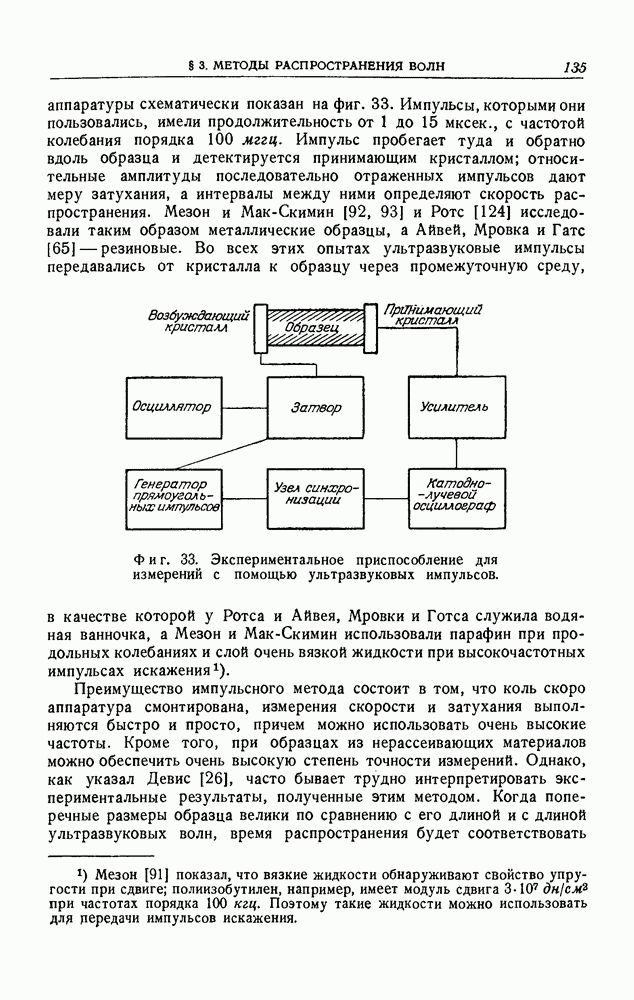 Глава V. ВНУТРЕННЕЕ ТРЕНИЕТеория, описанная в первой части этой монографии, базируется на законе Гука. Уравнения движения твердого тела получаются приравниванием упругим силам произведений масс на ускорения, причем предполагается, что никакие другие силы не играют роли. Поведение многих тел не отличается существенно от вполне упругих при малых деформациях и, как показано в гл. IV, результаты наблюдений часто хорошо согласуются с данными упругой теории. Однако, если материал совершает колебания, часть упругой энергии всегда превращается в тепло вследствие внутреннего трения. Так, когда твердый образец вибрирует, его свободные колебания затухают даже в том случае, когда он изолирован от окружающих предметов. Амплитуда колебания образца при отсутствии внутреннего трения должна была бы безгранично возрастать при воздействии переменной внешней силы, действующей с резонансной частотой образца. Практически амплитуда всегда принимает конечное значение. Для жидкостей и газов диссипативные силы порождаются вязкостью и теплопроводностью, причем эти эффекты могут быть исследованы аналитически. В твердых телах поведение оказывается гораздо более сложным и существенно зависит от природы твердого тела. В настоящее время нет удовлетворительной теории внутреннего трения в твердых телах и требуется накопление экспериментальных данных. § 1. ОпределенияНаиболее прямой метод определения внутреннего трения состоит в вычислении отношения Имеется несколько непрямых методов определения внутреннего трения, причем они связаны с предположением, что восстанавливающие силы пропорциональны амплитуде колебания, тогда как диссипа-тивные силы пропорциональны скорости. Если применить эти условия, то отношение двух последующих амплитуд свободных колебаний будет постоянным, причем натуральный логарифм этого отношения Другой непрямой мерой внутреннего трения служит острота резонансной кривой при вынужденных колебаниях. Если образец нагружается синусоидальной силой заданной амплитуды, частота которой может изменяться, и амплитуда колебаний образца записывается как функция частоты, то график этой зависимости имеет максимум при резонансной частоте Покажем теперь, как получаются соотношения между этими различными определениями внутреннего трения для образца, в котором восстанавливающая упругая сила пропорциональна перемещению, а рассеяние пропорционально скорости. Уравнение движения такого образца можно записать в виде