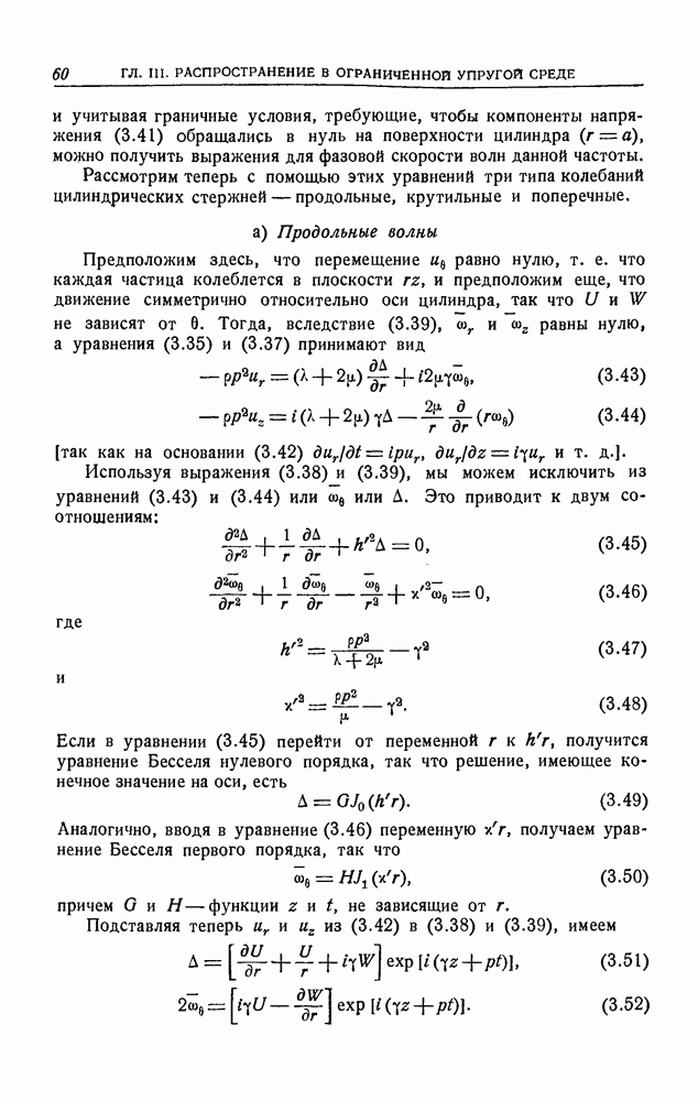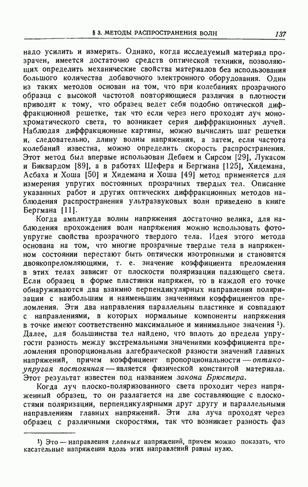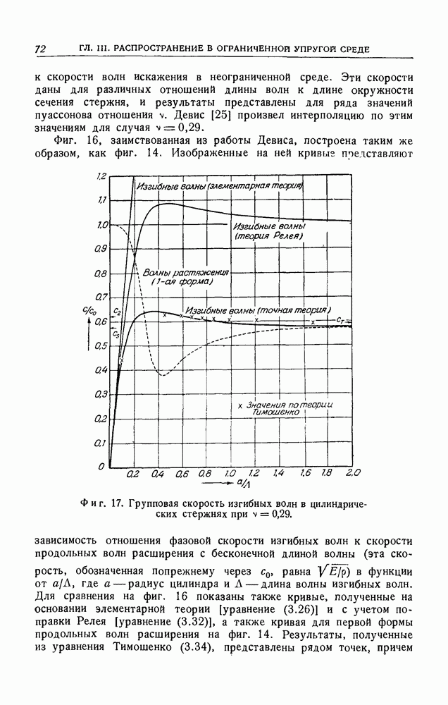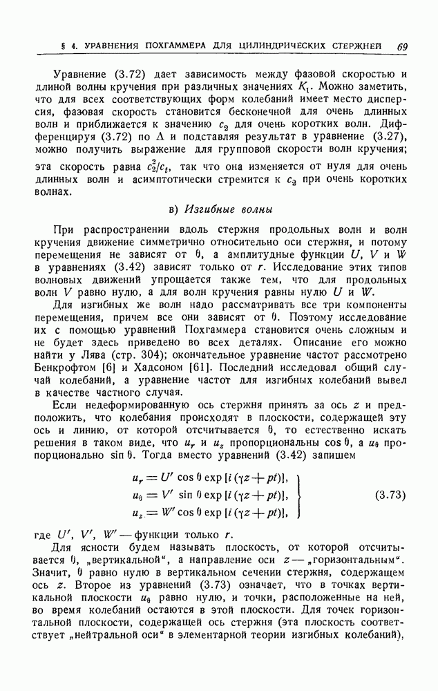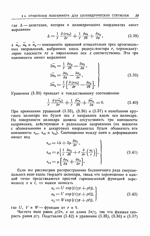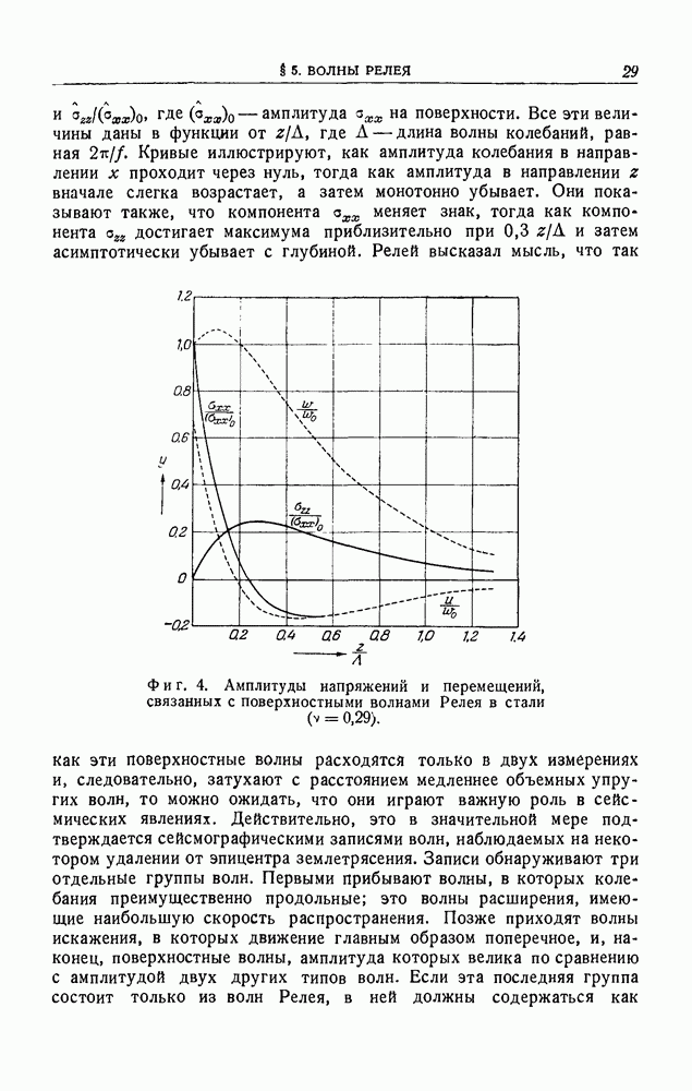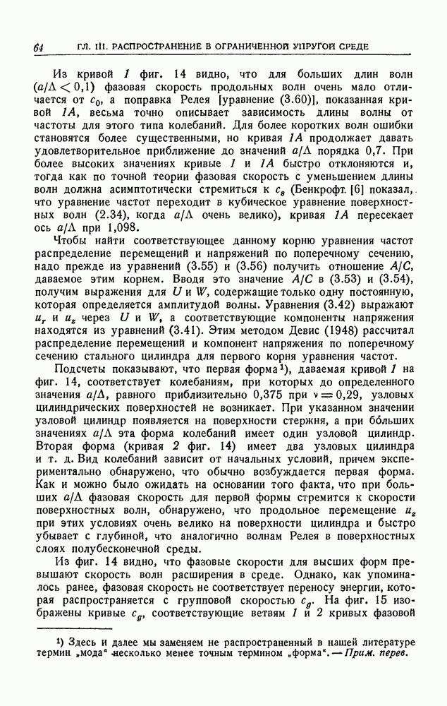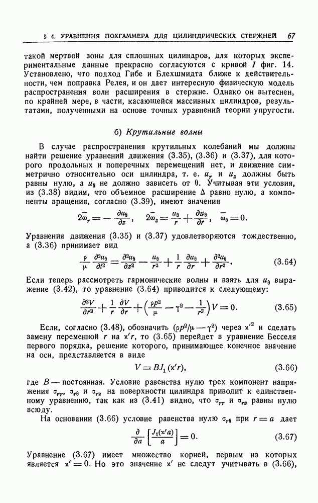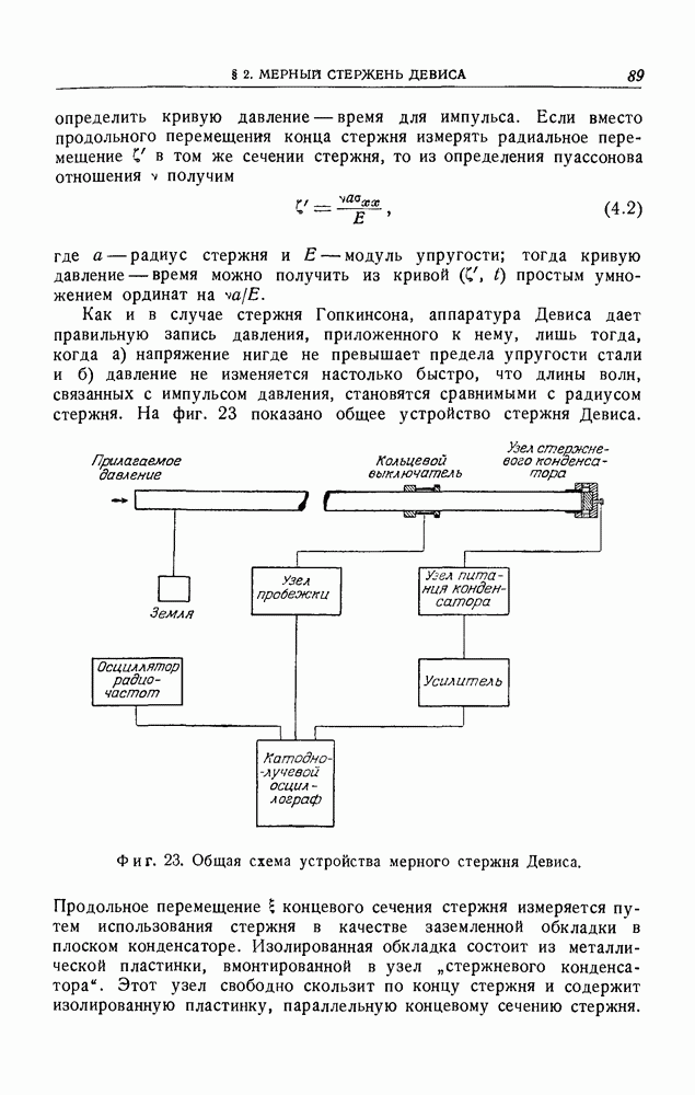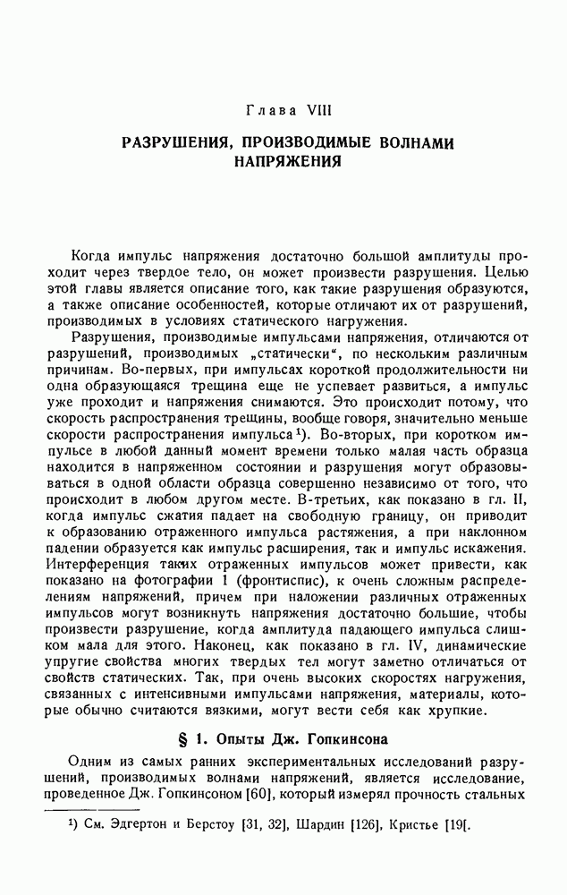Глава V. ВНУТРЕННЕЕ ТРЕНИЕТеория, описанная в первой части этой монографии, базируется на законе Гука. Уравнения движения твердого тела получаются приравниванием упругим силам произведений масс на ускорения, причем предполагается, что никакие другие силы не играют роли. Поведение многих тел не отличается существенно от вполне упругих при малых деформациях и, как показано в гл. IV, результаты наблюдений часто хорошо согласуются с данными упругой теории. Однако, если материал совершает колебания, часть упругой энергии всегда превращается в тепло вследствие внутреннего трения. Так, когда твердый образец вибрирует, его свободные колебания затухают даже в том случае, когда он изолирован от окружающих предметов. Амплитуда колебания образца при отсутствии внутреннего трения должна была бы безгранично возрастать при воздействии переменной внешней силы, действующей с резонансной частотой образца. Практически амплитуда всегда принимает конечное значение. Для жидкостей и газов диссипативные силы порождаются вязкостью и теплопроводностью, причем эти эффекты могут быть исследованы аналитически. В твердых телах поведение оказывается гораздо более сложным и существенно зависит от природы твердого тела. В настоящее время нет удовлетворительной теории внутреннего трения в твердых телах и требуется накопление экспериментальных данных. § 1. ОпределенияНаиболее прямой метод определения внутреннего трения состоит в вычислении отношения Имеется несколько непрямых методов определения внутреннего трения, причем они связаны с предположением, что восстанавливающие силы пропорциональны амплитуде колебания, тогда как диссипа-тивные силы пропорциональны скорости. Если применить эти условия, то отношение двух последующих амплитуд свободных колебаний будет постоянным, причем натуральный логарифм этого отношения Другой непрямой мерой внутреннего трения служит острота резонансной кривой при вынужденных колебаниях. Если образец нагружается синусоидальной силой заданной амплитуды, частота которой может изменяться, и амплитуда колебаний образца записывается как функция частоты, то график этой зависимости имеет максимум при резонансной частоте Покажем теперь, как получаются соотношения между этими различными определениями внутреннего трения для образца, в котором восстанавливающая упругая сила пропорциональна перемещению, а рассеяние пропорционально скорости. Уравнение движения такого образца можно записать в виде