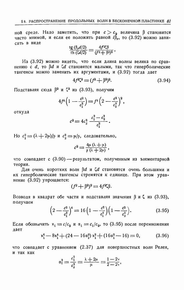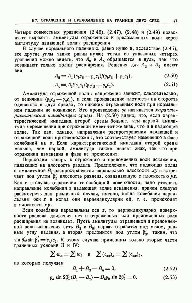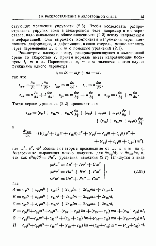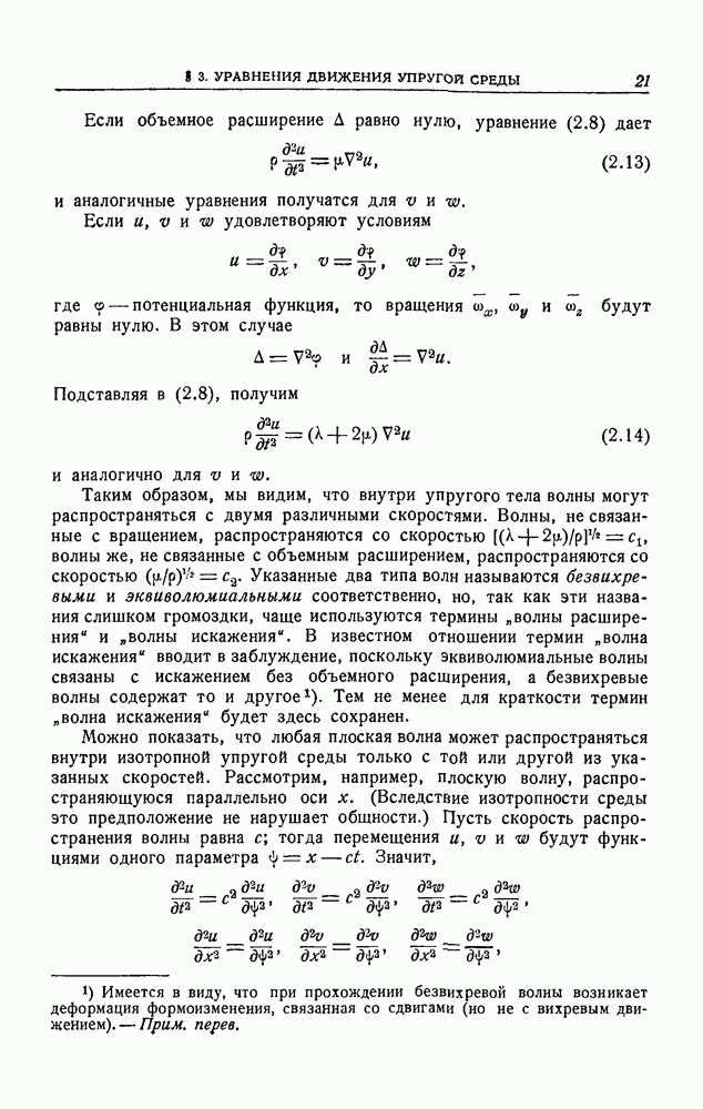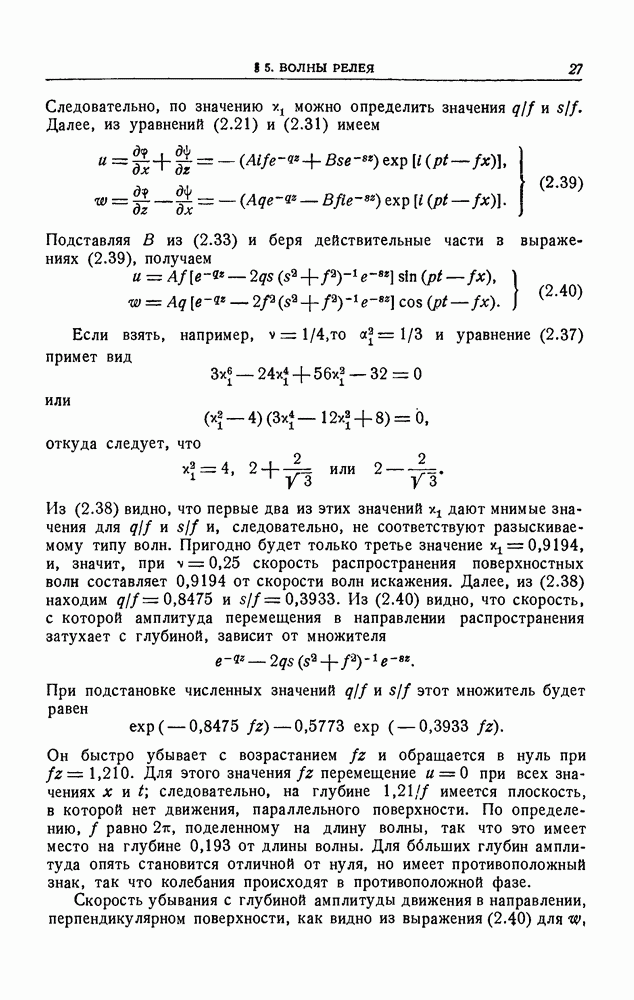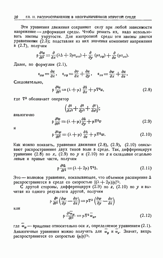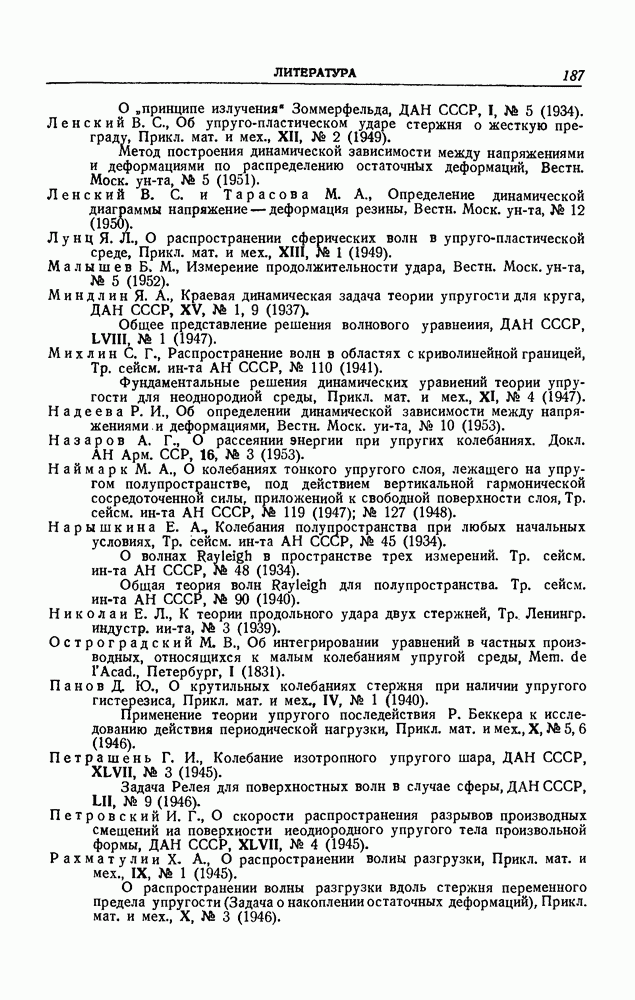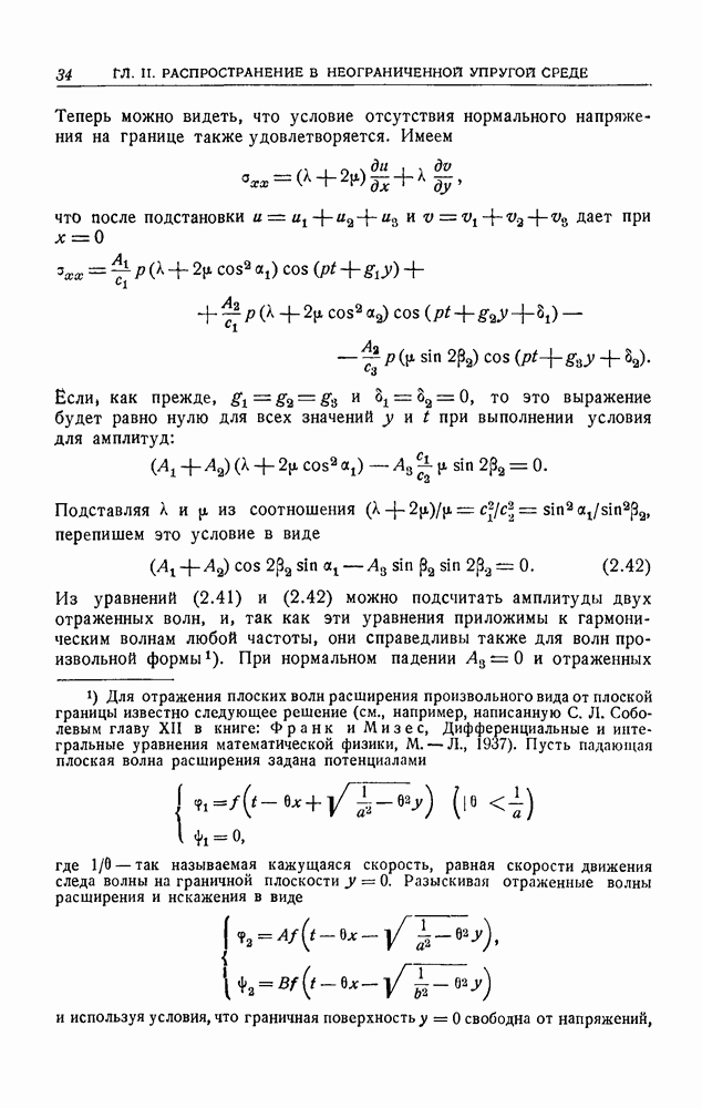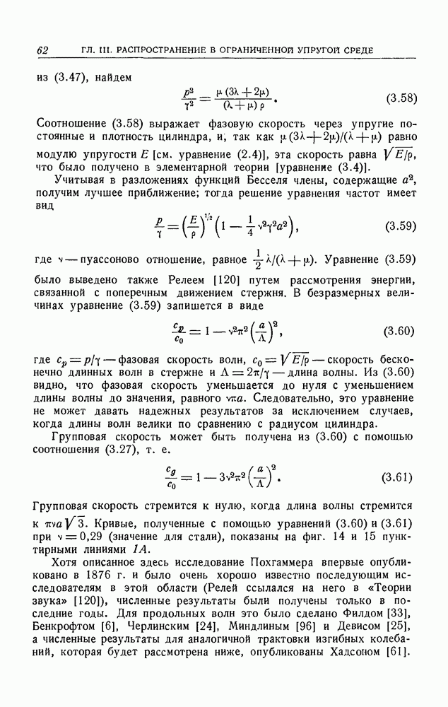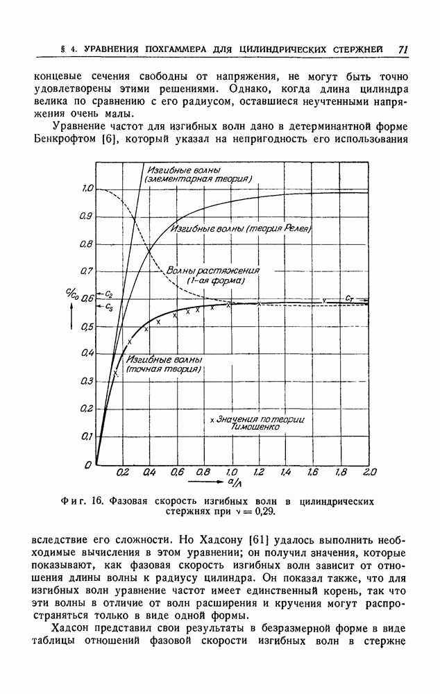 Глава V. ВНУТРЕННЕЕ ТРЕНИЕТеория, описанная в первой части этой монографии, базируется на законе Гука. Уравнения движения твердого тела получаются приравниванием упругим силам произведений масс на ускорения, причем предполагается, что никакие другие силы не играют роли. Поведение многих тел не отличается существенно от вполне упругих при малых деформациях и, как показано в гл. IV, результаты наблюдений часто хорошо согласуются с данными упругой теории. Однако, если материал совершает колебания, часть упругой энергии всегда превращается в тепло вследствие внутреннего трения. Так, когда твердый образец вибрирует, его свободные колебания затухают даже в том случае, когда он изолирован от окружающих предметов. Амплитуда колебания образца при отсутствии внутреннего трения должна была бы безгранично возрастать при воздействии переменной внешней силы, действующей с резонансной частотой образца. Практически амплитуда всегда принимает конечное значение. Для жидкостей и газов диссипативные силы порождаются вязкостью и теплопроводностью, причем эти эффекты могут быть исследованы аналитически. В твердых телах поведение оказывается гораздо более сложным и существенно зависит от природы твердого тела. В настоящее время нет удовлетворительной теории внутреннего трения в твердых телах и требуется накопление экспериментальных данных. § 1. ОпределенияНаиболее прямой метод определения внутреннего трения состоит в вычислении отношения Имеется несколько непрямых методов определения внутреннего трения, причем они связаны с предположением, что восстанавливающие силы пропорциональны амплитуде колебания, тогда как диссипа-тивные силы пропорциональны скорости. Если применить эти условия, то отношение двух последующих амплитуд свободных колебаний будет постоянным, причем натуральный логарифм этого отношения Другой непрямой мерой внутреннего трения служит острота резонансной кривой при вынужденных колебаниях. Если образец нагружается синусоидальной силой заданной амплитуды, частота которой может изменяться, и амплитуда колебаний образца записывается как функция частоты, то график этой зависимости имеет максимум при резонансной частоте Покажем теперь, как получаются соотношения между этими различными определениями внутреннего трения для образца, в котором восстанавливающая упругая сила пропорциональна перемещению, а рассеяние пропорционально скорости. Уравнение движения такого образца можно записать в виде