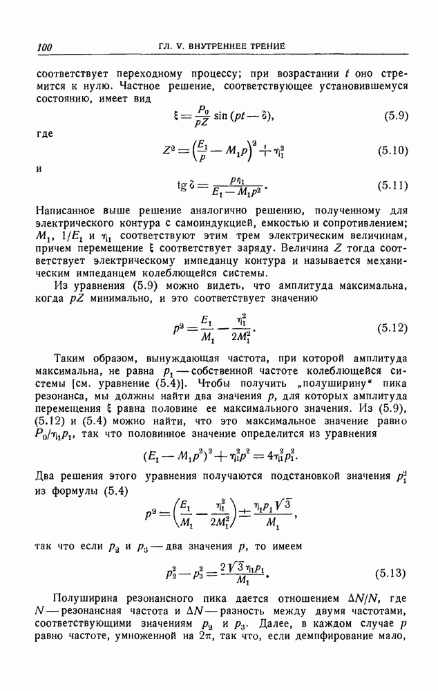 Написанное выше решение аналогично решению, полученному для электрического контура с самоиндукцией, емкостью и сопротивлением; Из уравнения (5.9) можно видеть, что амплитуда максимальна, когда