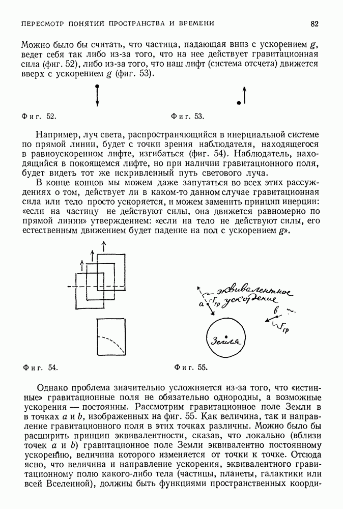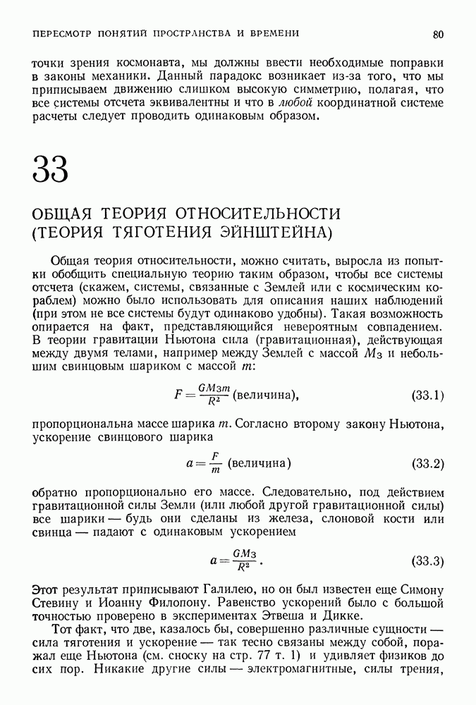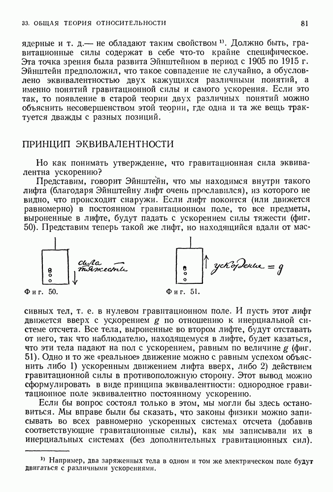 Тот факт, что две, казалось бы, совершенно различные сущности — сила тяготения и ускорение — так тесно связаны между собой, поражал еще Ньютона (см. сноску на стр. 77 т. 1) и удивляет физиков до сих пор. Никакие другие силы — электромагнитные, силы трения,