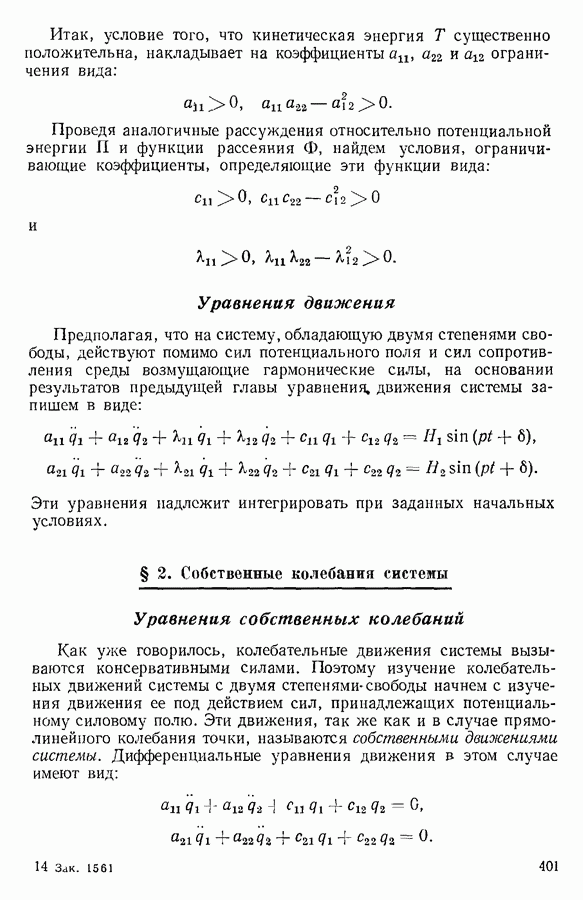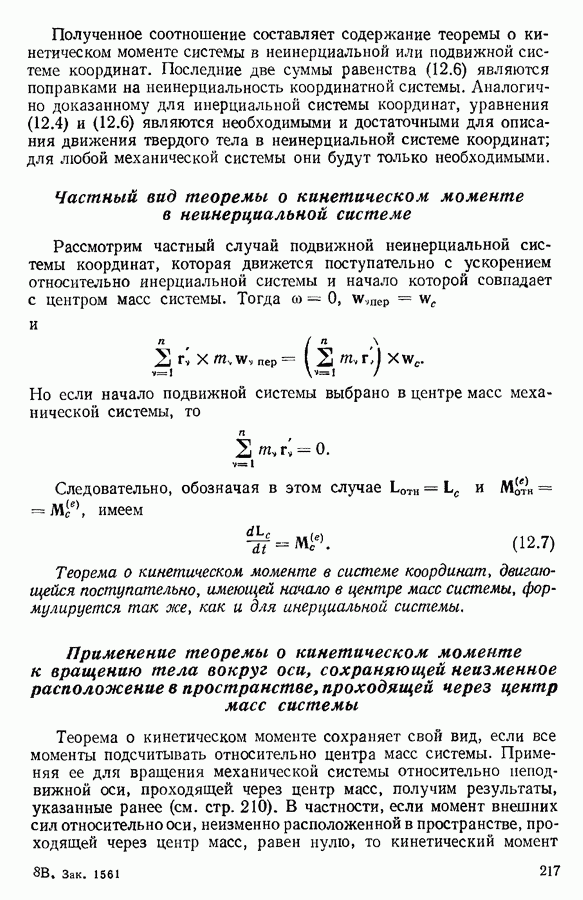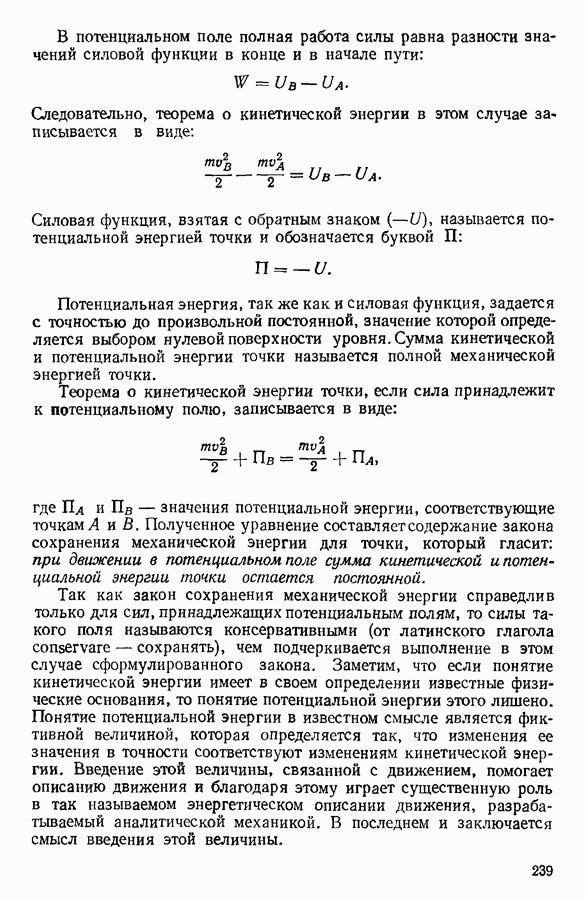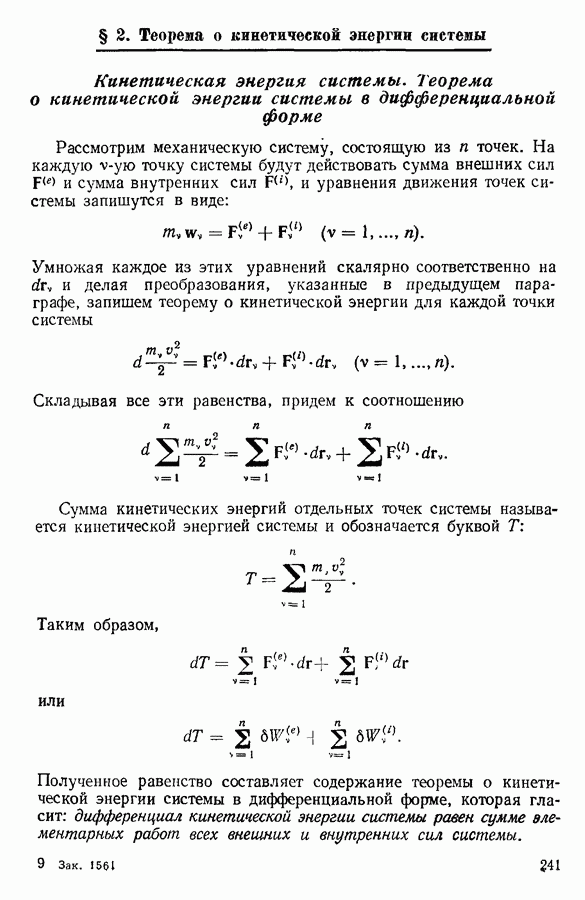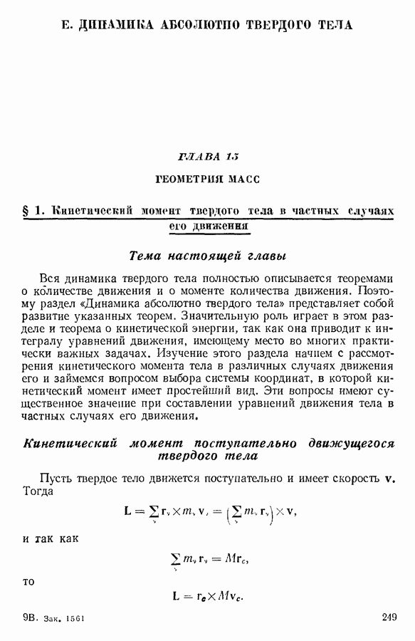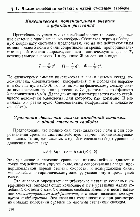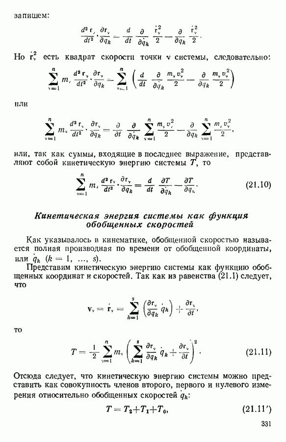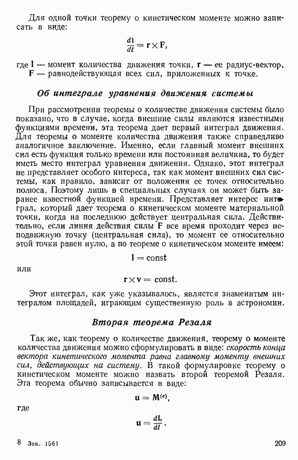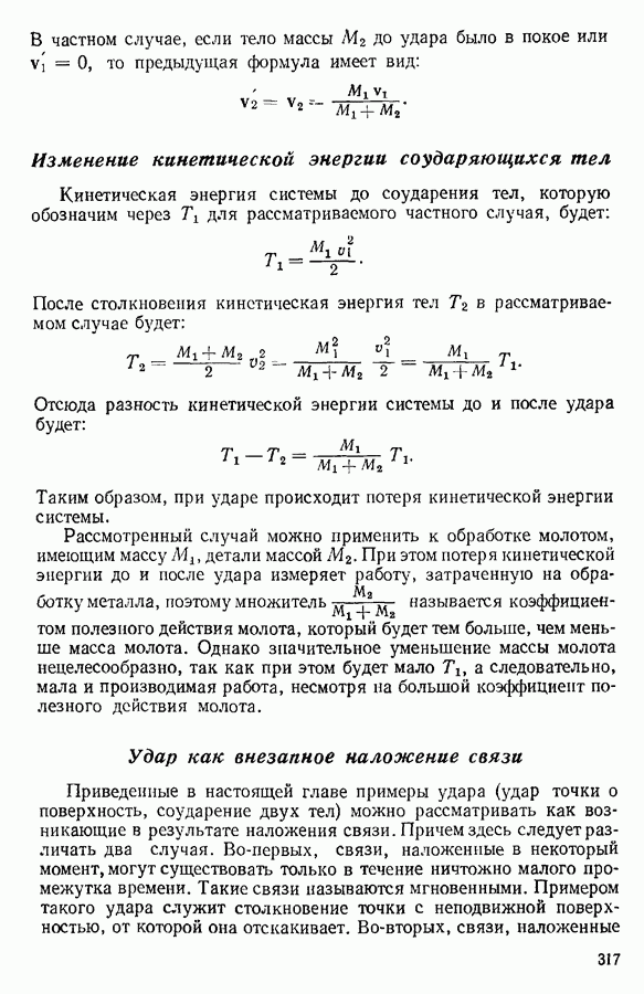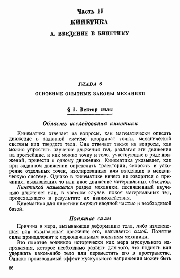 Кинетика строится по тому же плану. Наряду с традиционными разделами в ней выделен раздел «Консервативные системы» и включена как одна из частей «Механика связных механических систем». Вопрос движения точки переменной массы, удар системы, колебательные движения систем и тел рассматриваются как применение общих уравнений механики к частным принципиальным задачам механики, которые иллюстрируют роль классической механики в развитии современных разделов механики и теоретических основ техники и некоторых вопросов физики.
